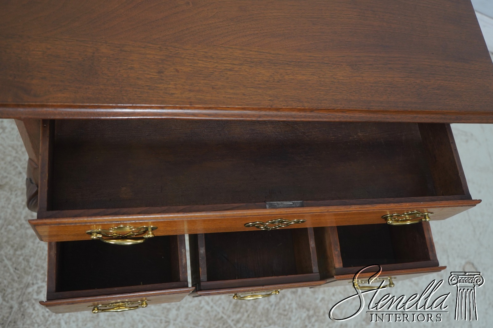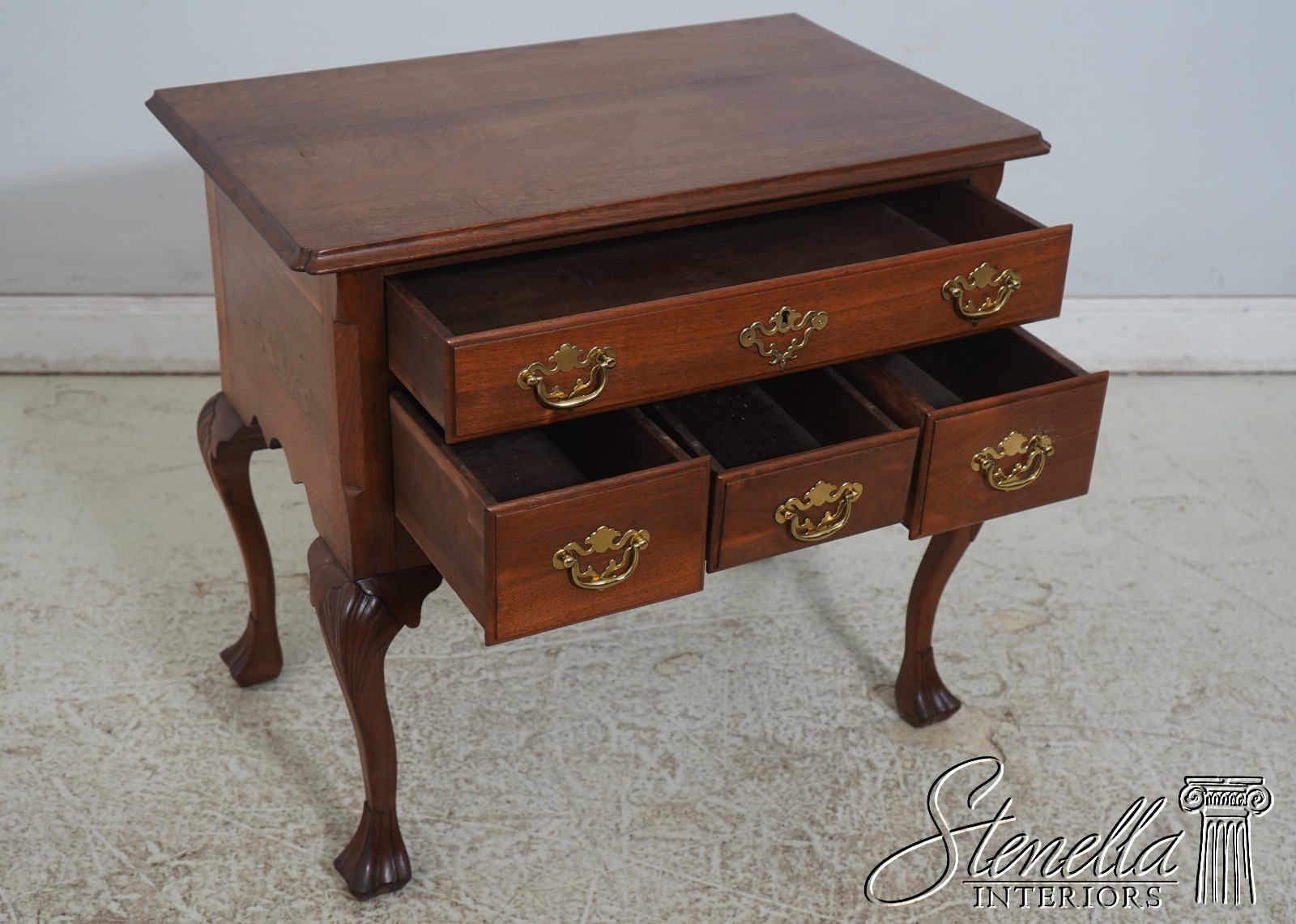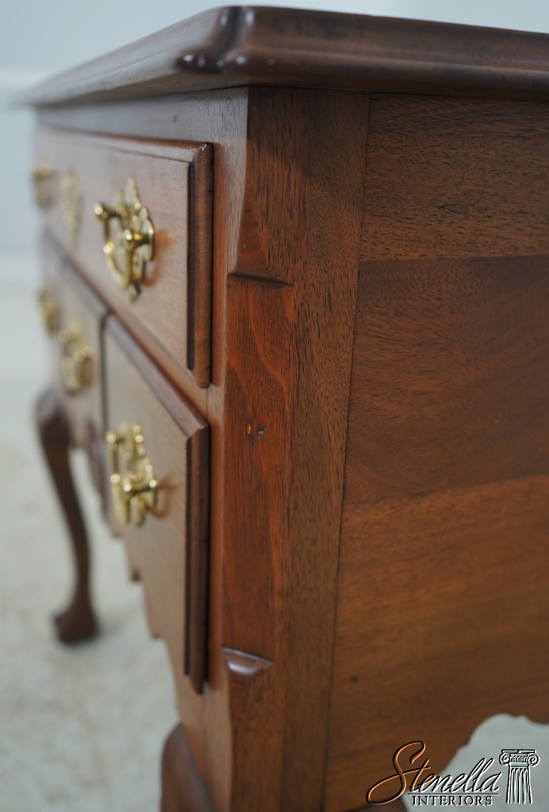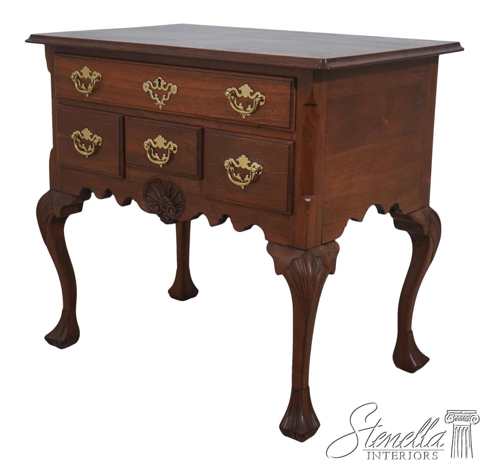 Details: Walnut Trifid Feet Dovetailed Drawer Construction Fine Carved Details High Quality Construction Queen Anne Legs & Pad Feet 18 C. design Chippendale Style Vintage Bench Made Lowboy Shell Carved Knees & Front Key Locking Un-Marked As To Manufacture Offered @ Fraction Original Retail Cost