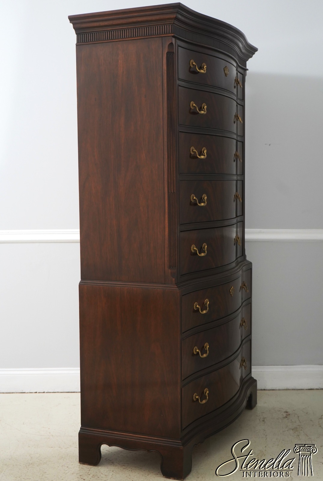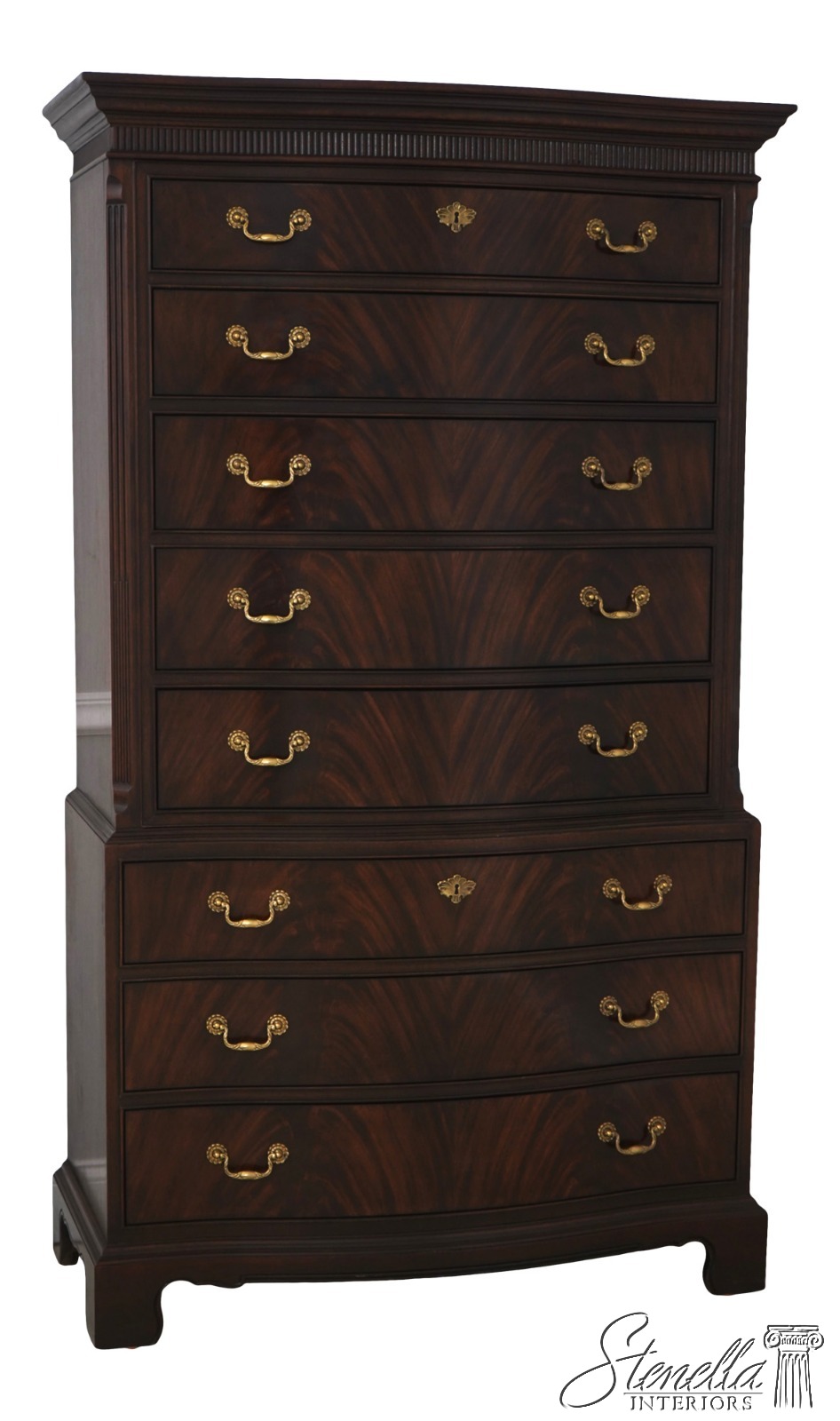 Details: Gorgeous Figaro Mahogany Front Dovetailed Drawer Construction Large Impressive Chest Chest On Chest Design 18th Century Design Chippendale Style Solid Brass Hardware See Other Offerings For Matching Bedroom Pieces