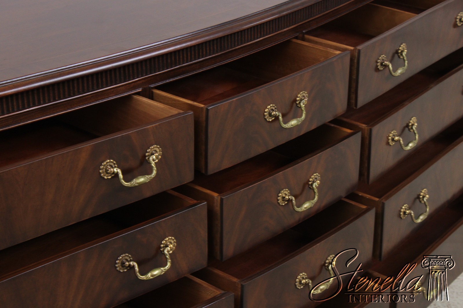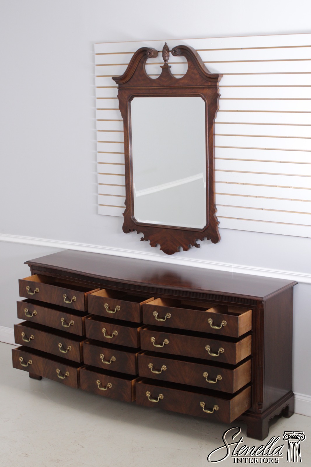 Age: Details: Heirloom Collection Mahogany Beveled Glass Bracket Feet Dovetailed Drawer Construction Quality Construction Large Impressive Dresser Pediment Top With Chippendale Style Traditional Style Solid Brass Hardware 12 Drawers Made By Drexel Heritage See Other Offerings For Matching Bedroom Pieces Offered At A Fraction Of The Original Retail Cost