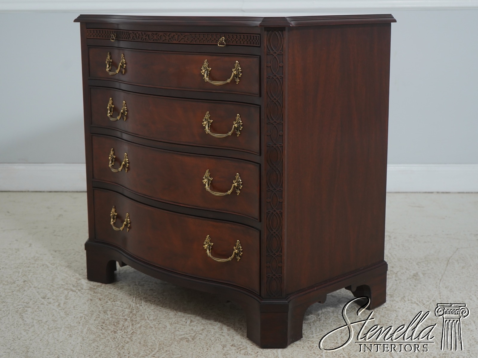 Details: Finish No.29 Mahogany High Quality Construction 18 C. Design Chippendale Style Figural Mahogany Fronts Traditional Style Solid Brass Hardware See Other Offerings For Matching Chest Offered @ Fraction Original Retail Cost