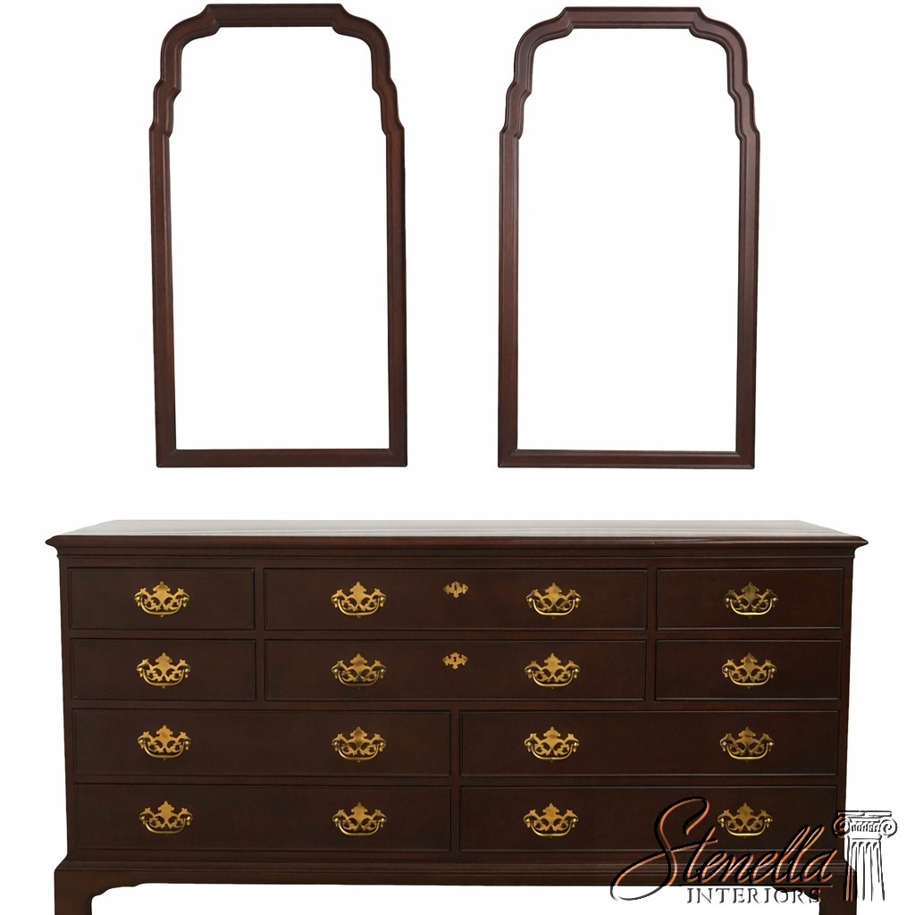 Details: Mahogany 18th C. Collection Beveled Glass Mirrors Bracket Feet Dovetailed Drawer Construction High Quality Construction 18 C. Design Chippendale Style Traditional Style Solid Brass Hardware 10 Drawers Faux Key Plates Offered @ Fraction Original Retail Cost