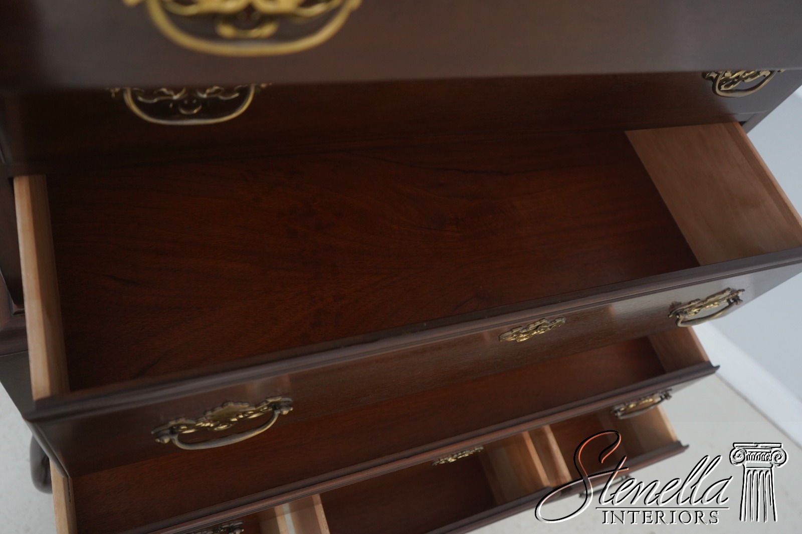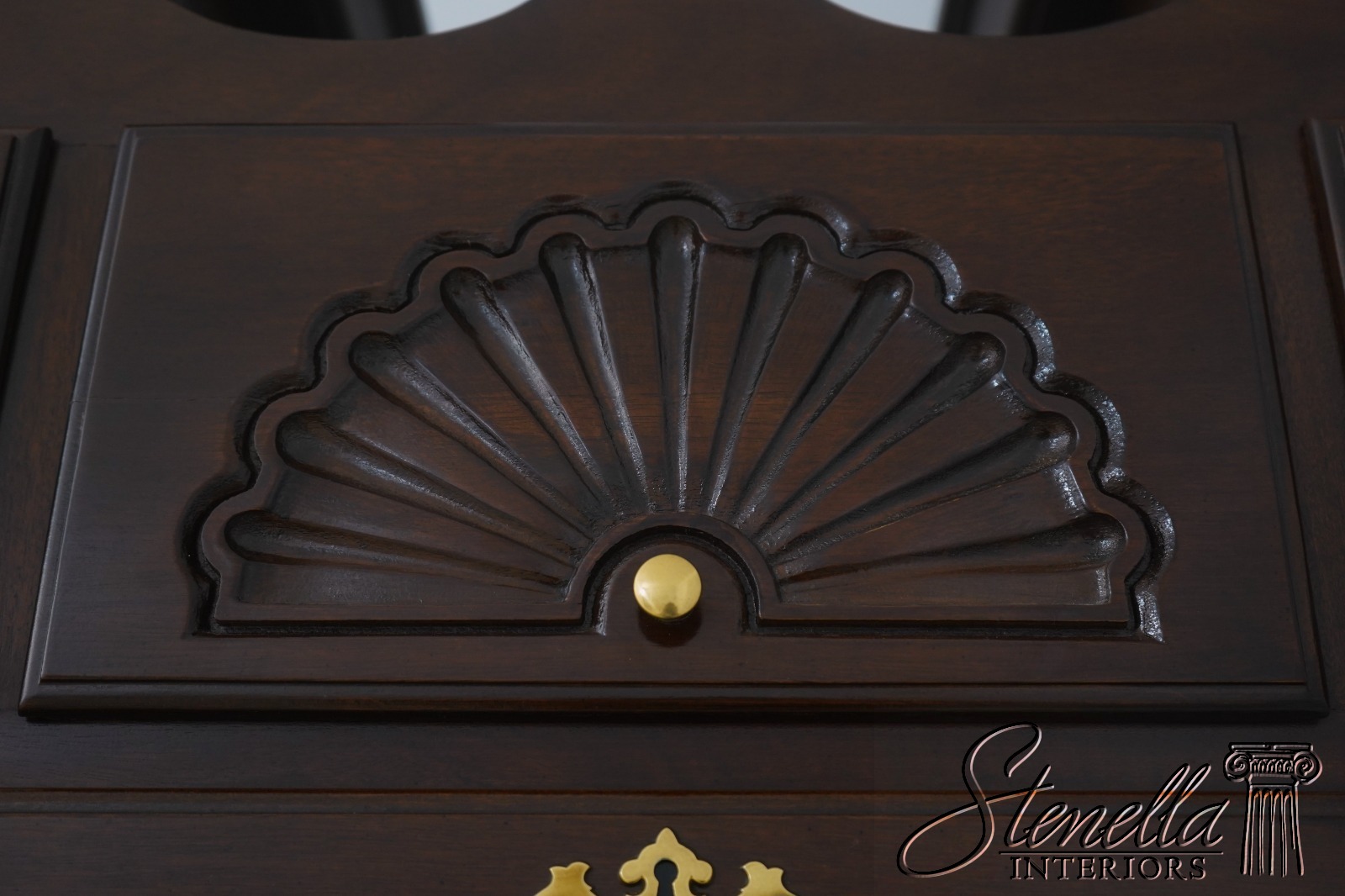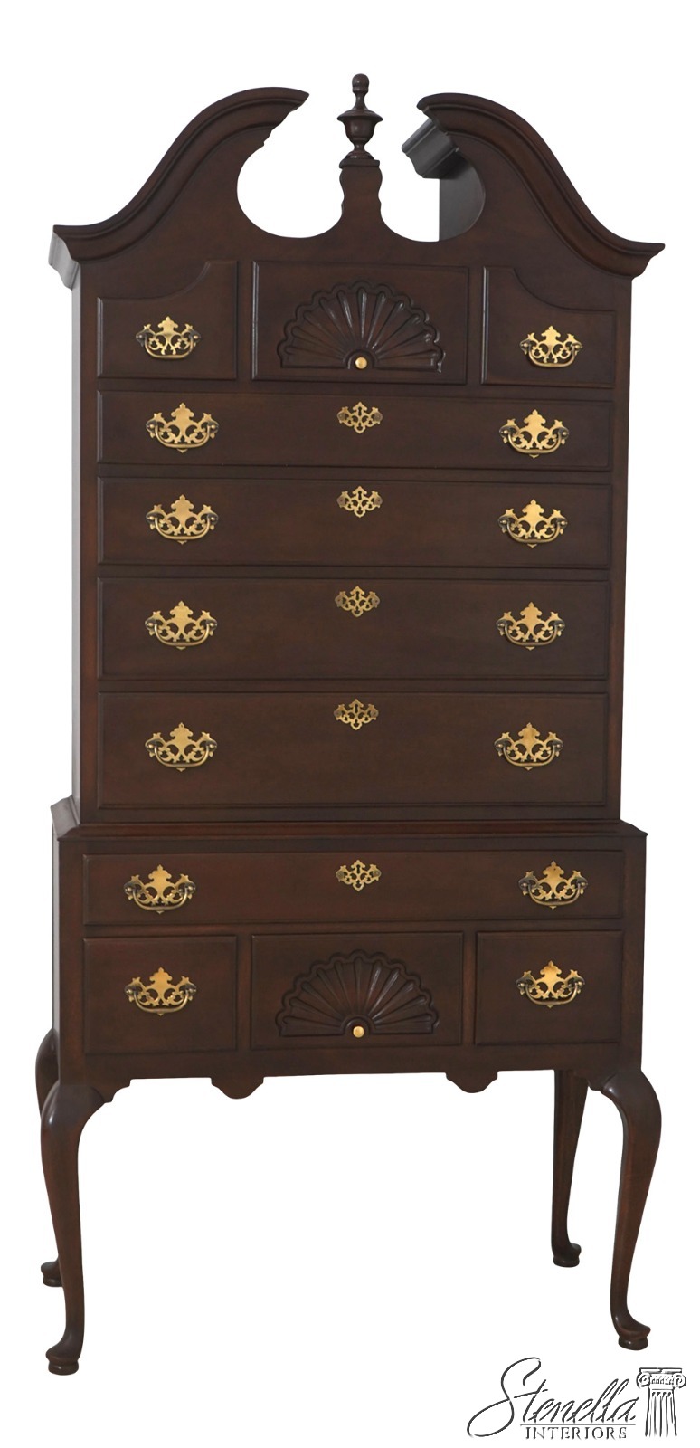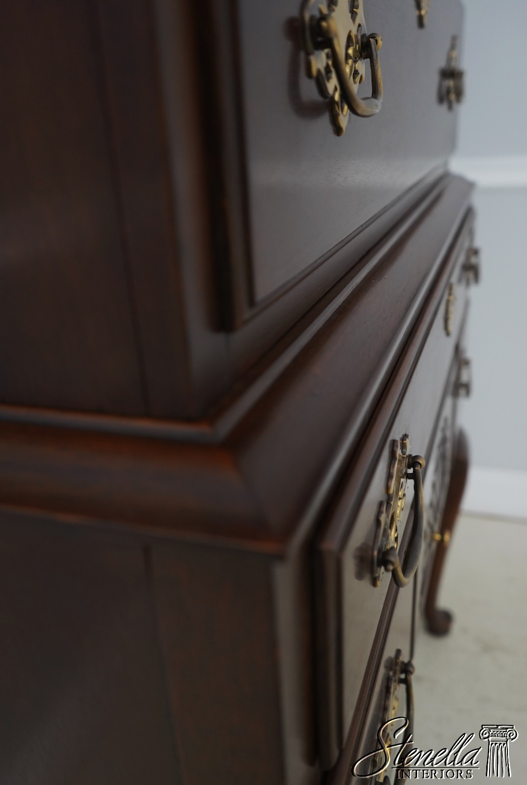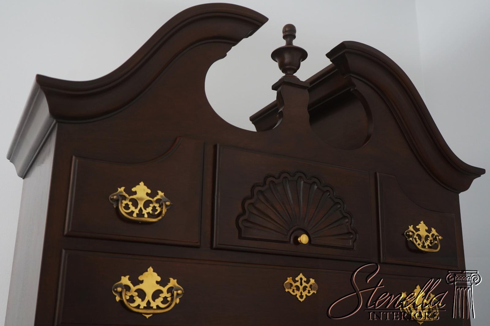 Details: Mahogany Fine Carved Details High Quality Construction Pediment Top w. Finial Queen Anne Legs & Pad Feet 18 C. Design Chippendale Style Shell Carved Drawers Traditional Style Solid Brass Hardware 2 Pieces Faux Key Plates 11 Drawers Offered @ Fraction Original Retail Cost