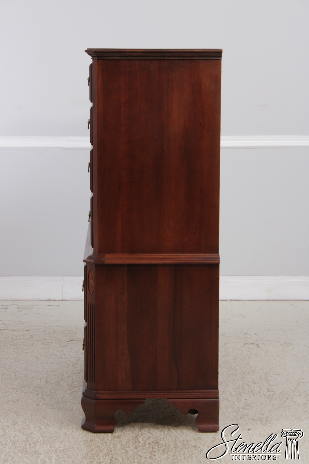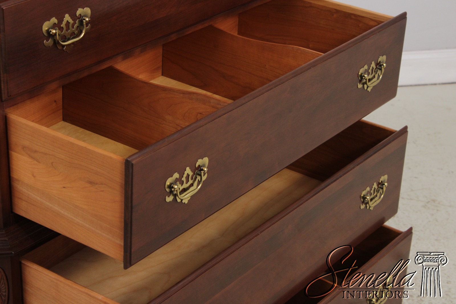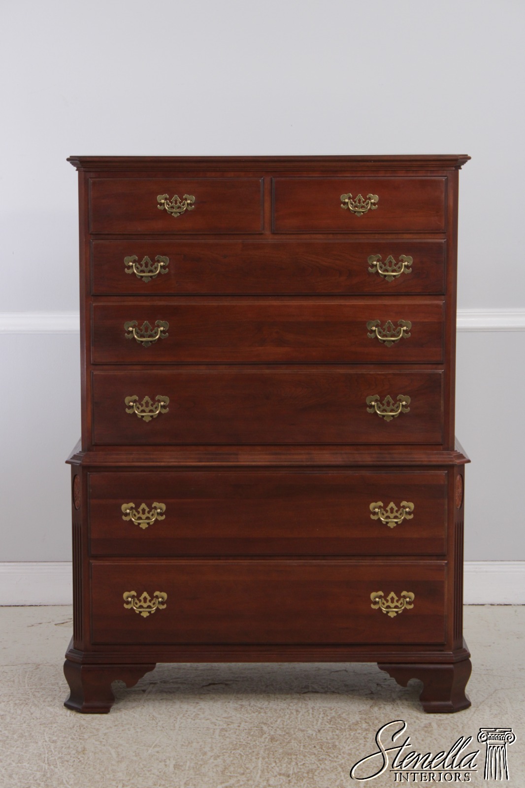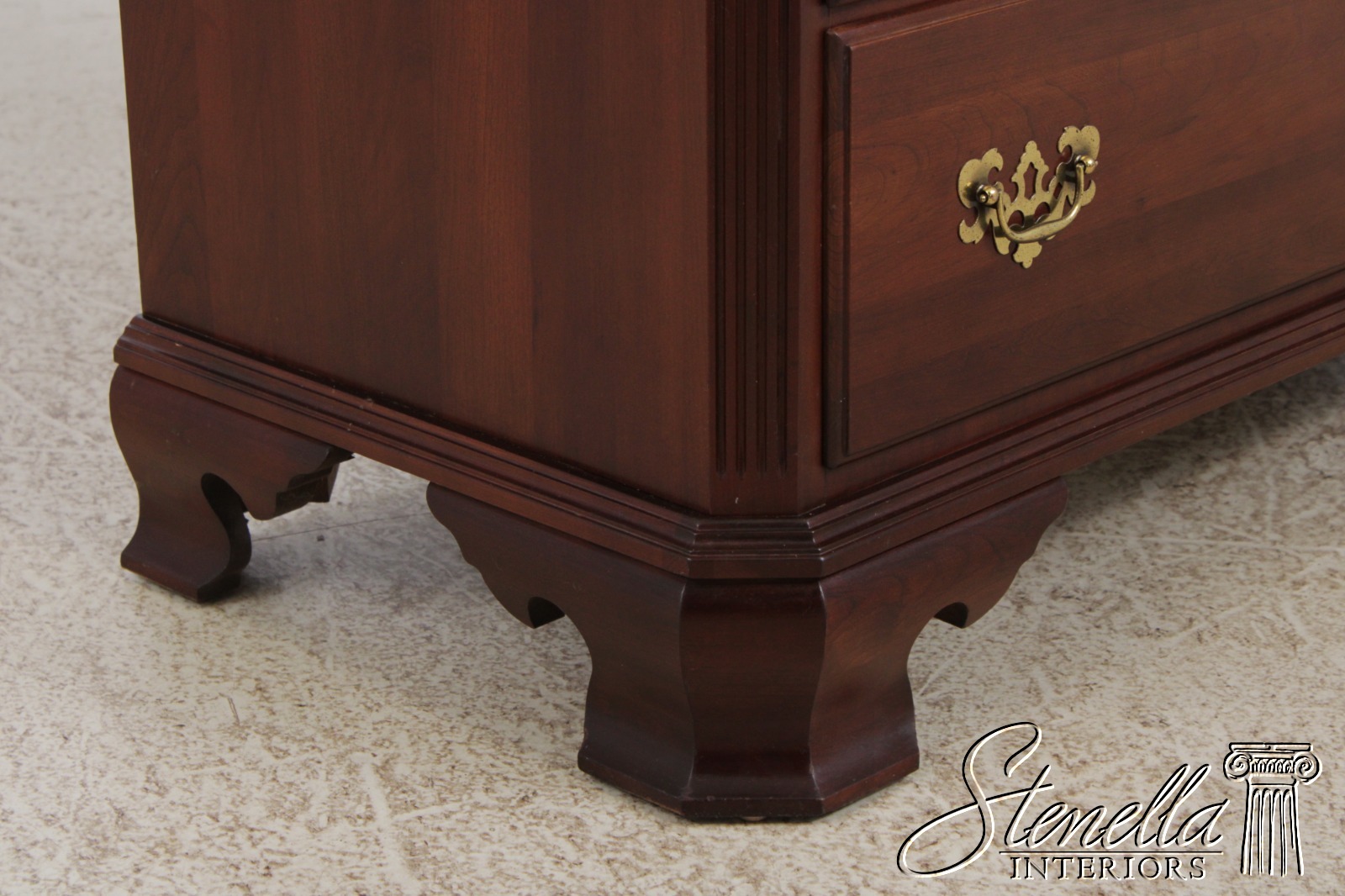 Details: Finish no.205 Georgian Court Collection Cherry Bracket Feet Dovetailed Drawer Construction Fine Carved Details High Quality Construction Quarter Column Sides Chippendale Style Traditional Style Solid Brass Hardware Offered @ Fraction Original Retail Cost