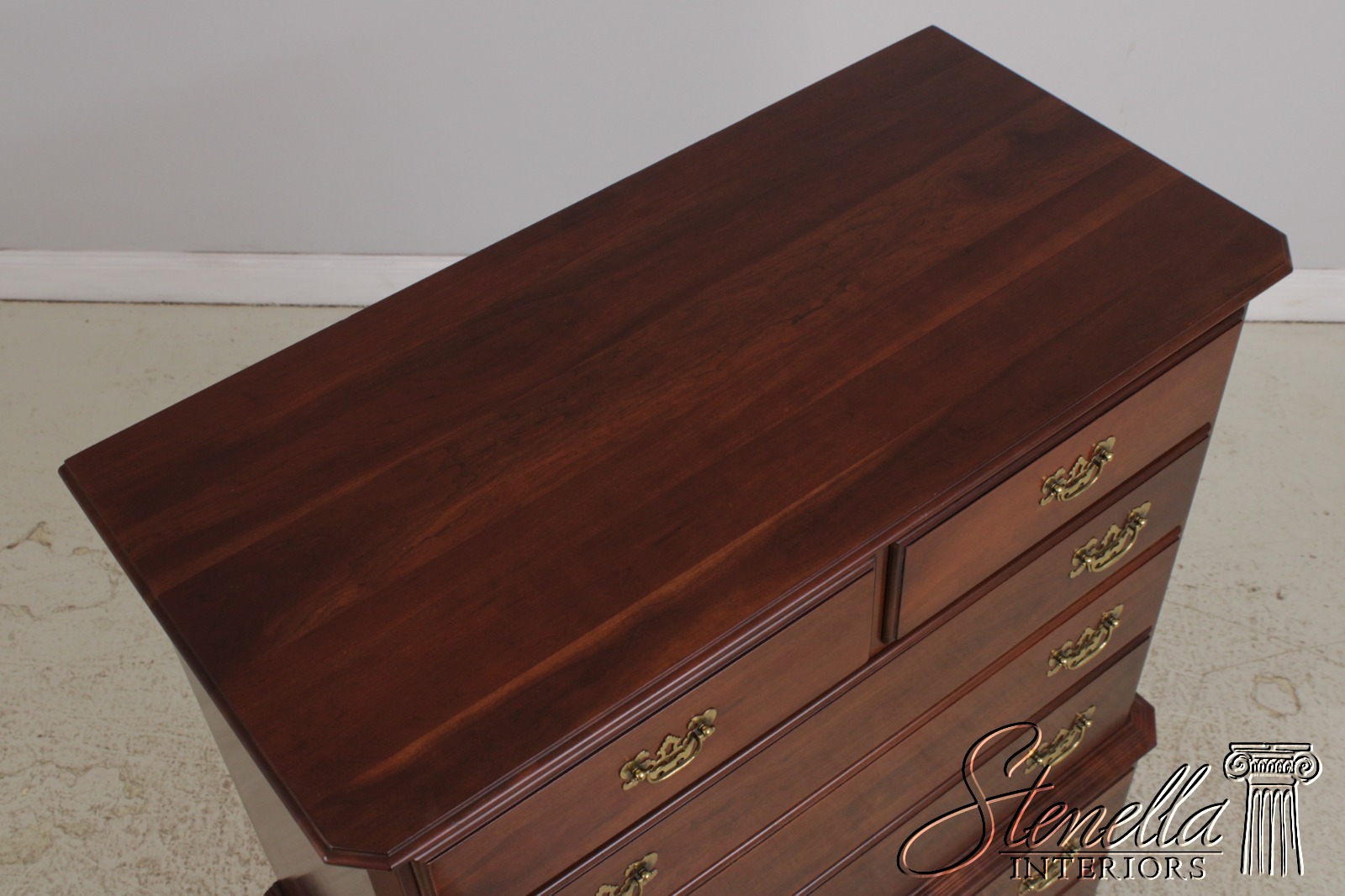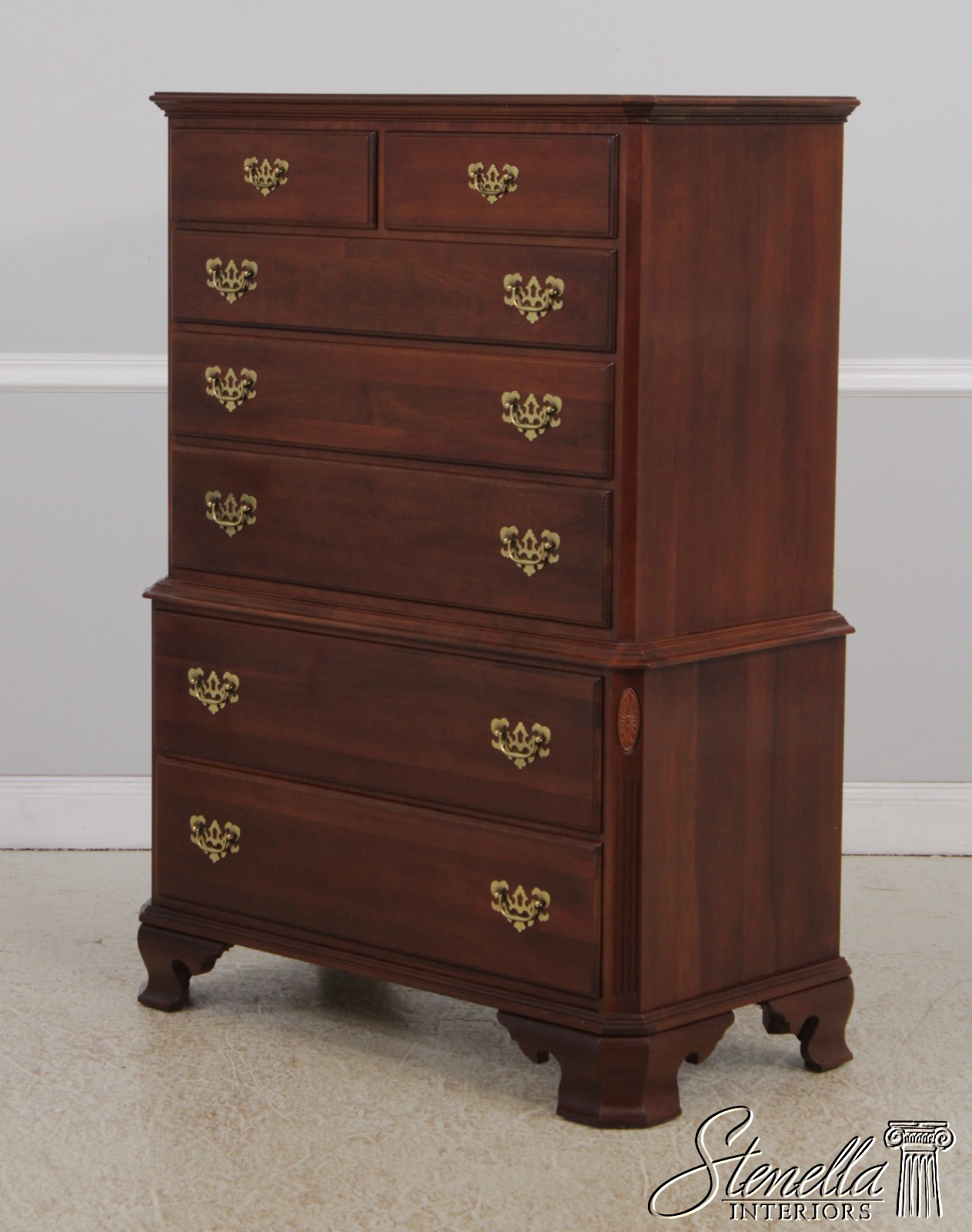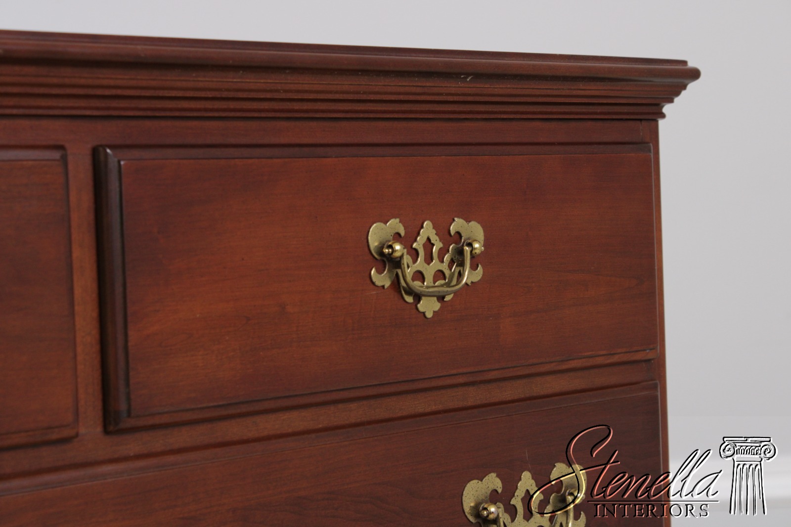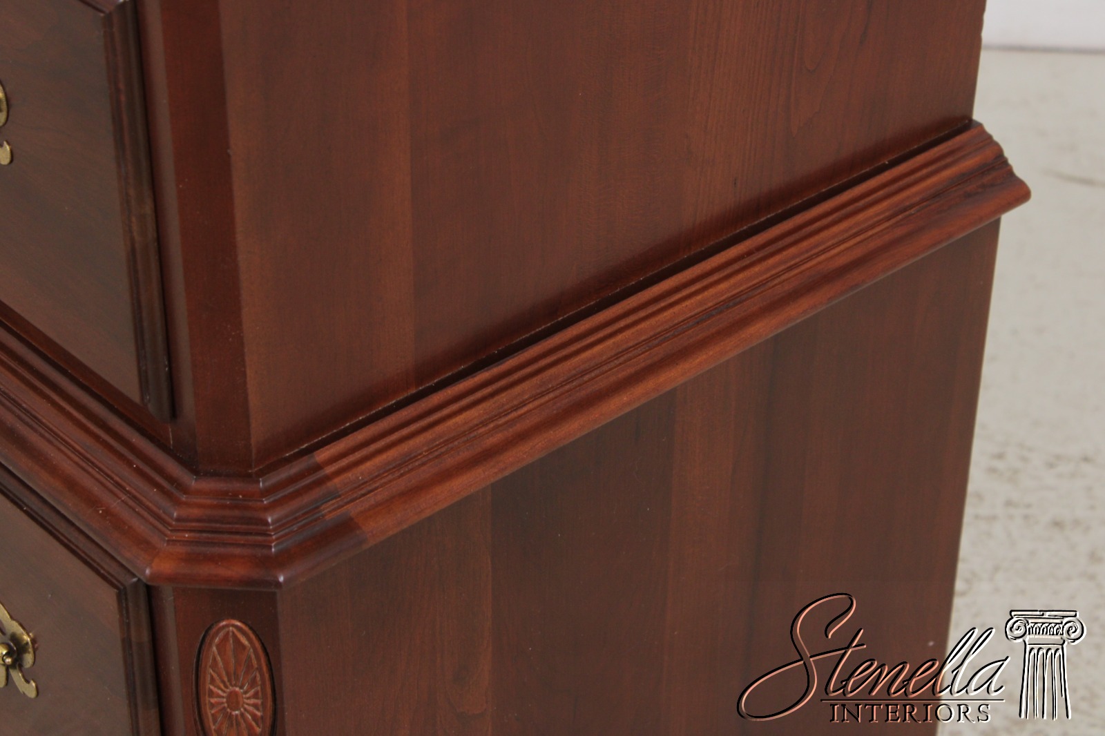 Details: Finish no.205 Georgian Court Collection Cherry Bracket Feet Dovetailed Drawer Construction Fine Carved Details High Quality Construction Quarter Column Sides Chippendale Style Traditional Style Solid Brass Hardware Offered @ Fraction Original Retail Cost