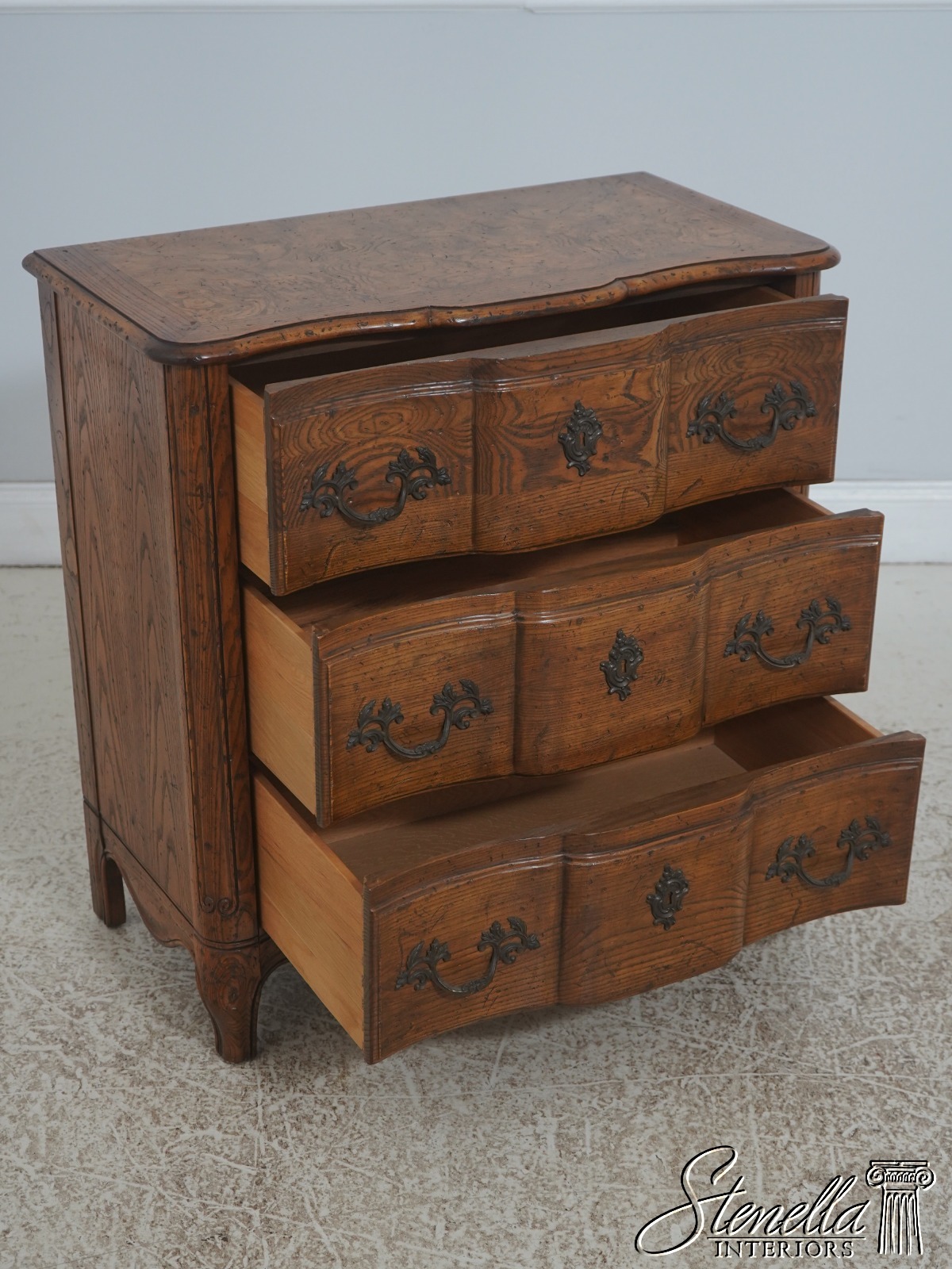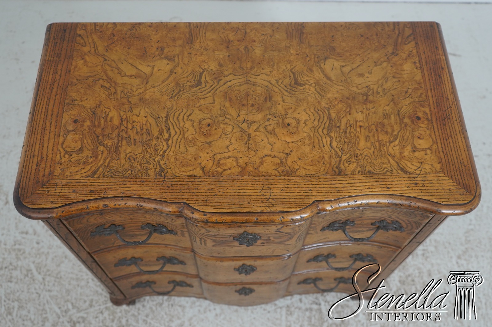 72324: BAKER Burl Wood & Oak Louis XV Style Commode Chest