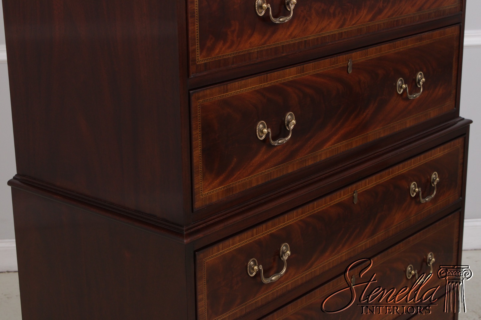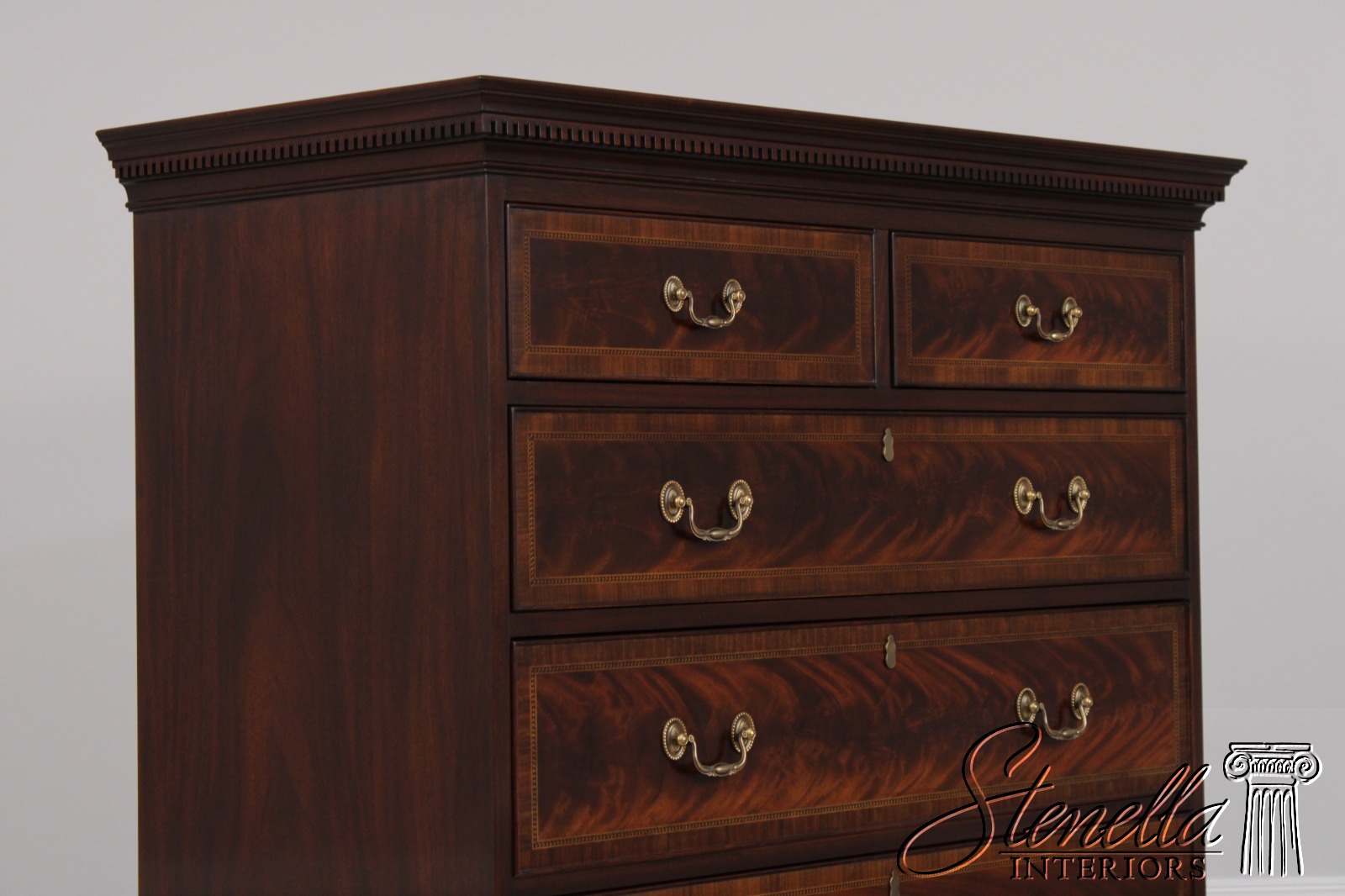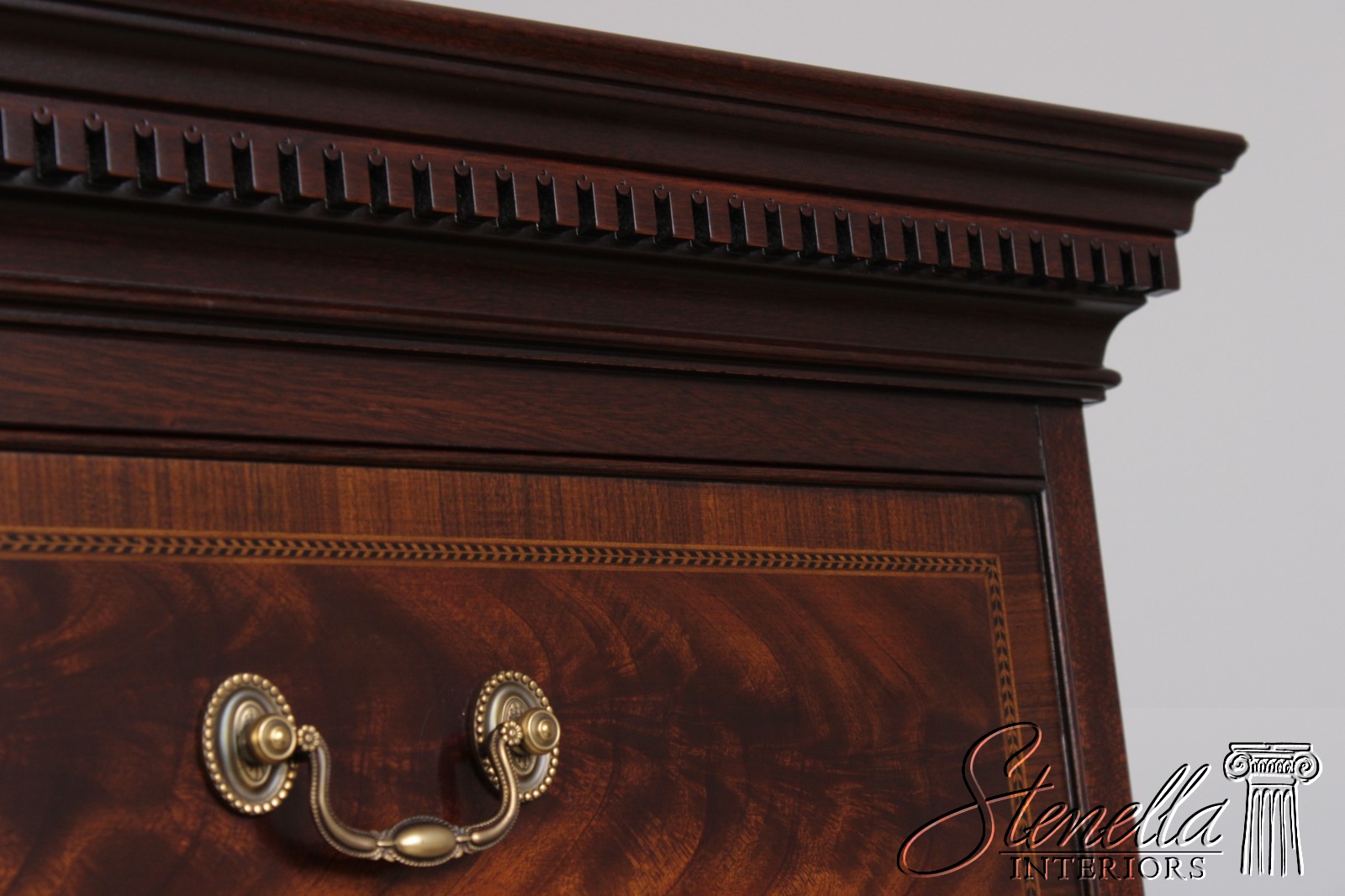 Details: Finish No.29 Legacy Collection Dovetailed Drawer Construction High Quality Construction Large Impressive Chest Nice Inlay Work Throughout Federal Style Traditional Style Dentil Crown Molding Solid Brass Hardware Covered Key Hole Cover Key Lock Drawers Offered @ Fraction Original Retail Cost