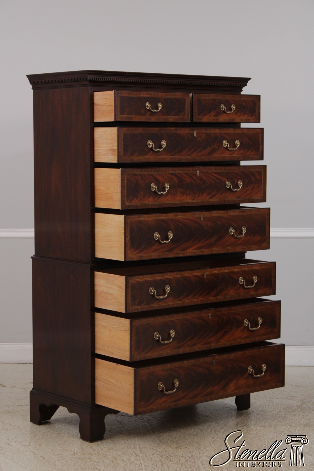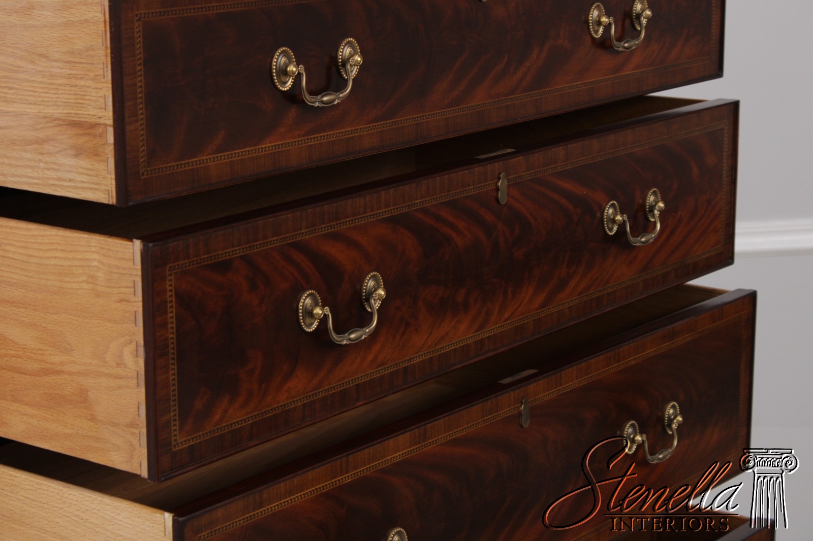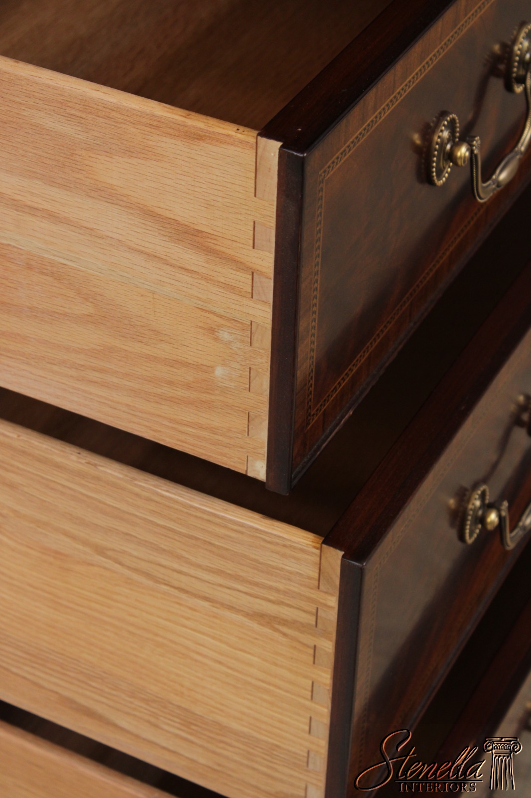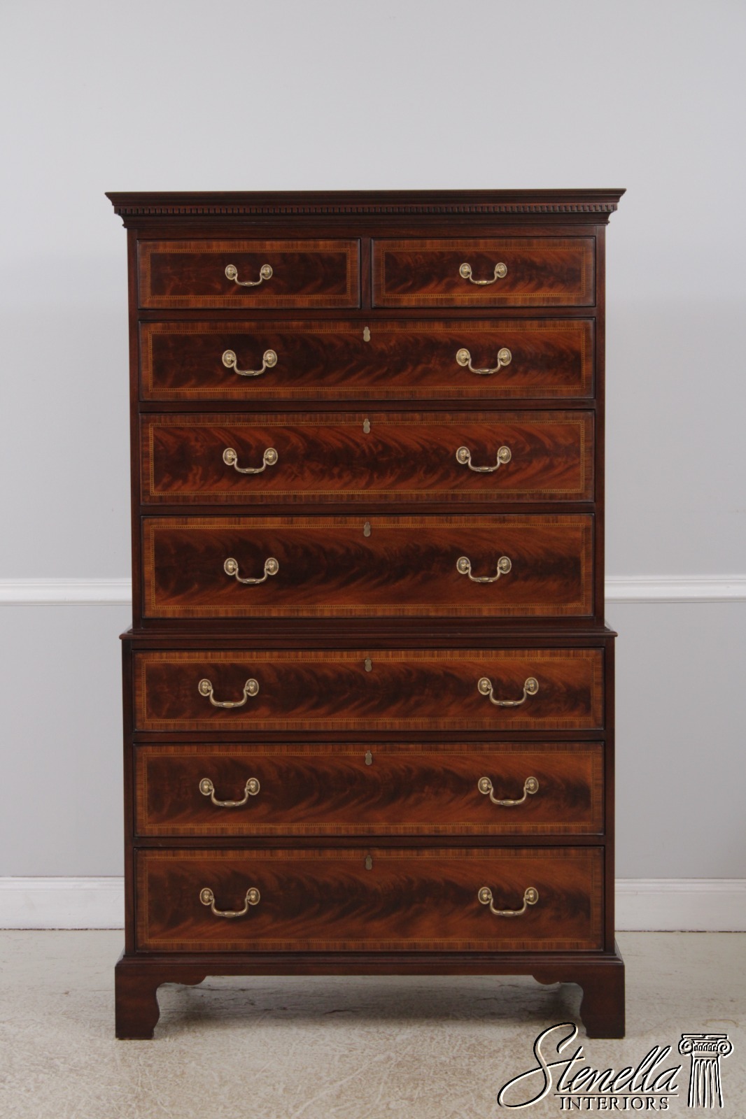 Details: Finish No.29 Legacy Collection Dovetailed Drawer Construction High Quality Construction Large Impressive Chest Nice Inlay Work Throughout Federal Style Traditional Style Dentil Crown Molding Solid Brass Hardware Covered Key Hole Cover Key Lock Drawers Offered @ Fraction Original Retail Cost