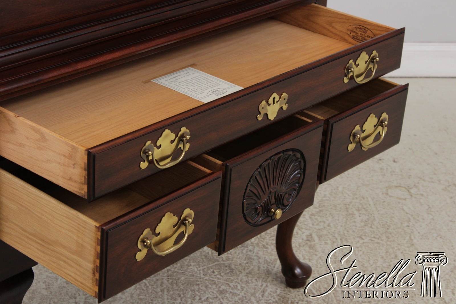 Details: Model 146 Finish no.29 Dovetailed Drawer Construction Queen Anne Legs & Pad Feet Piece Construction Traditional Style Solid Brass Hardware Offered @ Fraction Original Retail Cost