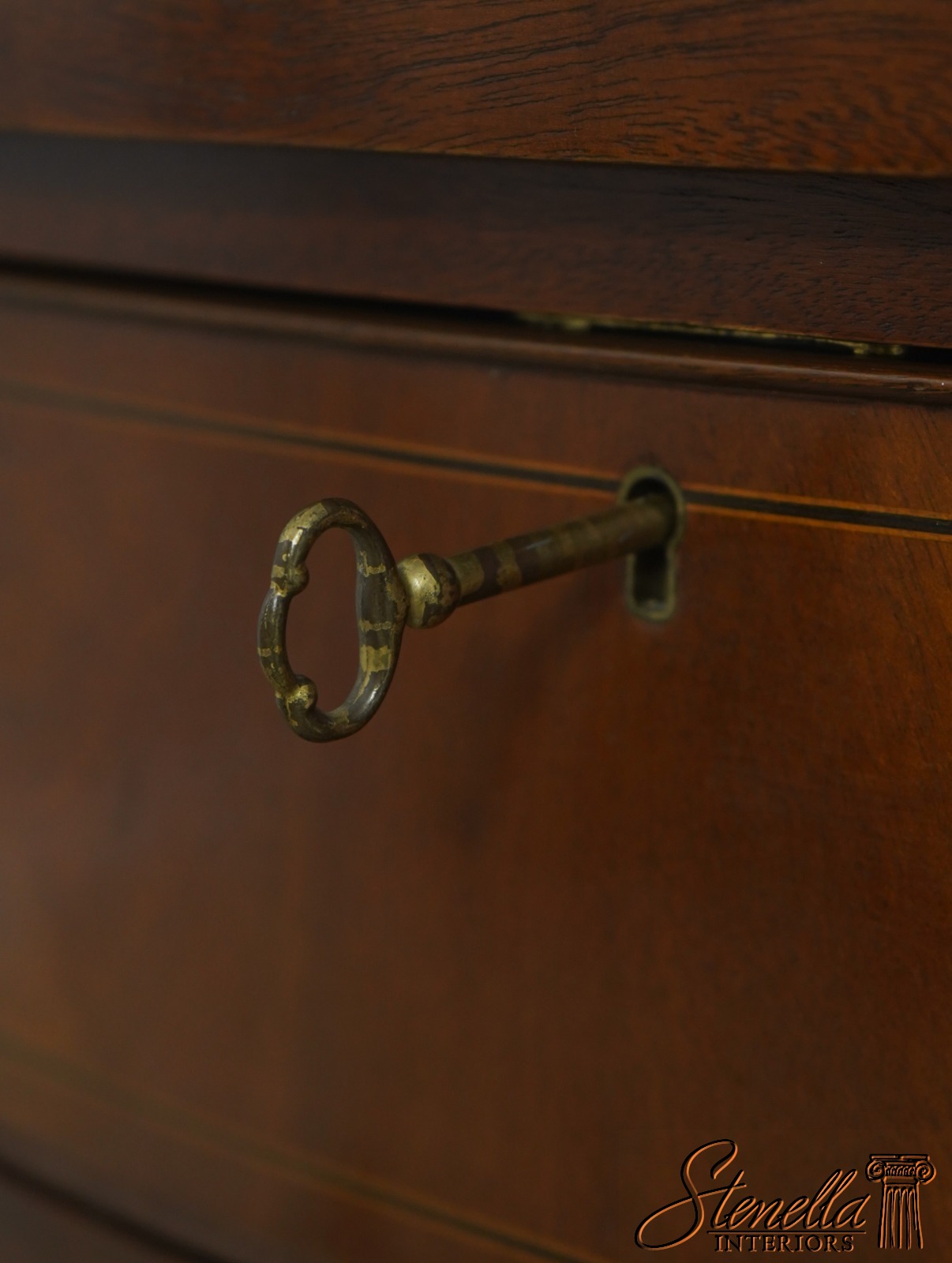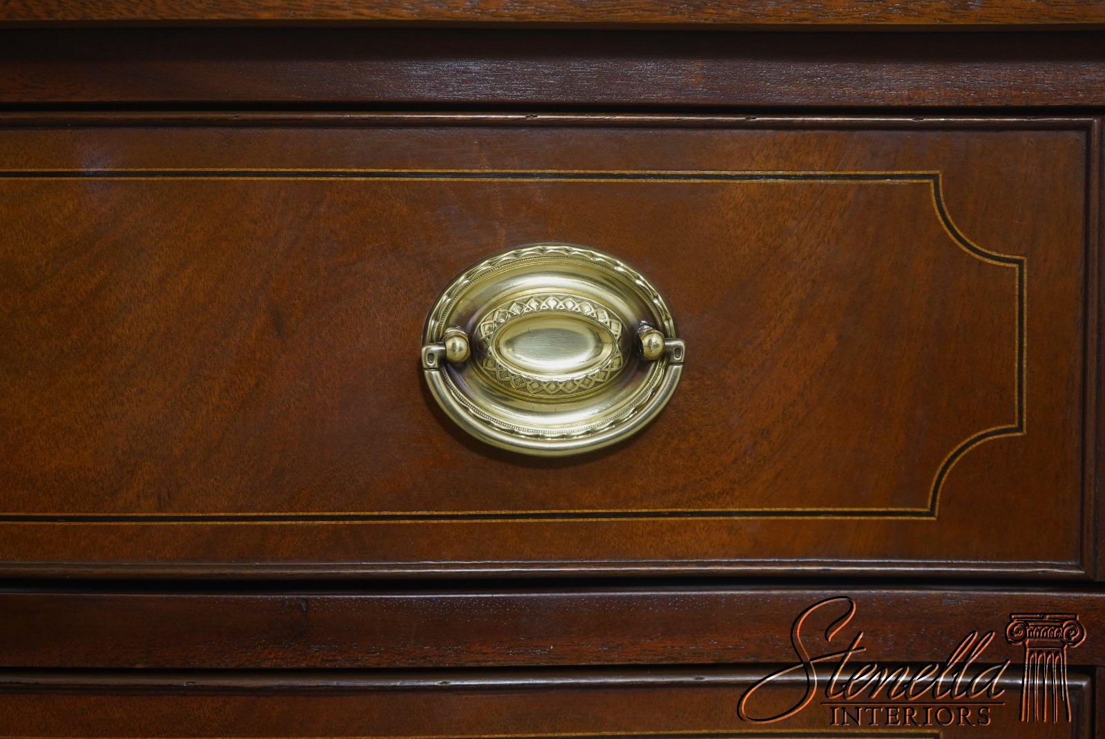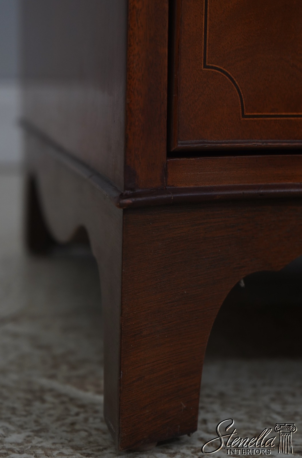 Details: Historic Charleston Collection Mahogany Dovetailed Drawer Construction High Quality Construction Large Impressive Chest Nice Inlay Work Throughout 18 C. Design Federal Style Solid Brass Hardware Key Locking w. Key Graduated Drawers Offered @ Fraction Original Retail Cost