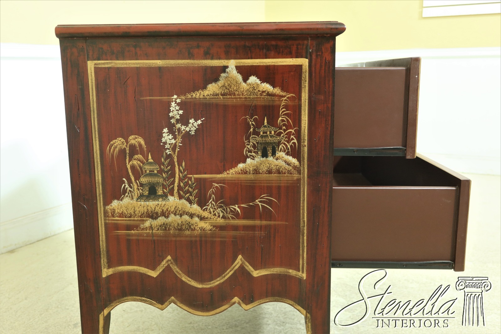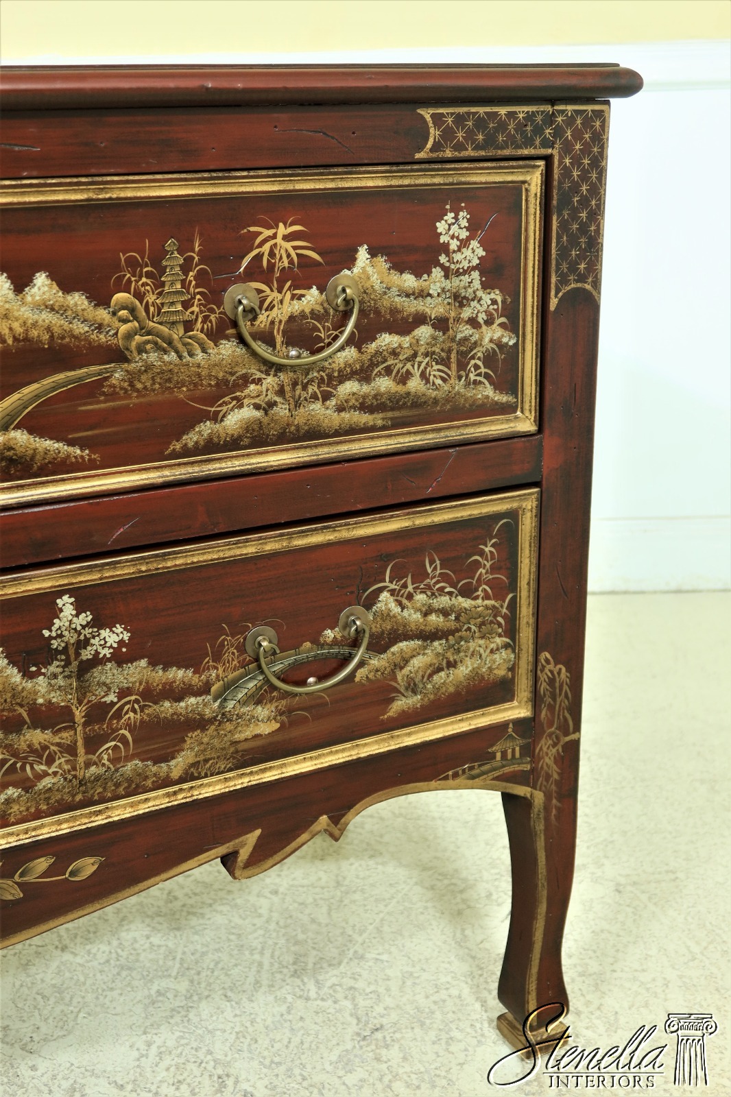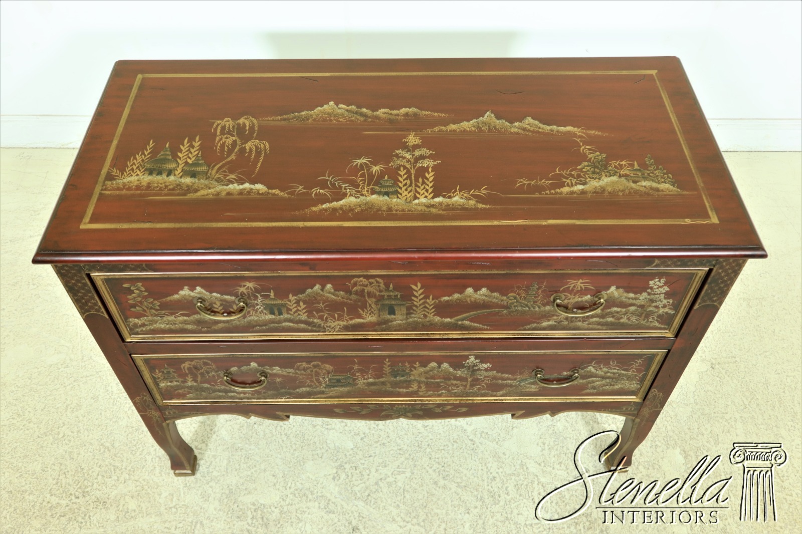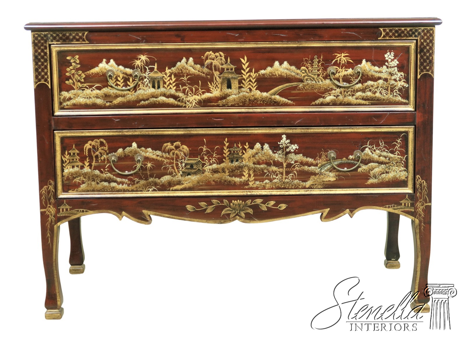 L54197EC: Chinoiserie Decorated Finish 2 Drawer Commode Chest