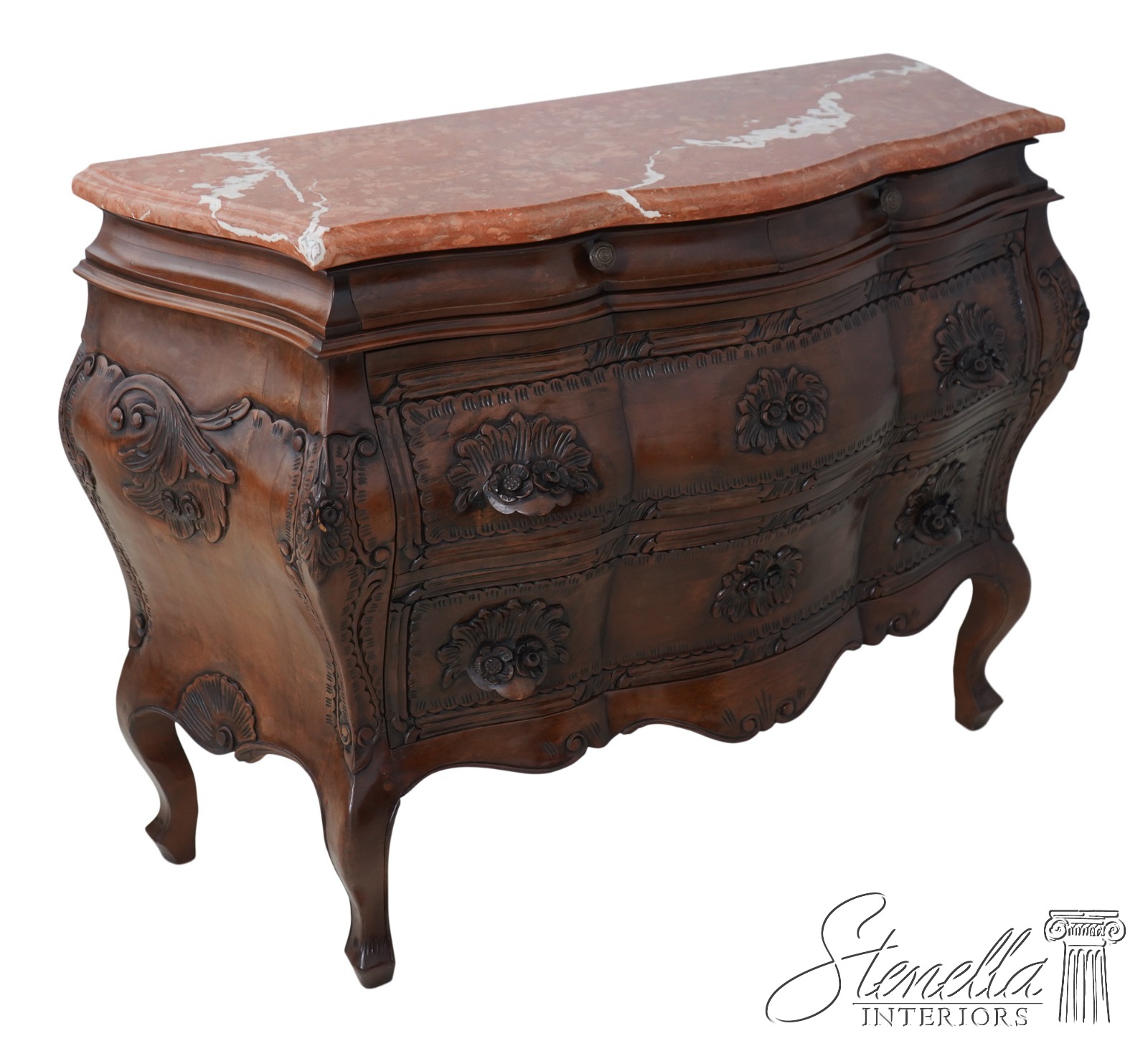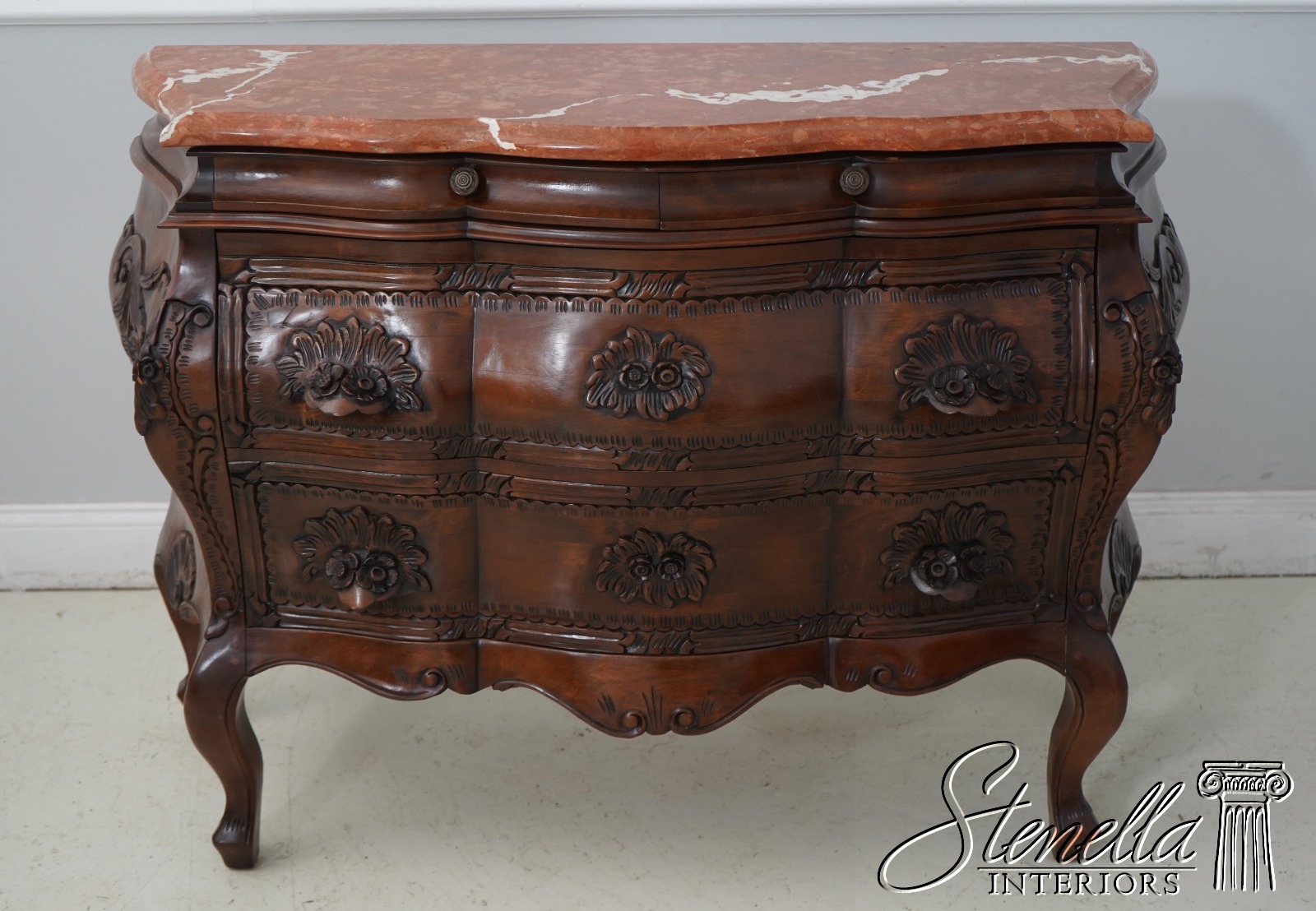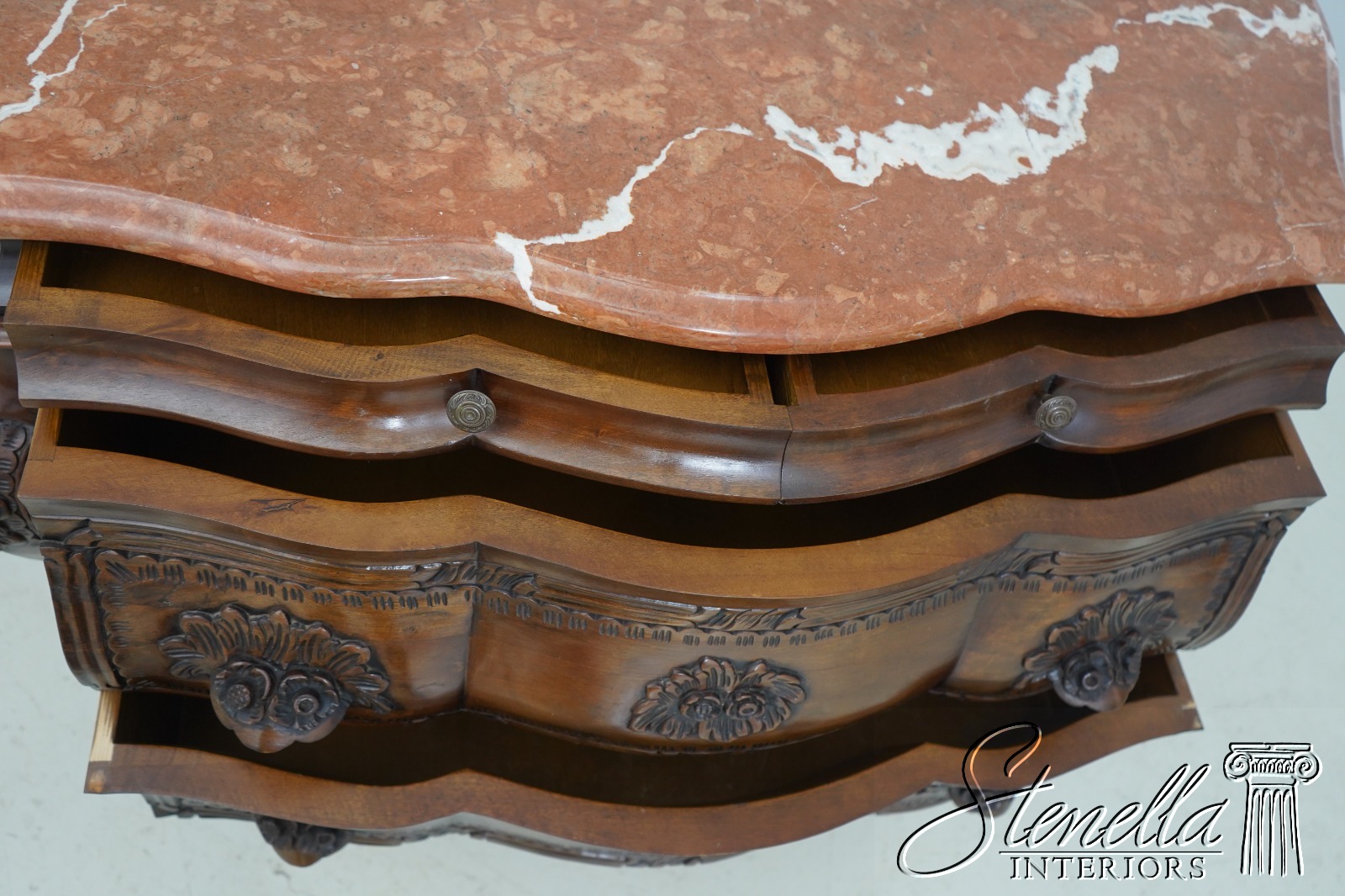L62842EC: Italian Marble Top Commode Chest w. Carved Details