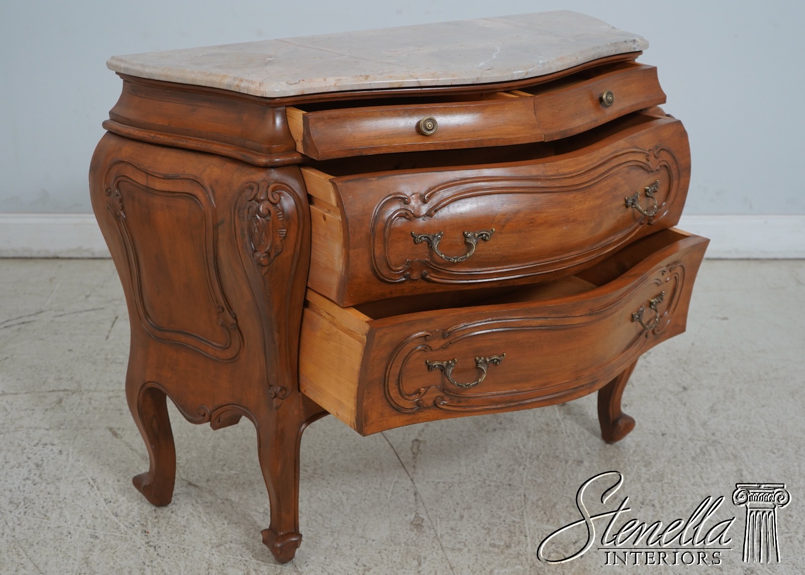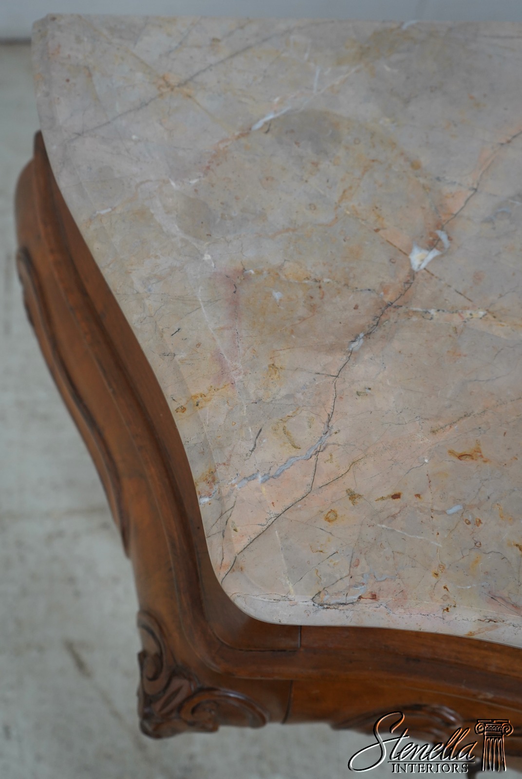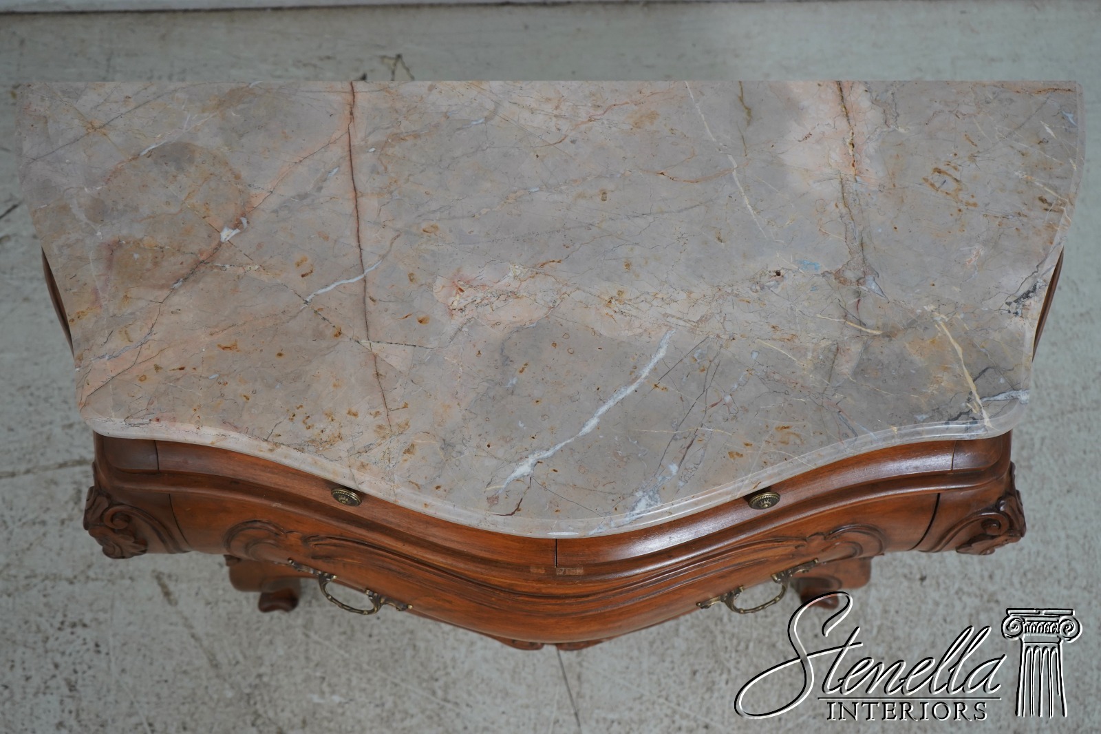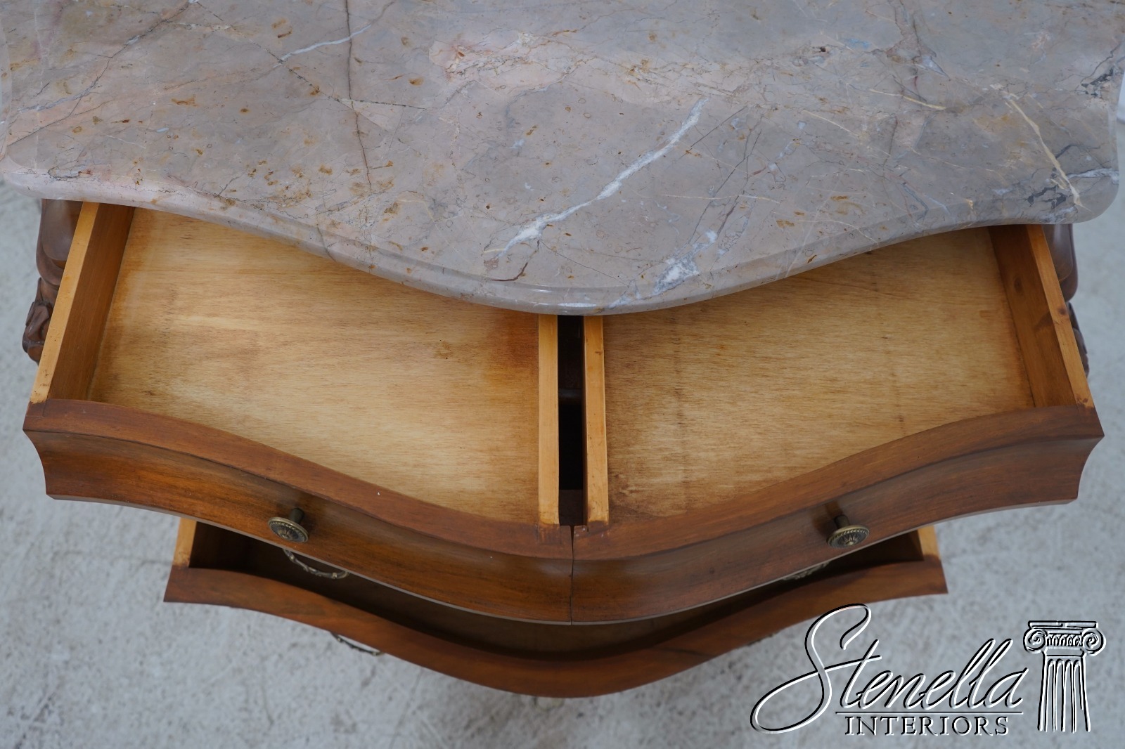 Details: Nice Curved Base & Front Nice Carved Details Beveled Edge Marble Top Possibly Italian Made Brass Hardware