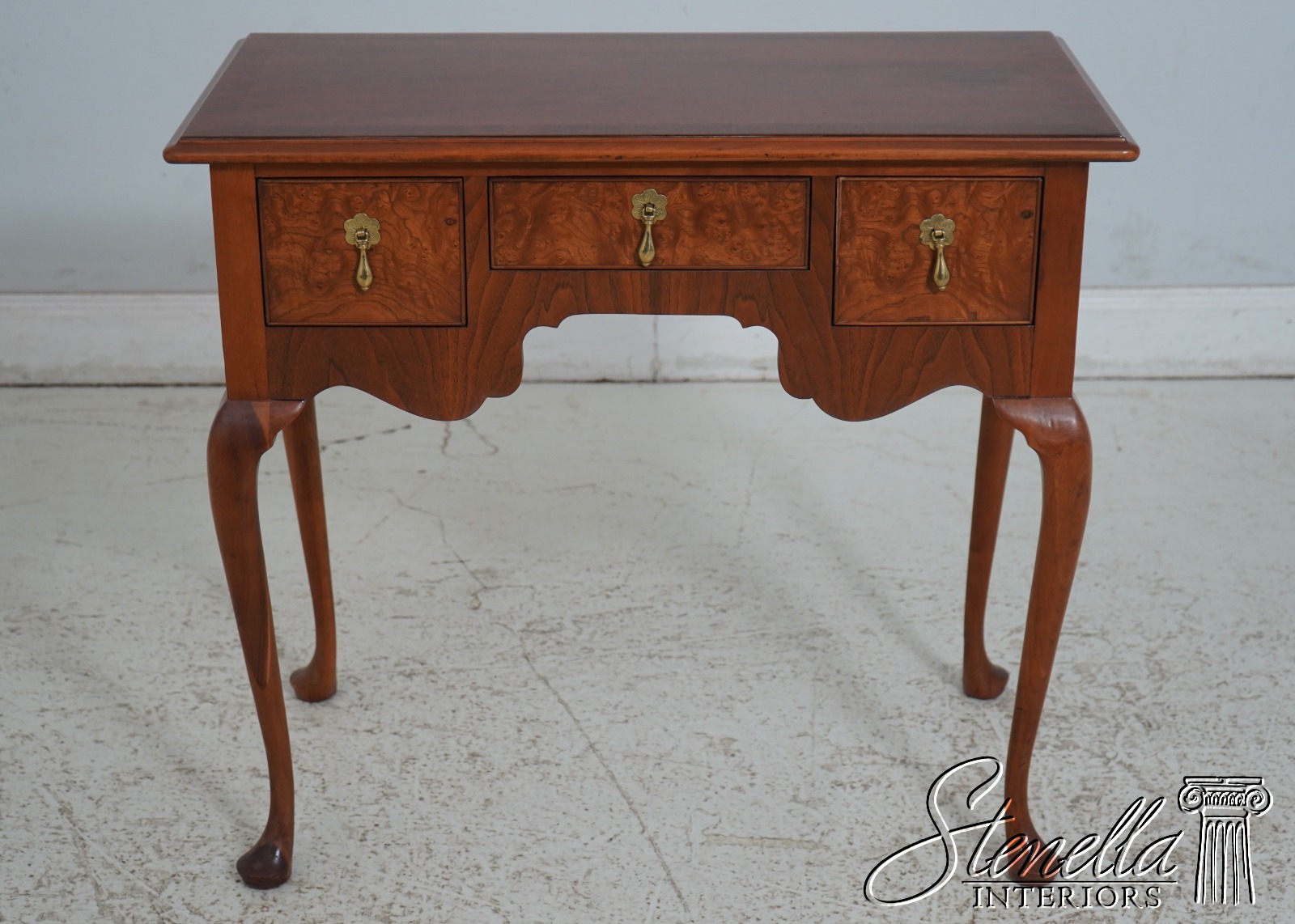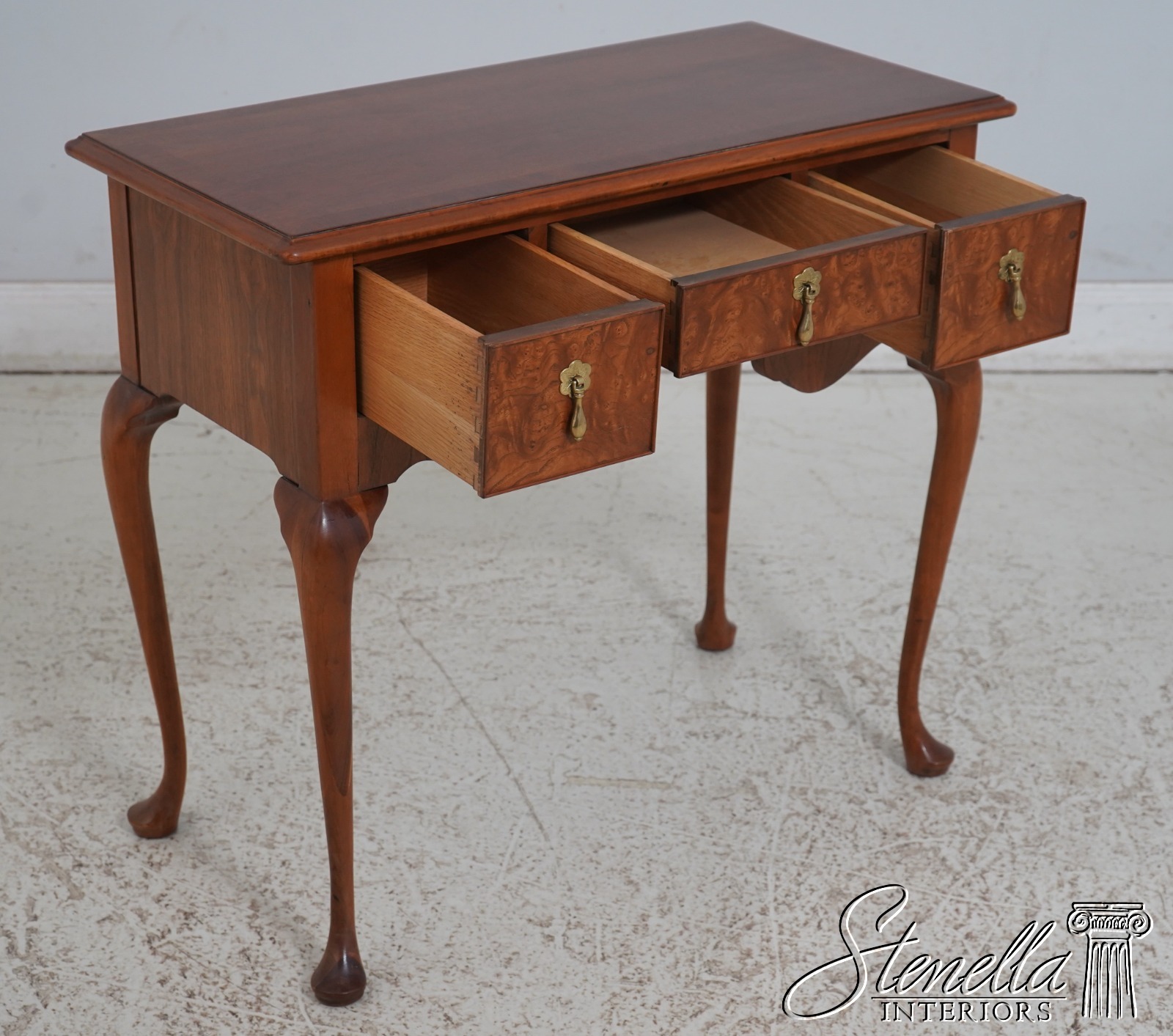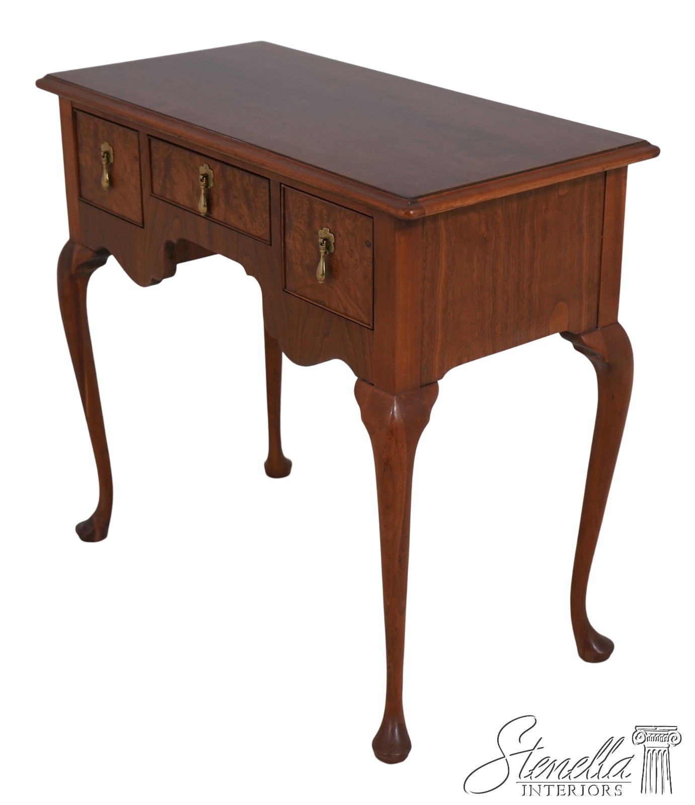 Details: Dovetailed Drawer Construction High Quality Construction Queen Anne Legs & Pad Feet English Style Brass Hardware Burl Walnut Drawer Fronts Un-Marked As To Manufacture