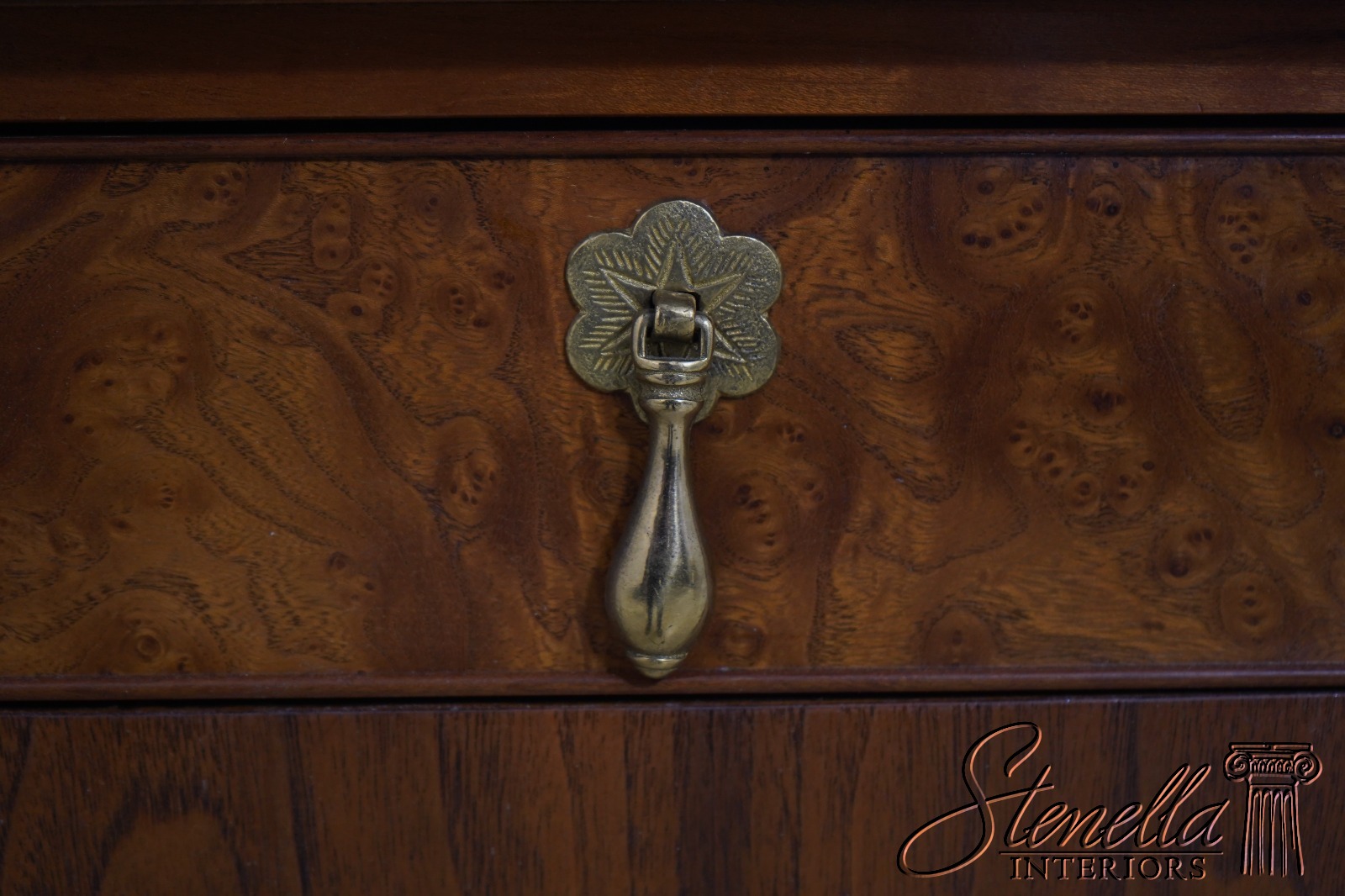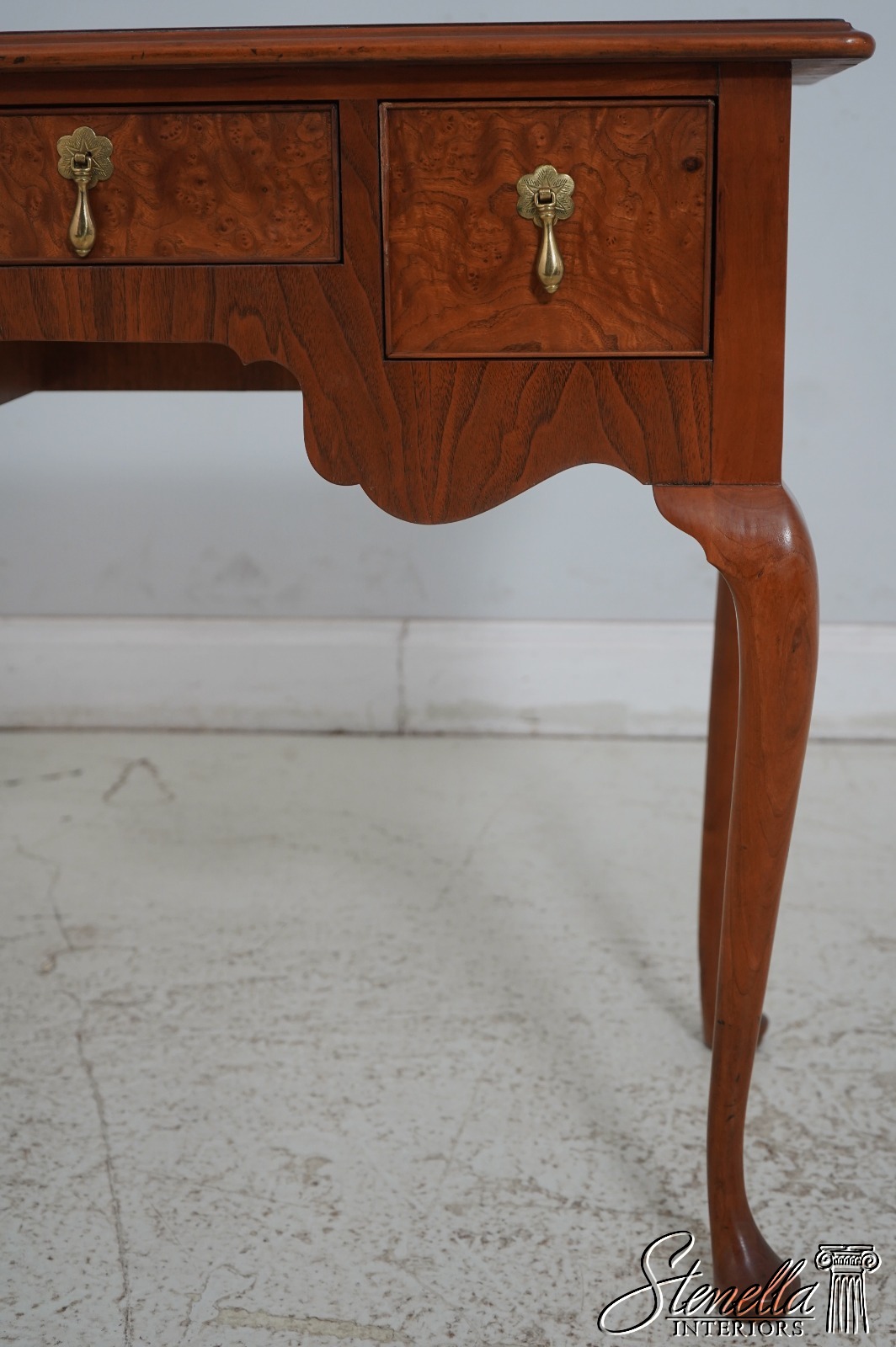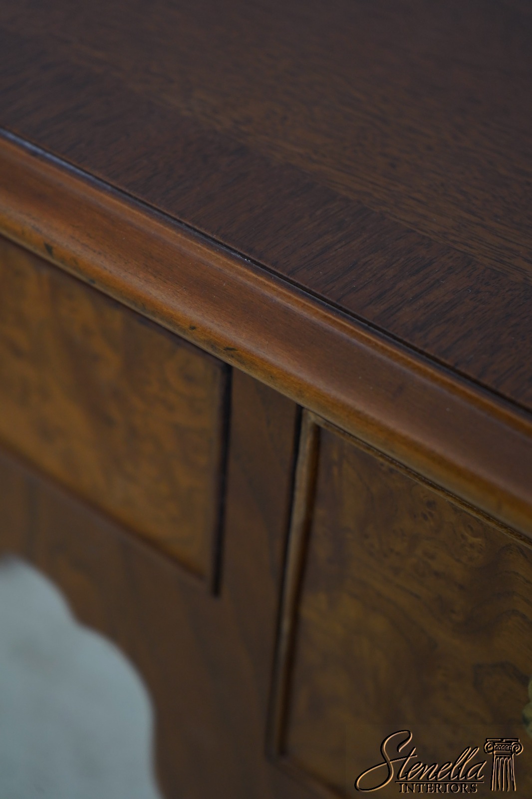 Details: Dovetailed Drawer Construction High Quality Construction Queen Anne Legs & Pad Feet English Style Brass Hardware Burl Walnut Drawer Fronts Un-Marked As To Manufacture