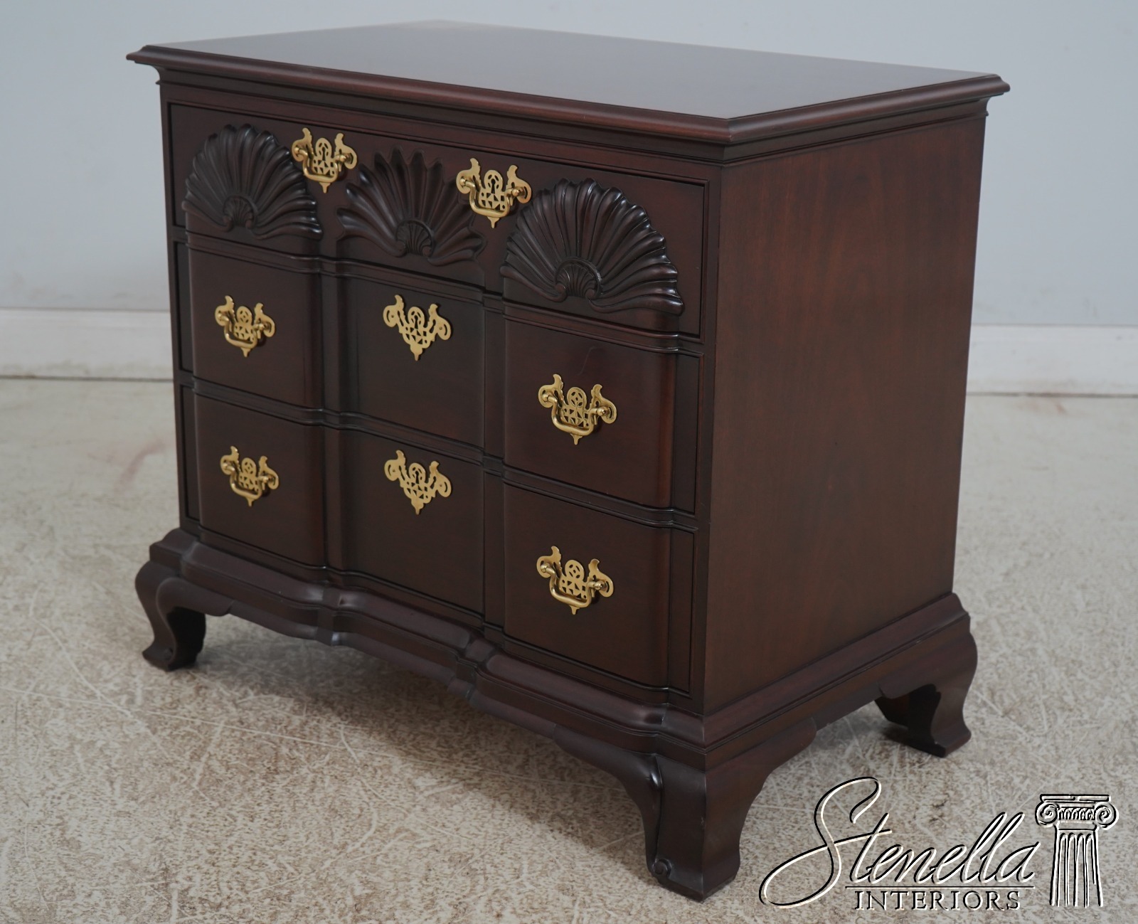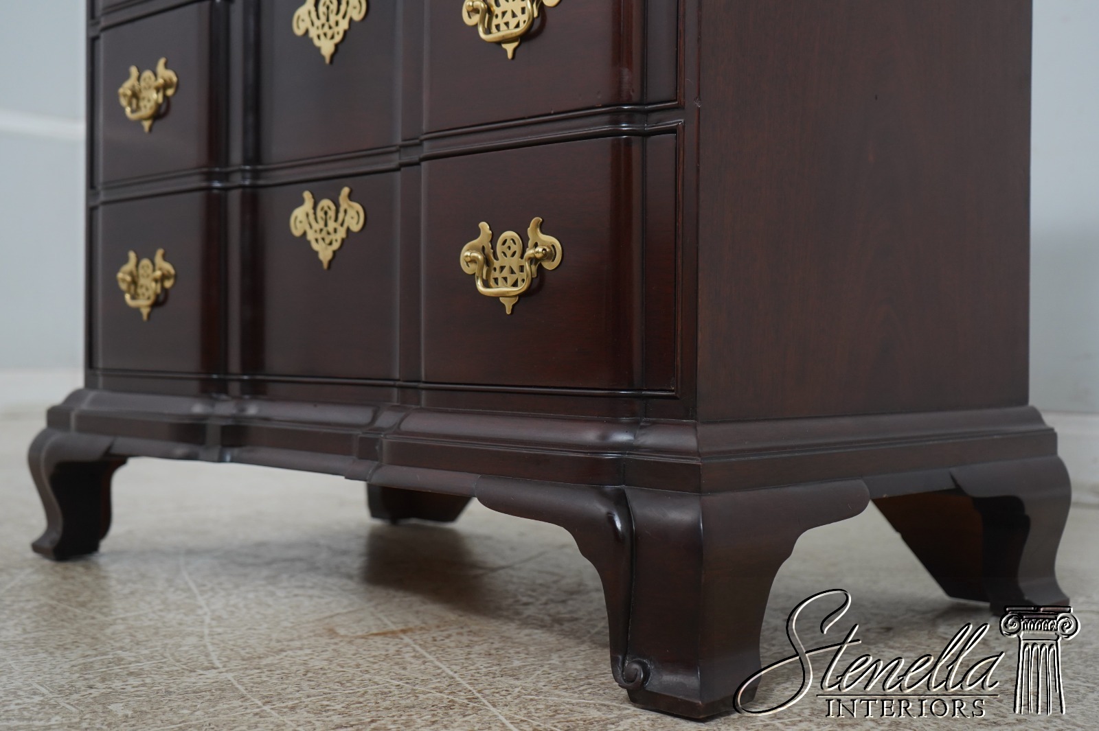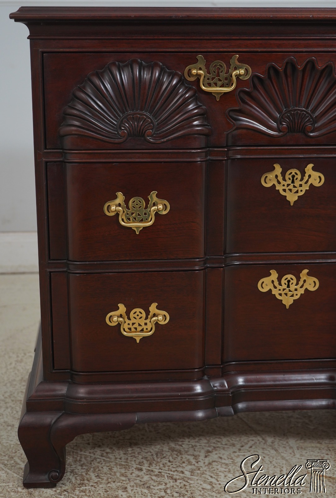 Details: Oxford Finish Goddard Townsend Design Bracket Feet Dovetailed Drawer Construction High Quality Construction 18 C. Design Chippendale Style Traditional Style Solid Brass Hardware Block Front w. Shell Carvings Offered @ Fraction Original Retail Cost