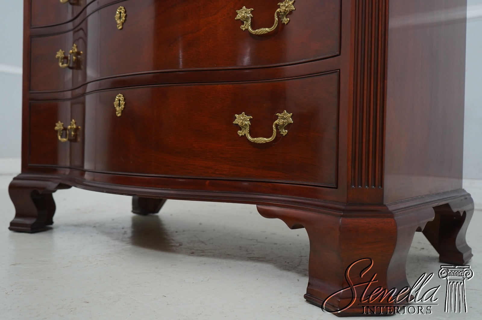 Details: National Trust For The Historic Preservation Mahogany Bracket Feet Dovetailed Drawer Construction Fine Carved Details High Quality Construction Large Impressive Chest Rich High Sheen Finish Individual Locking Drawers Chippendale Style Traditional Style Solid Brass Hardware Key Locking W. Key Offered @ Fraction Original Retail Cost