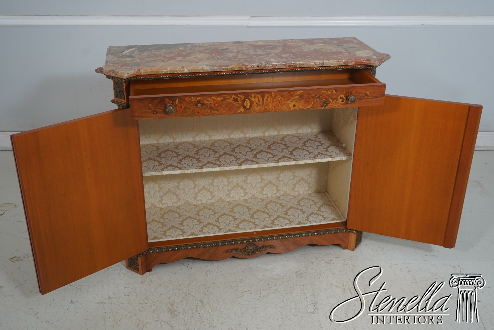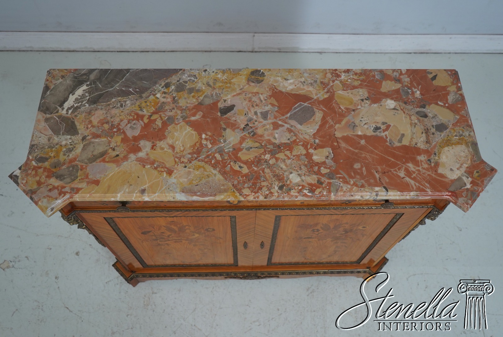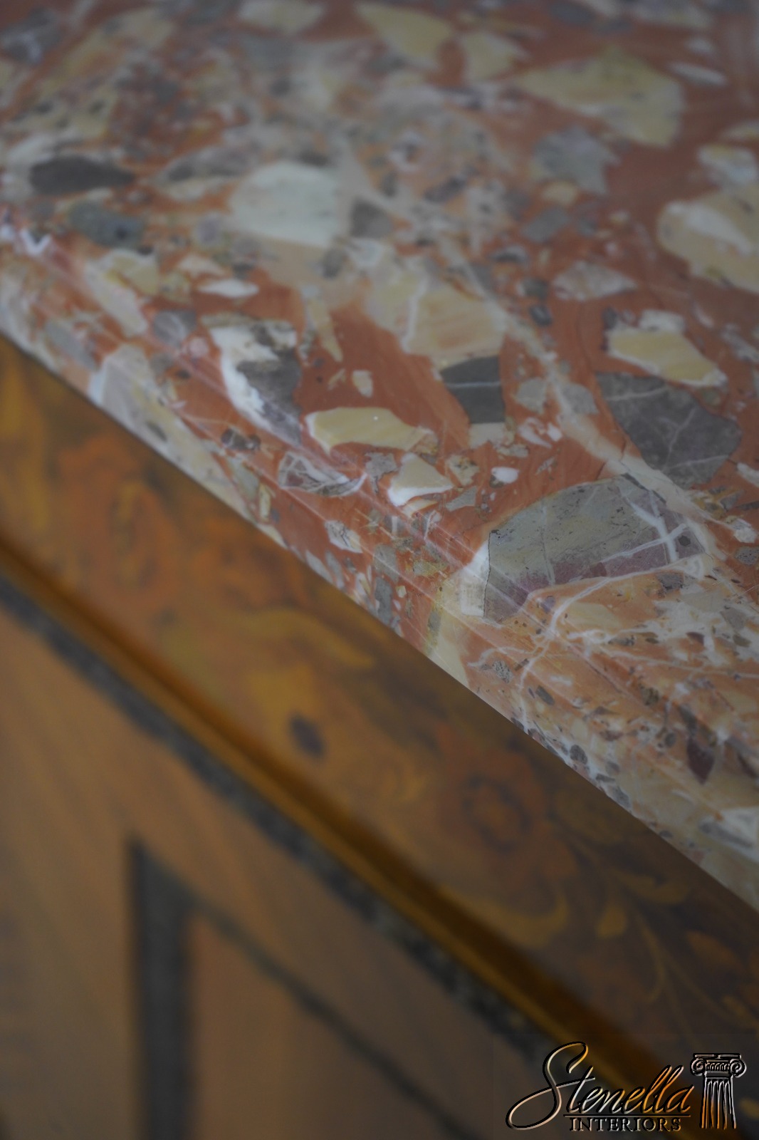 L68955: COLOMBO Italian Marble Top Louis XV Style Marquetry Inlaid Commode