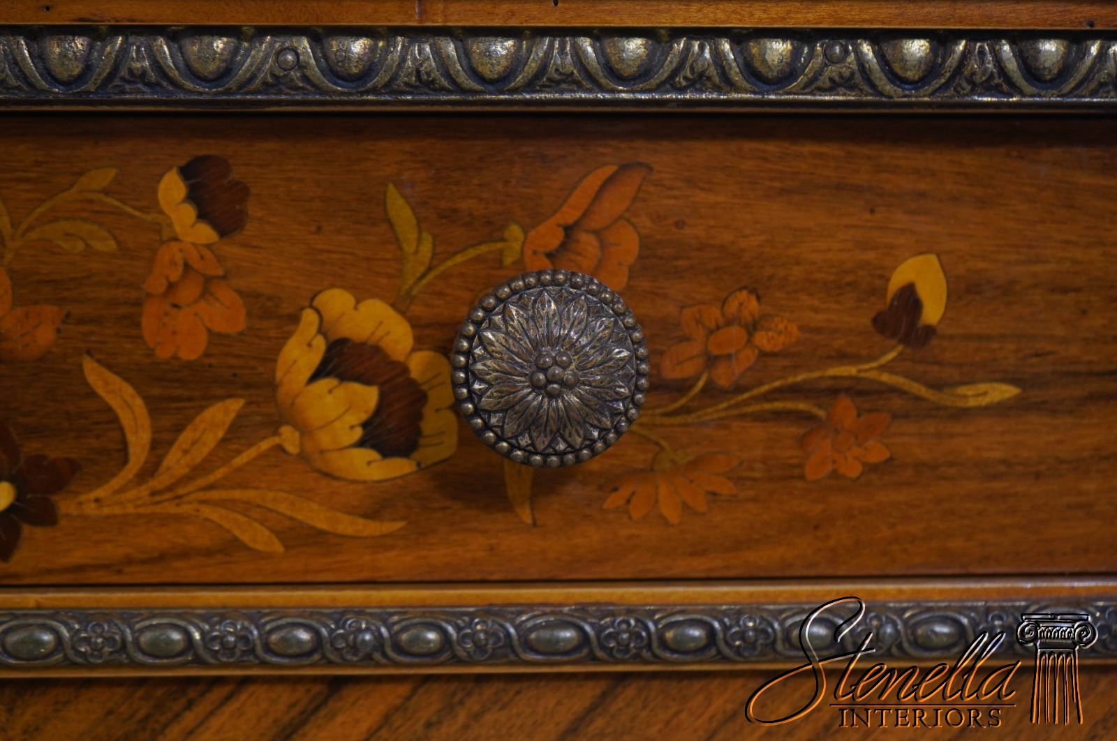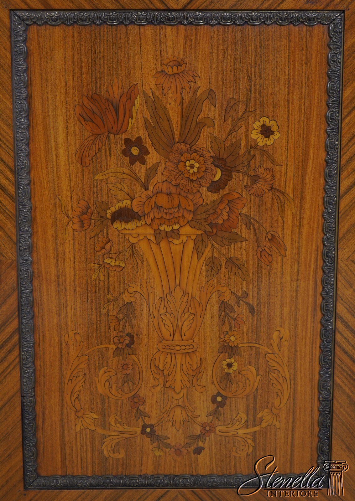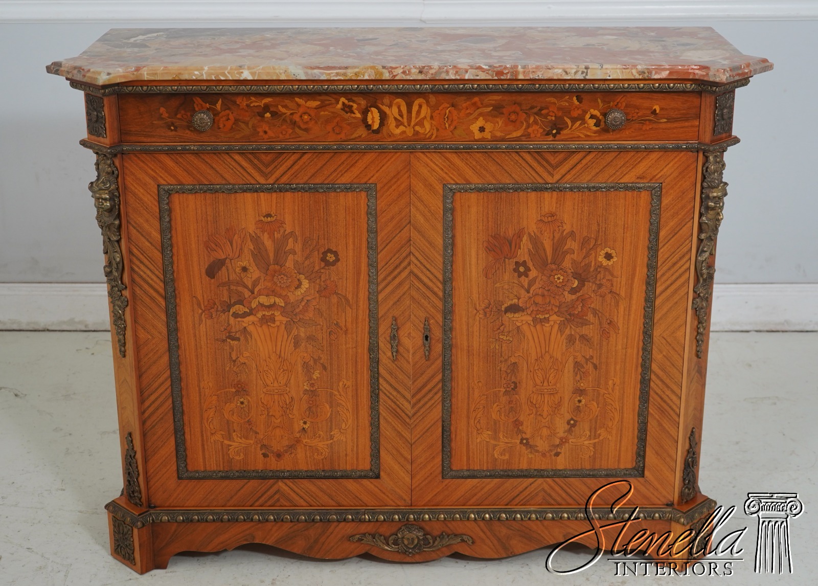 L68955: COLOMBO Italian Marble Top Louis XV Style Marquetry Inlaid Commode