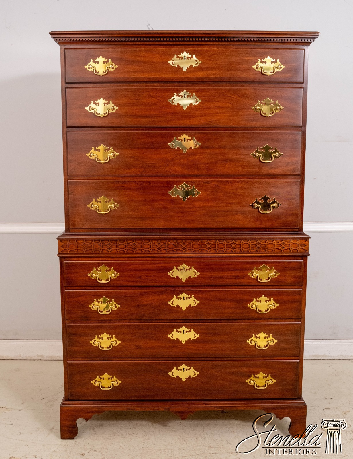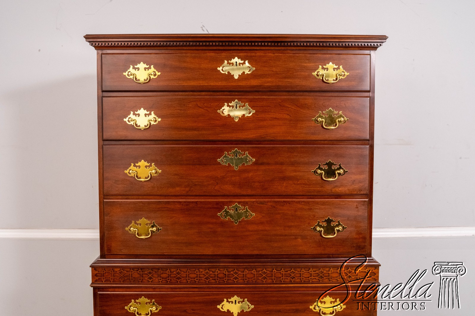 L69377: HENKEL HARRIS Cherry Chippendale Perkins Highboy Chest On Chest