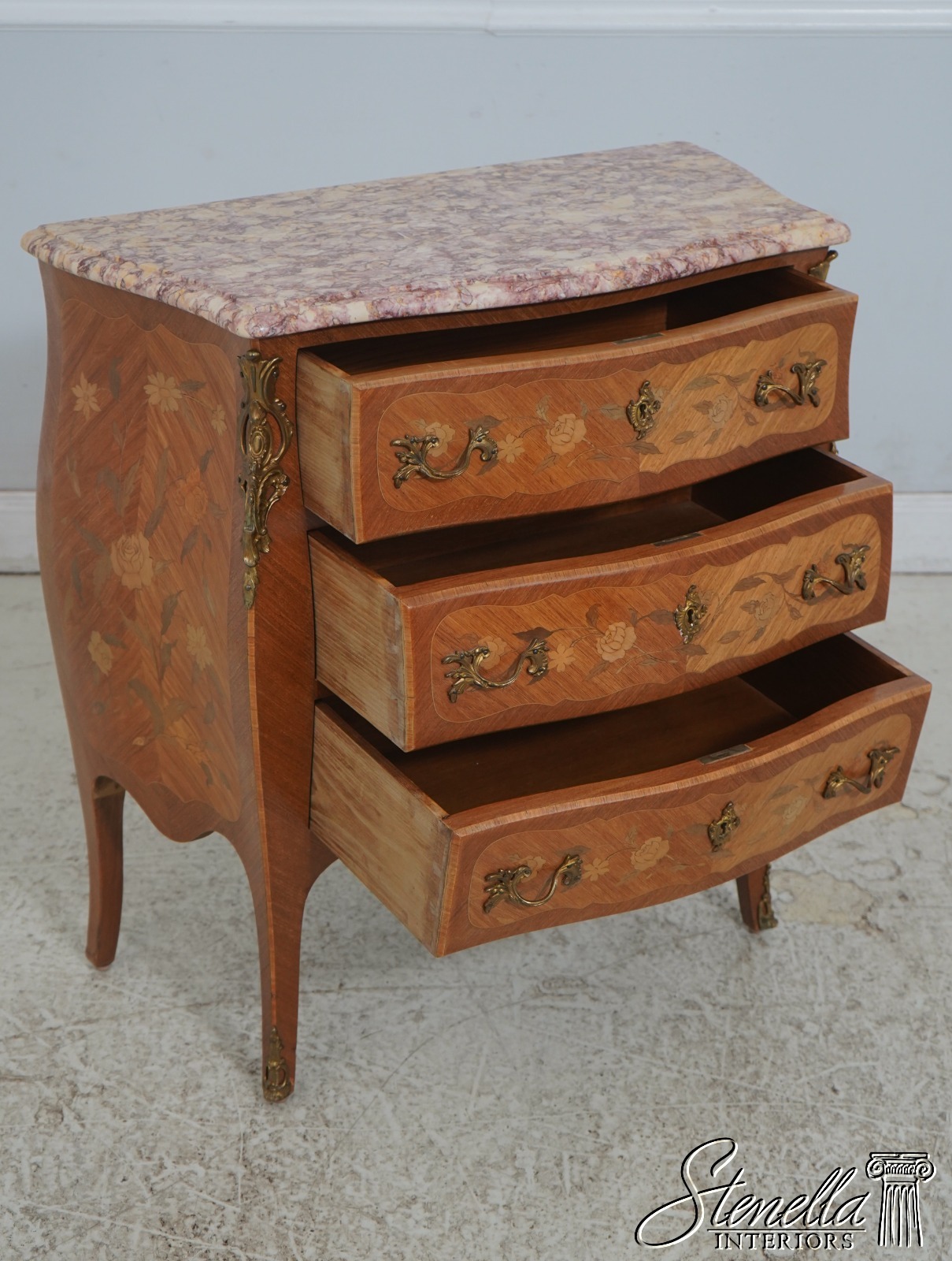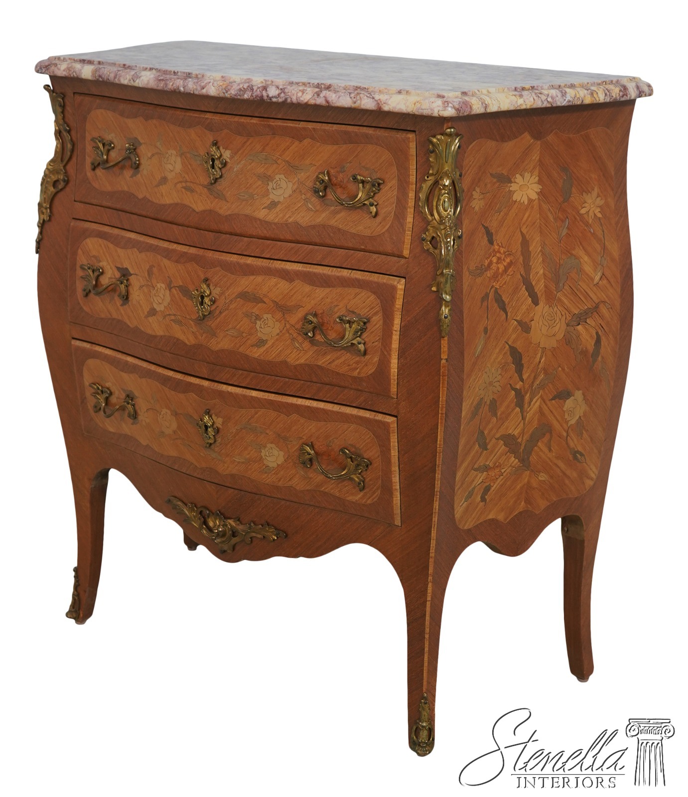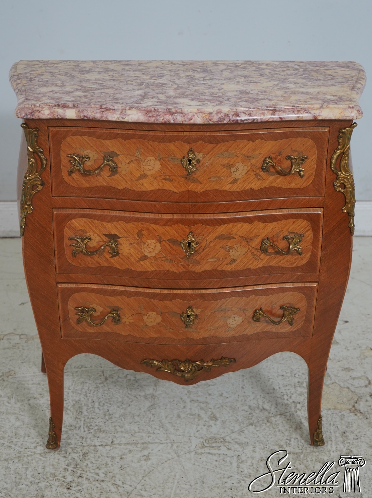 Details: Key Lock Drawers Dovetailed Drawer Construction High Quality Construction Nice Inlay Work Throughout Federal Style French Louis XV Style Nice Marble Top Appears To Be French Brass Ormolu Mounts