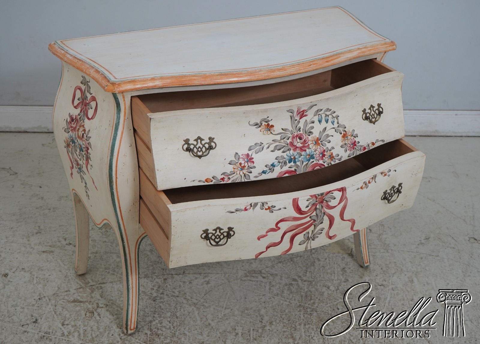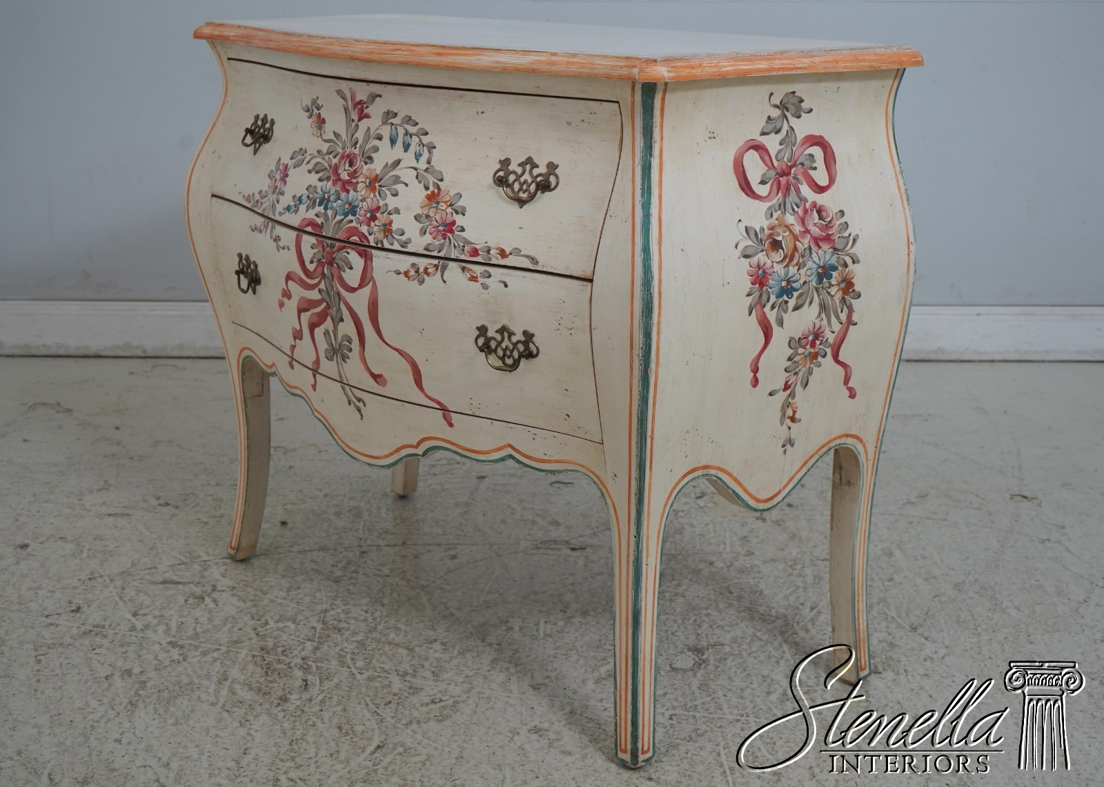 L69892: Venetian Paint Decorated 2 Drawer Bombe Commode Chest