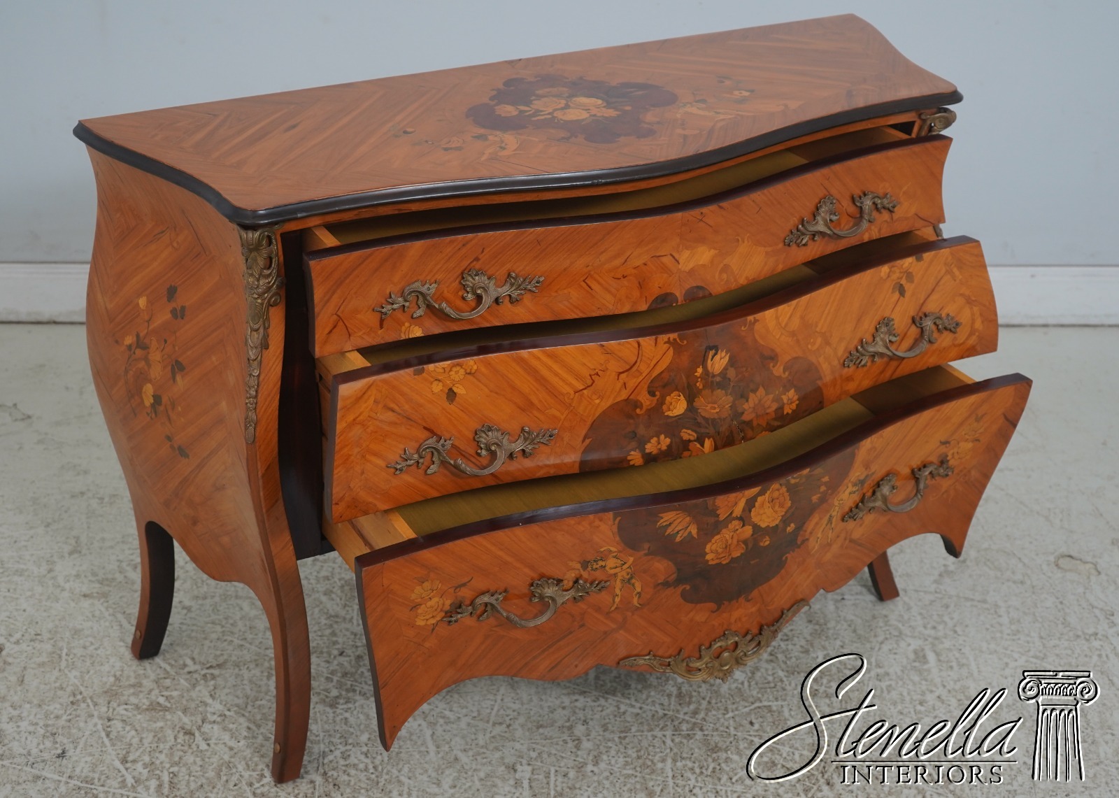L70312: French Louis XV Style Highly Inlaid 3 Drawer Commode