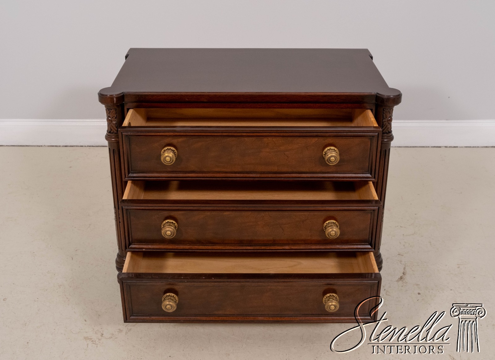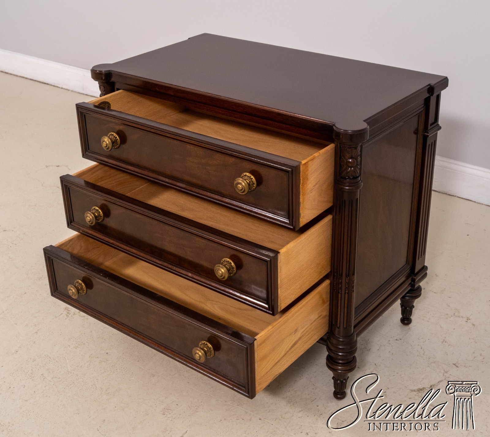 - L70409: KARGES Louis XVI Mahogany Three-Drawer Accent Chest Nightstand
