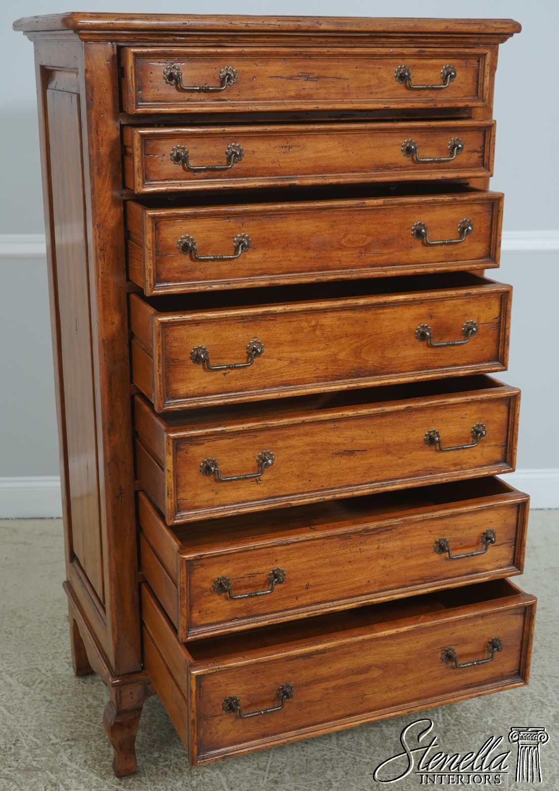 L71094: Italian Style Distressed Finish 7 Drawer High Chest