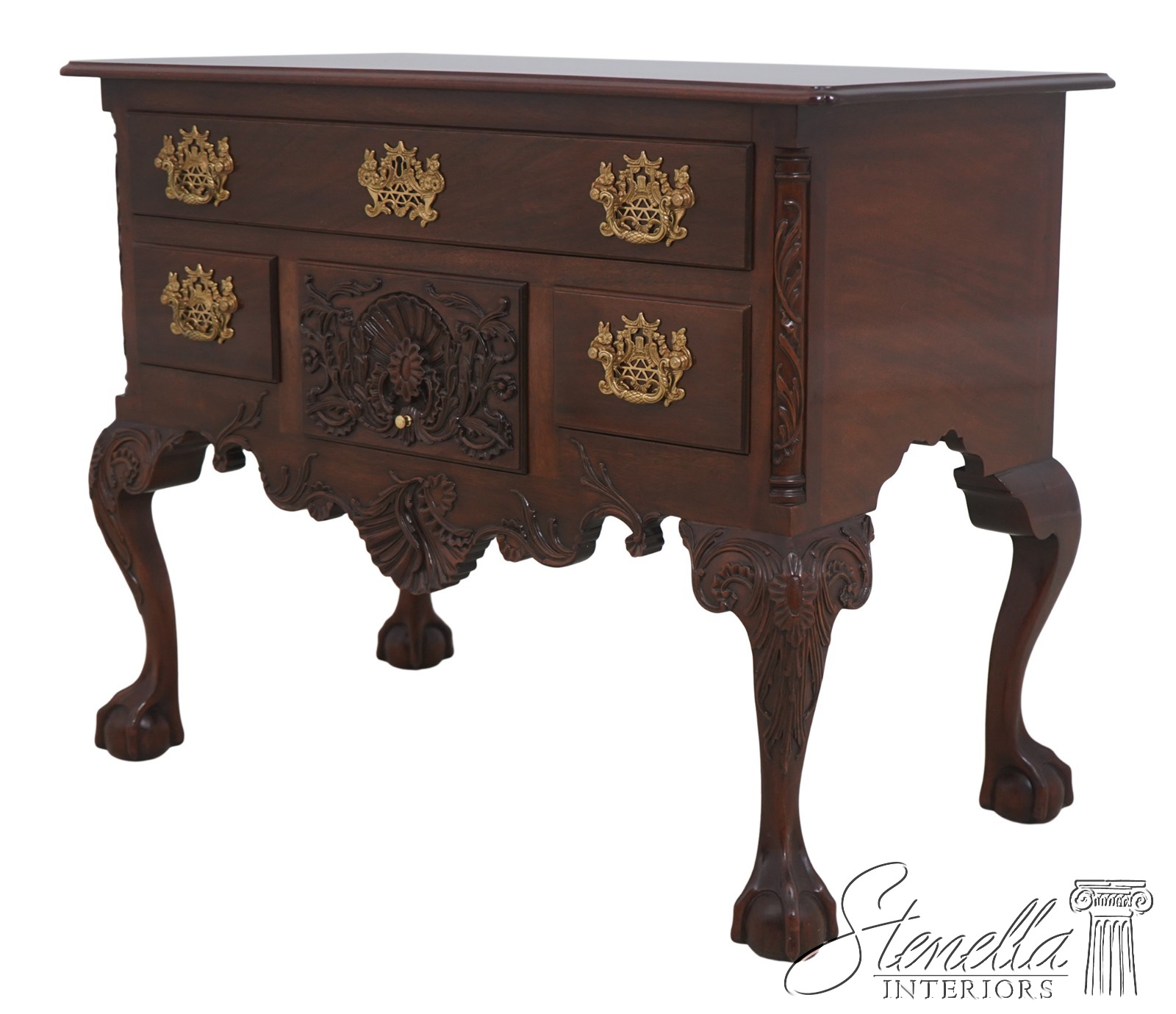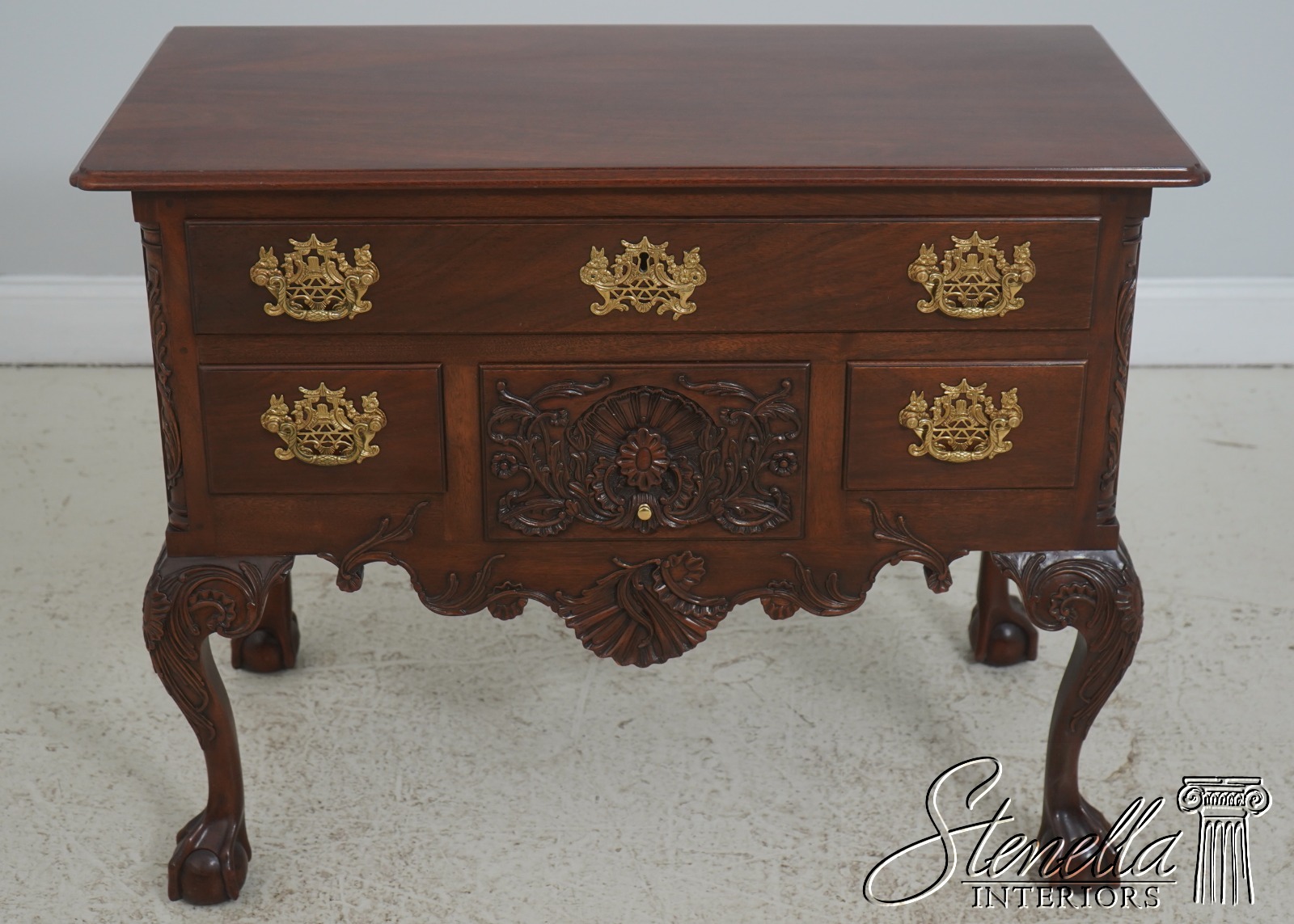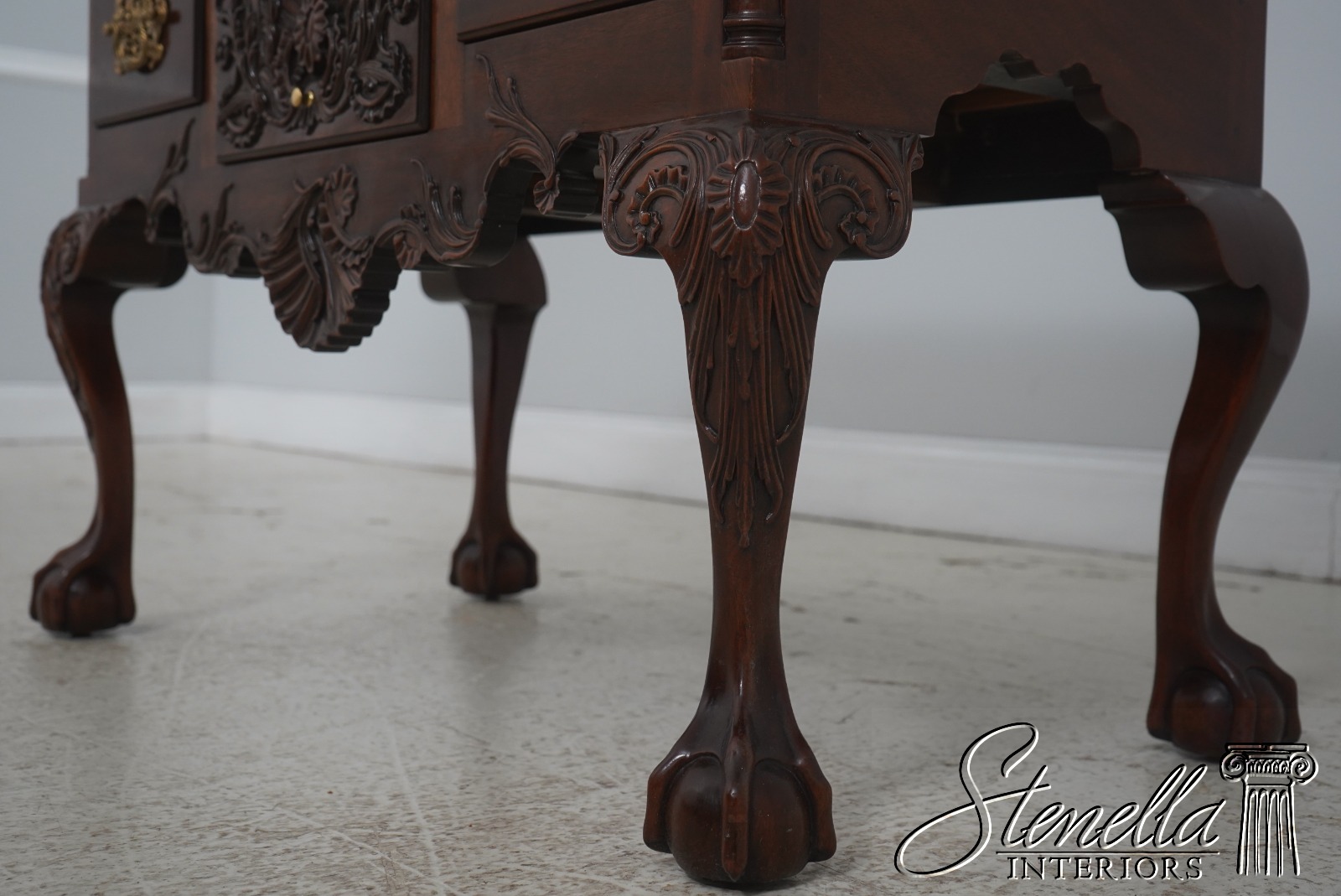 Details: Winterthur Collection Ball & Claw Feet Dovetailed Drawer Construction Fine Carved Details High Quality Construction 18 C. Design Chippendale Style Traditional Style Solid Brass Hardware From The Estate Of The Late Kindel President Offered @ Fraction Original Retail Cost