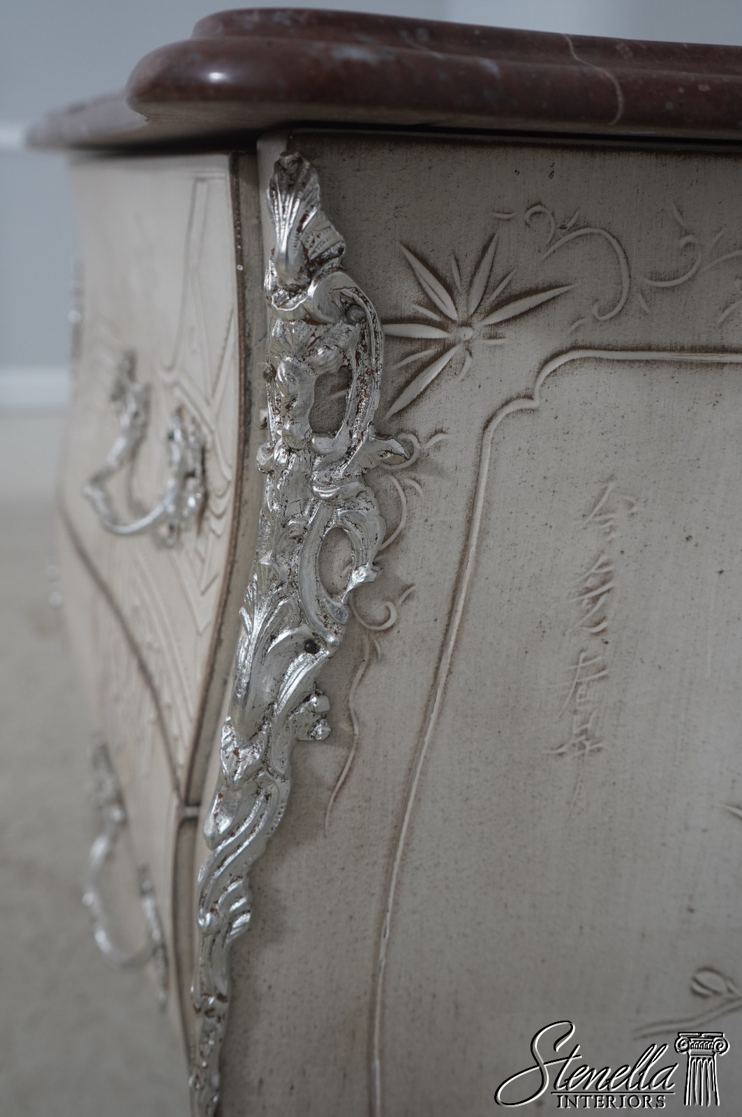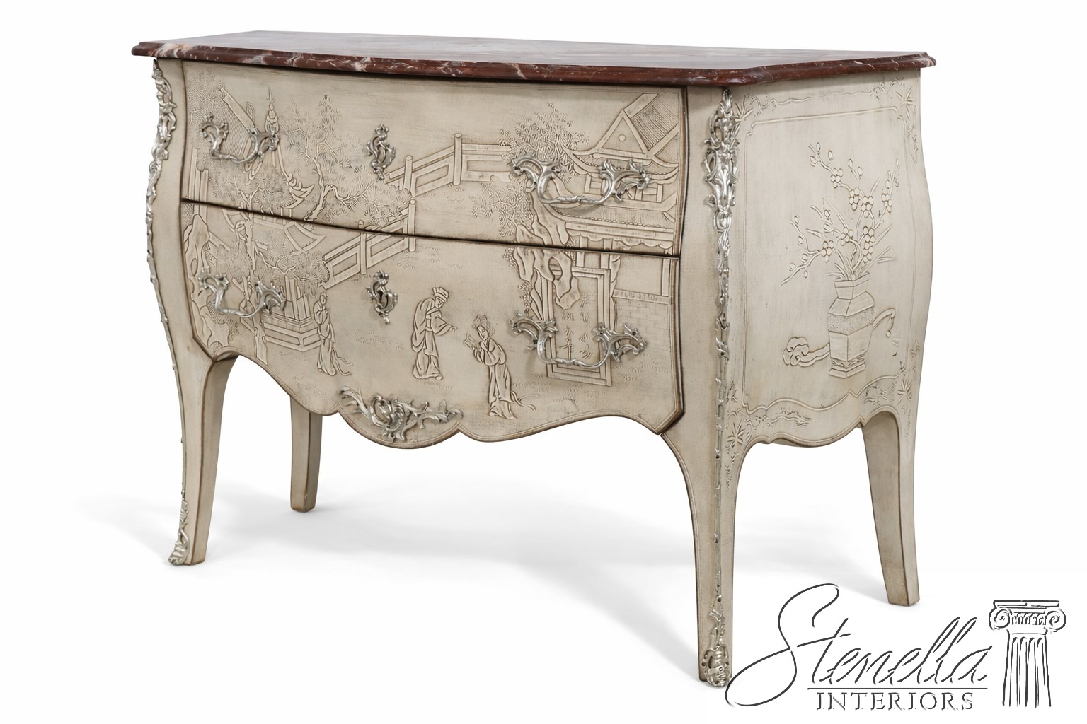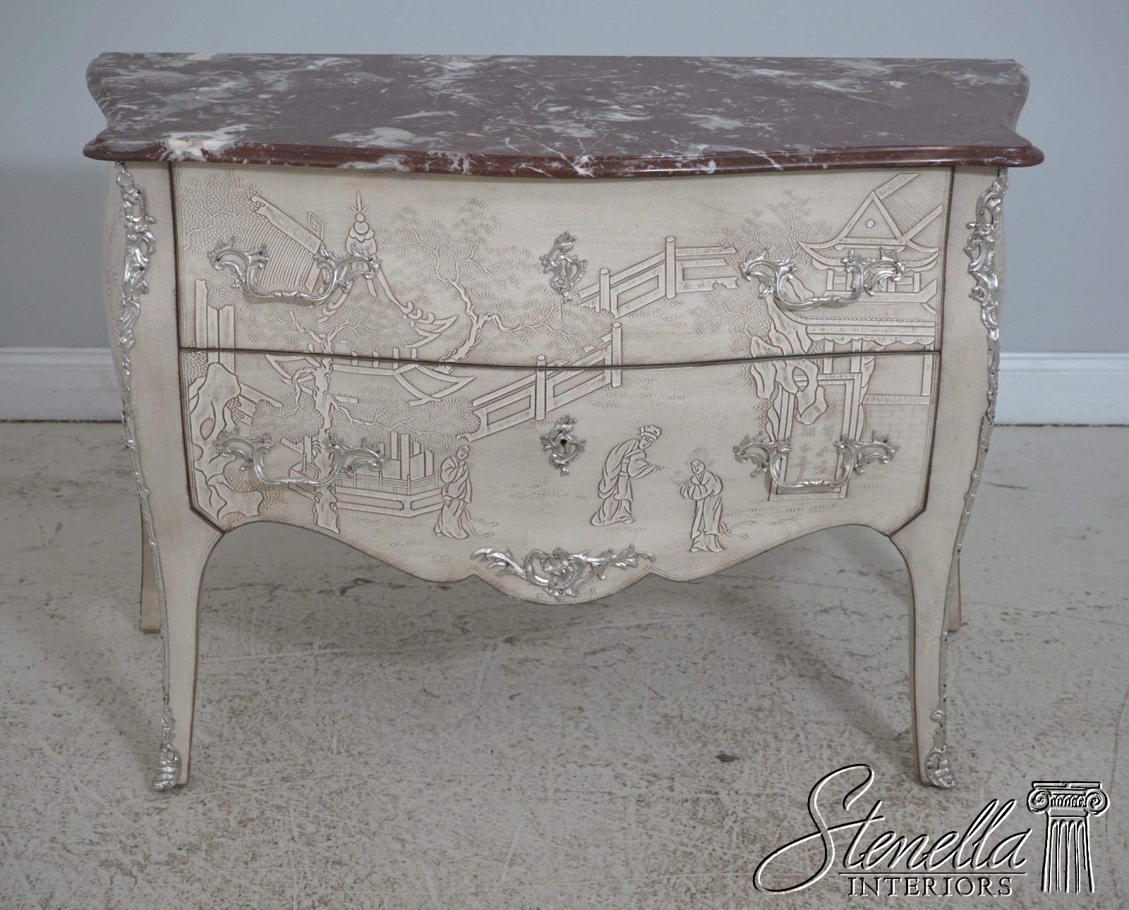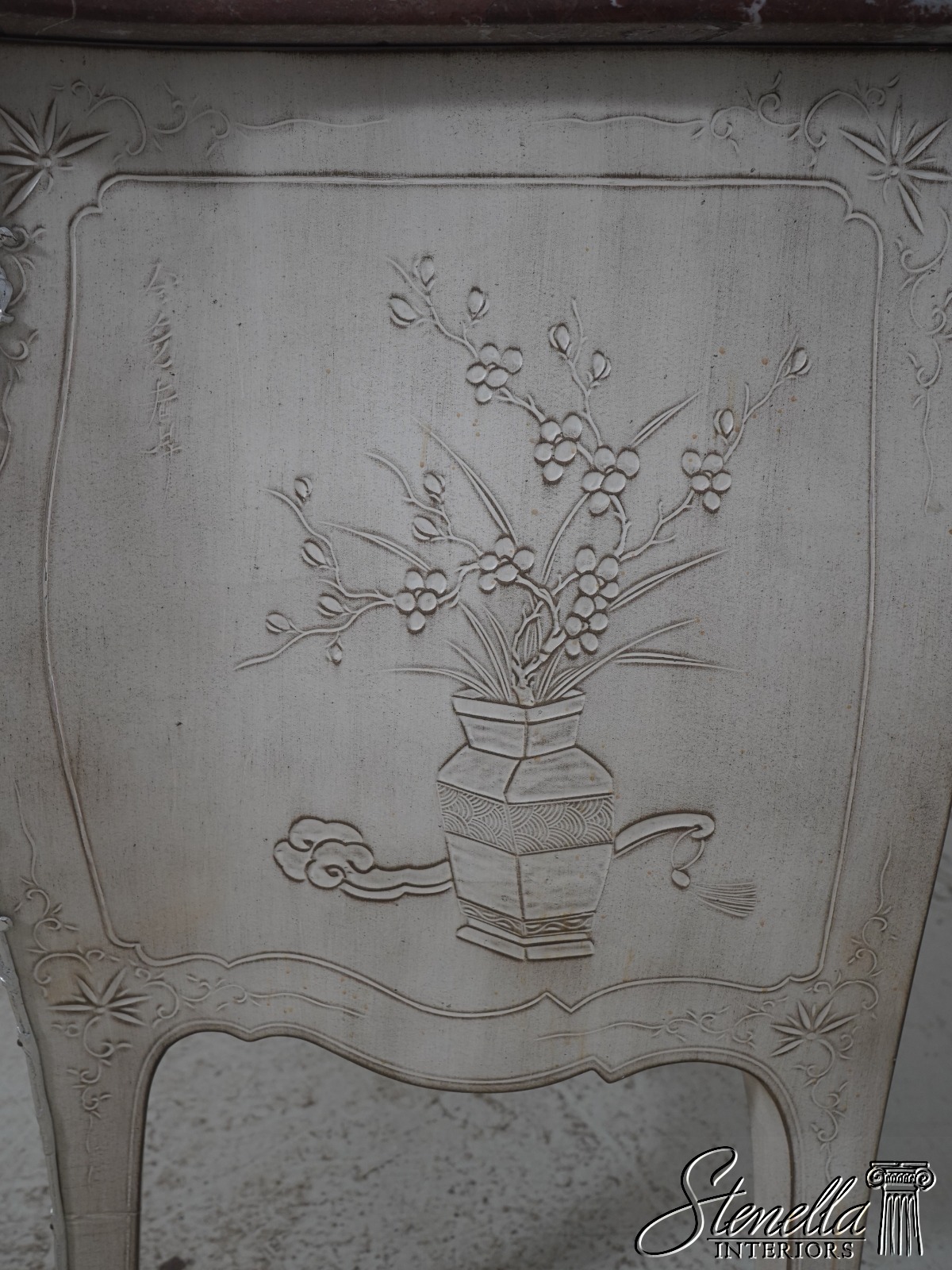 L71897: French Style Chinoiserie Carved Marble Top Commode Chest