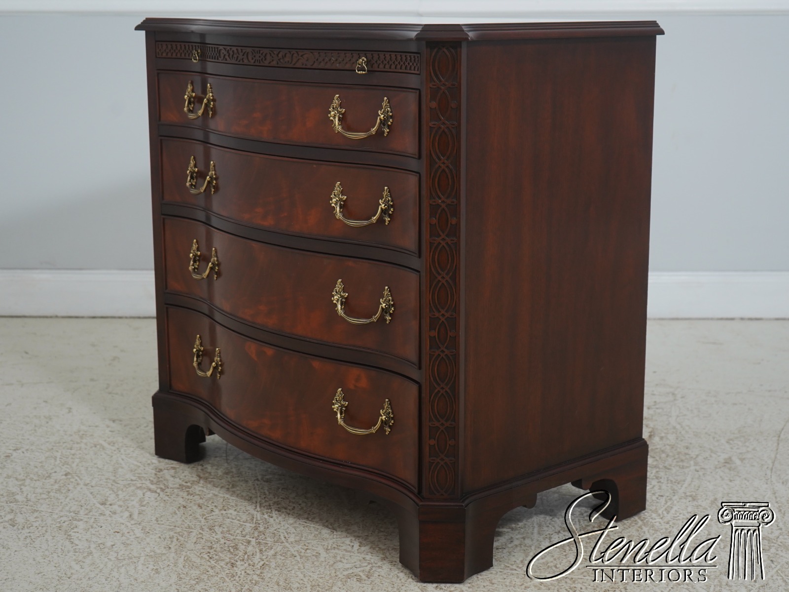 Details: Finish No.29 Mahogany High Quality Construction 18 C. Design Chippendale Style Figural Mahogany Fronts Traditional Style Solid Brass Hardware See Other Offerings For Matching Chest Offered @ Fraction Original Retail Cost