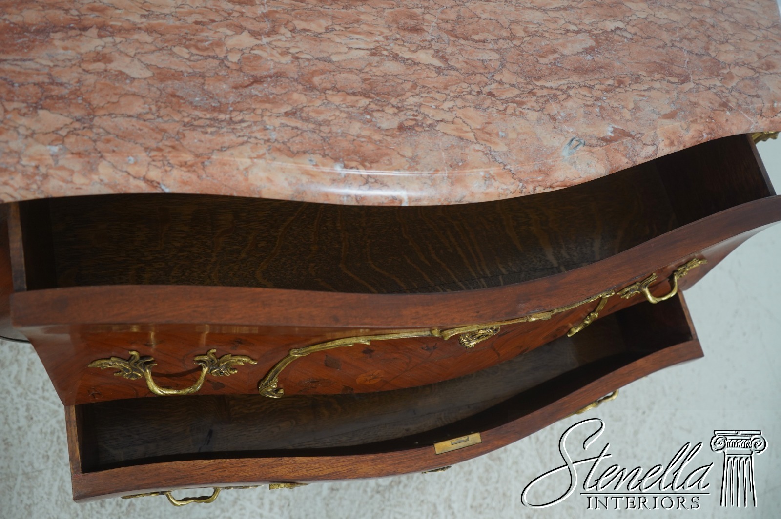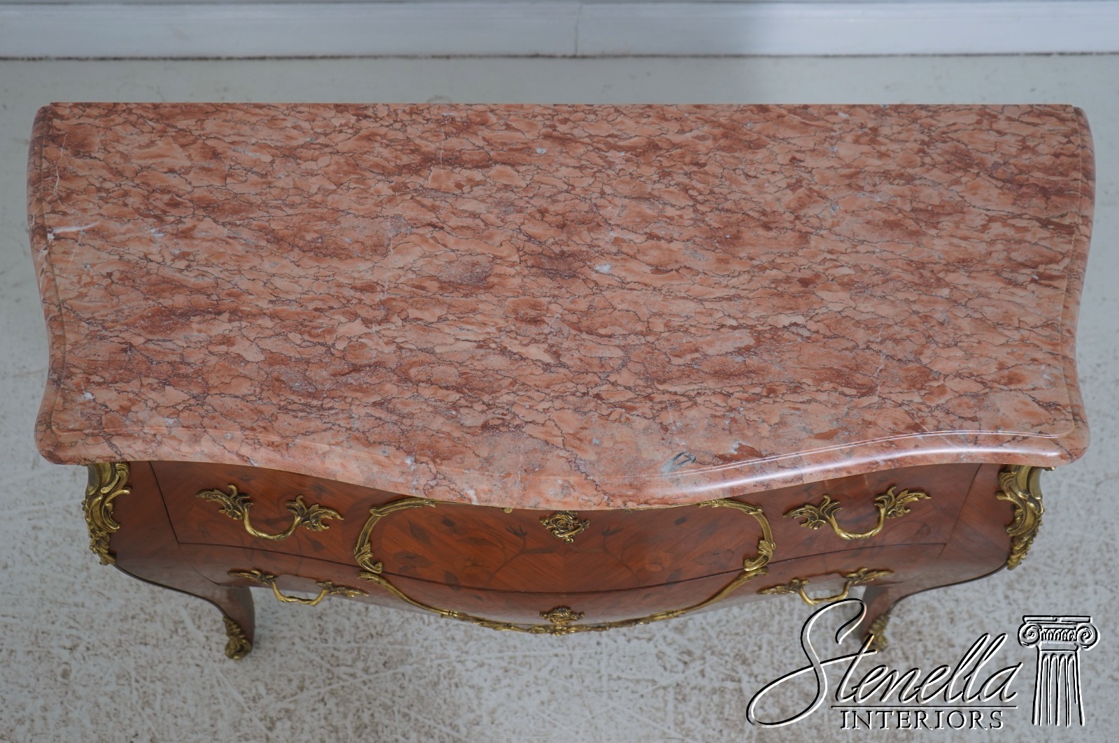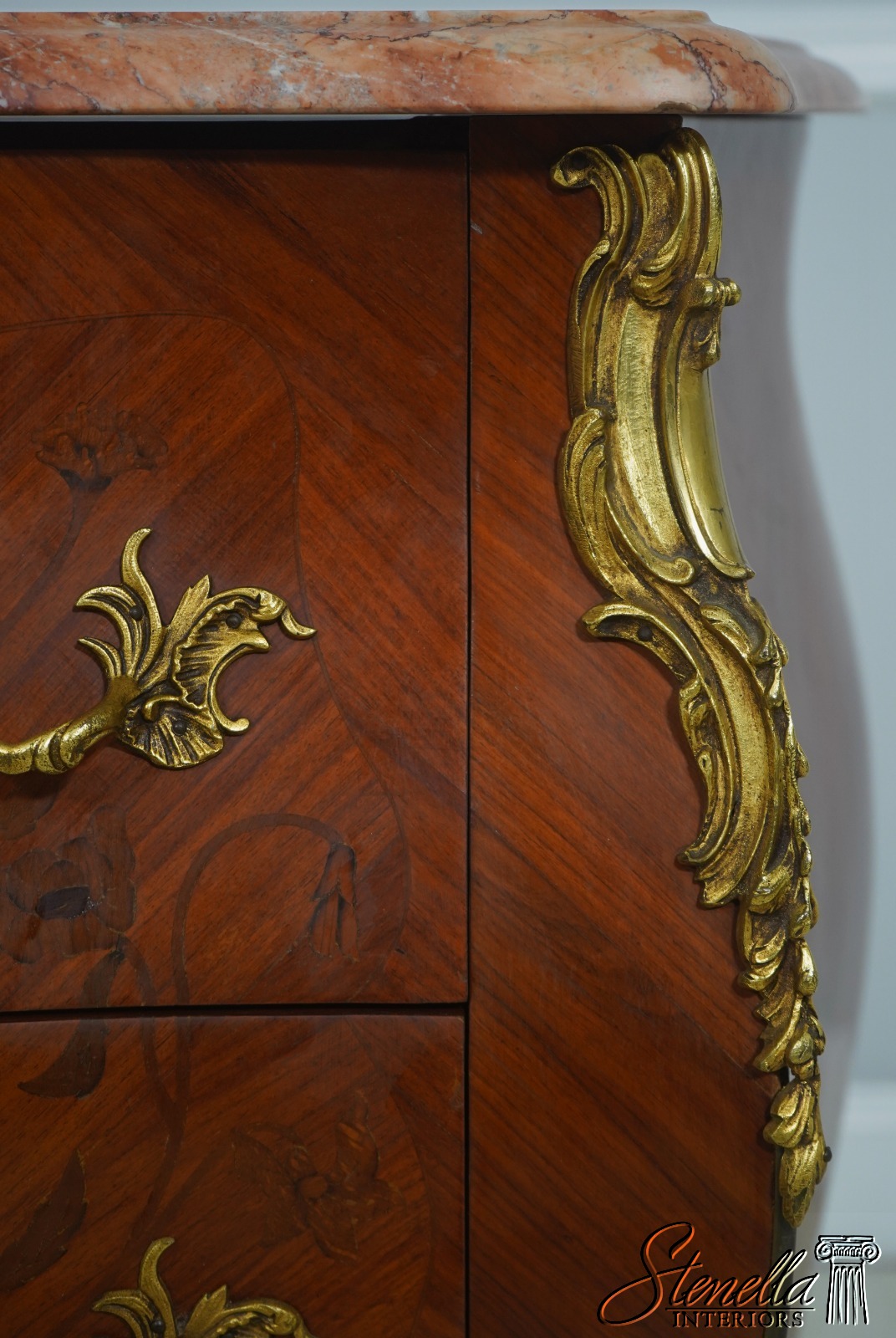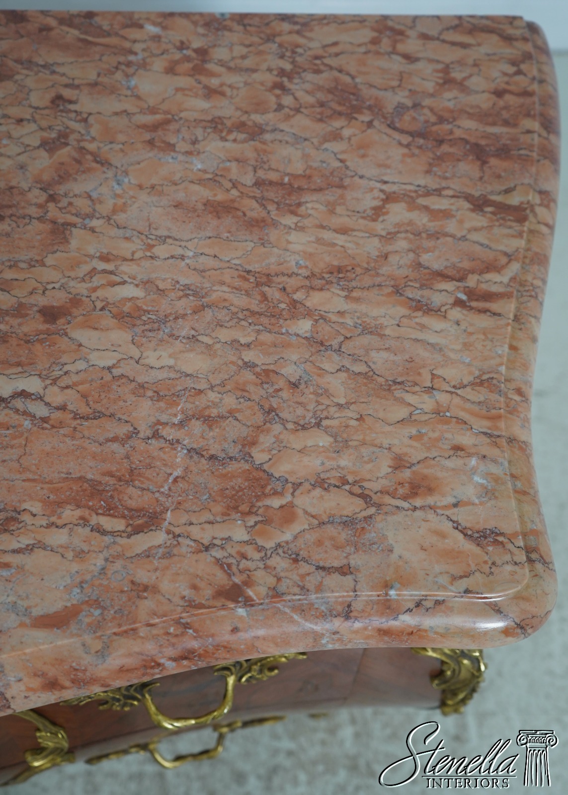 L72242: Vintage Louis XV Style Marquetry Bombe Marble Top Commode