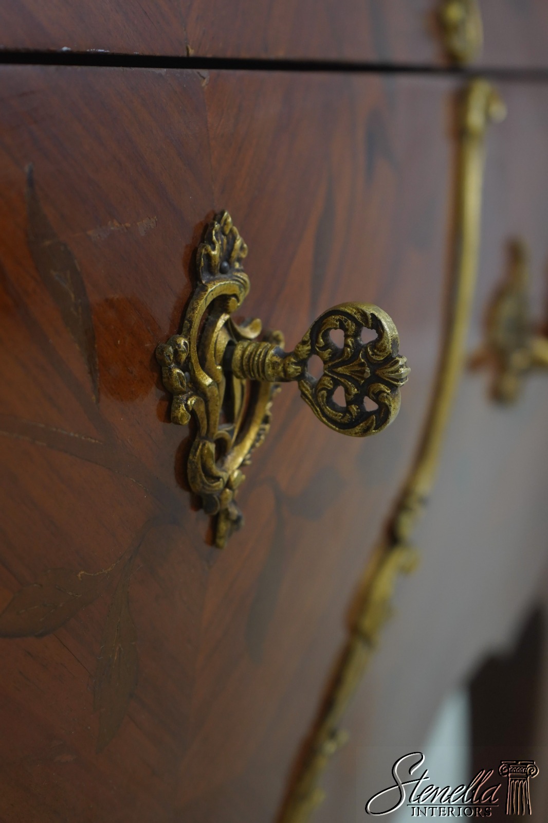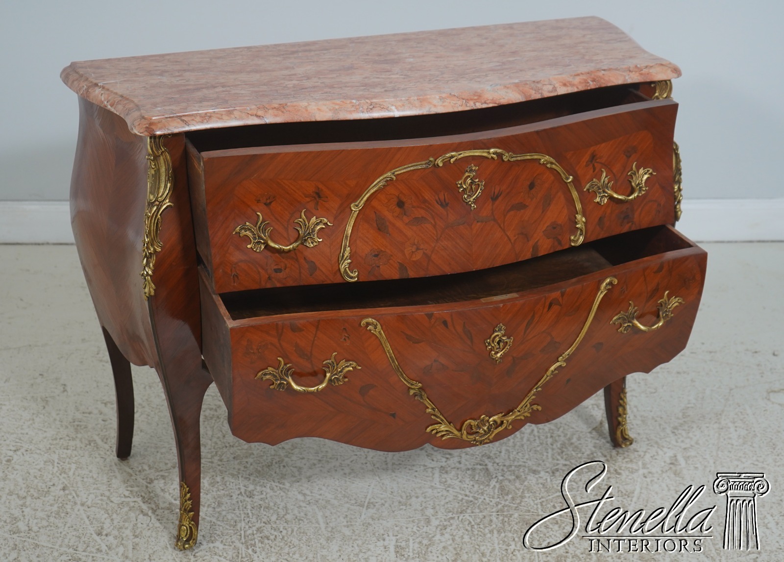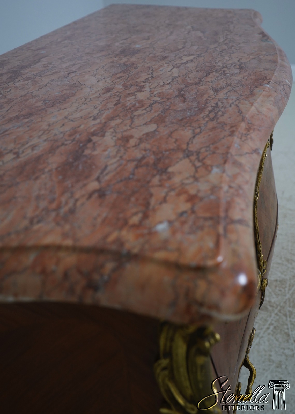 L72242: Vintage Louis XV Style Marquetry Bombe Marble Top Commode