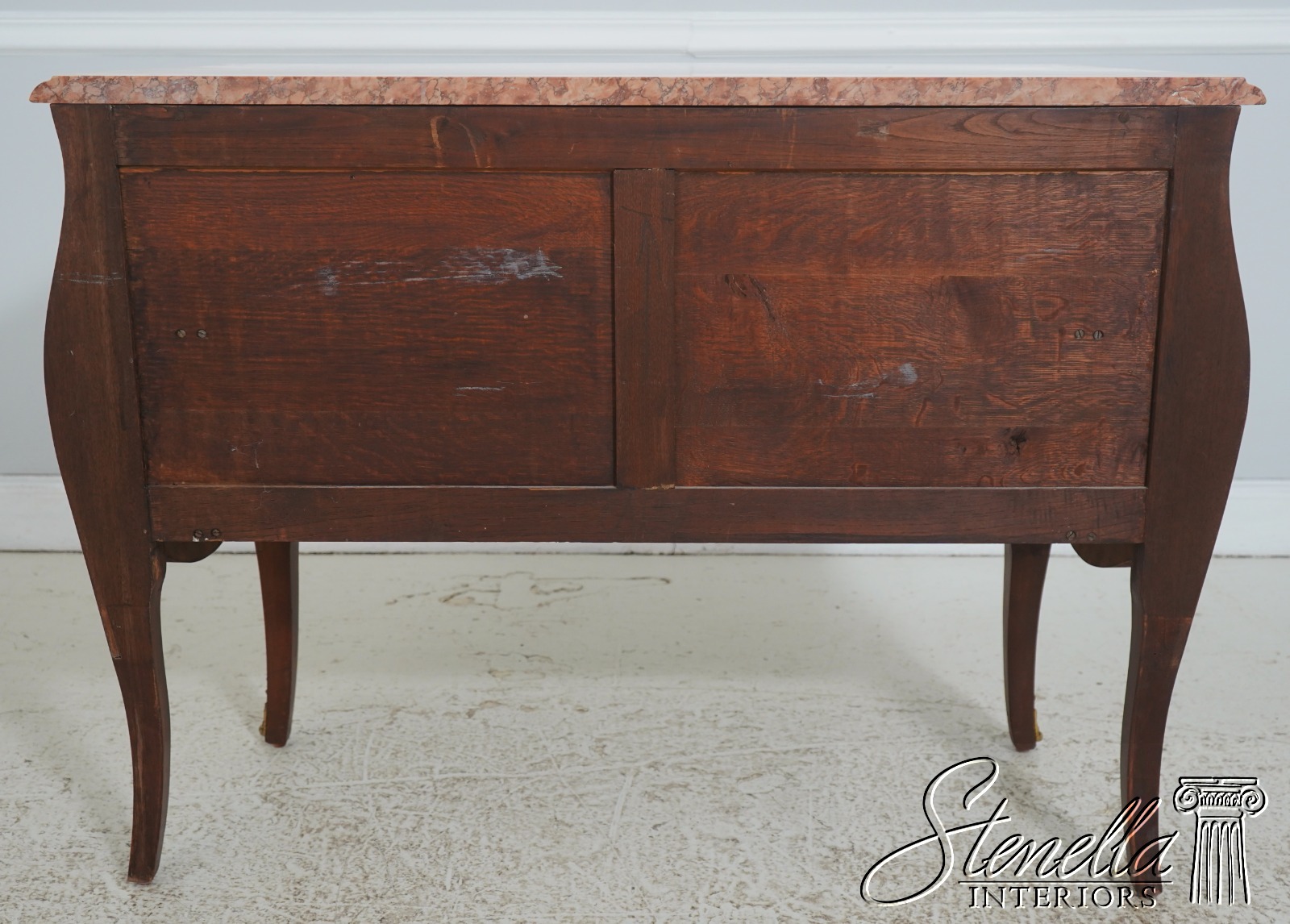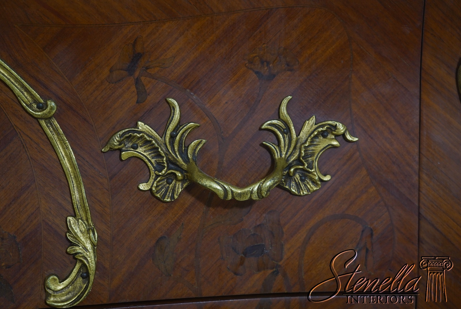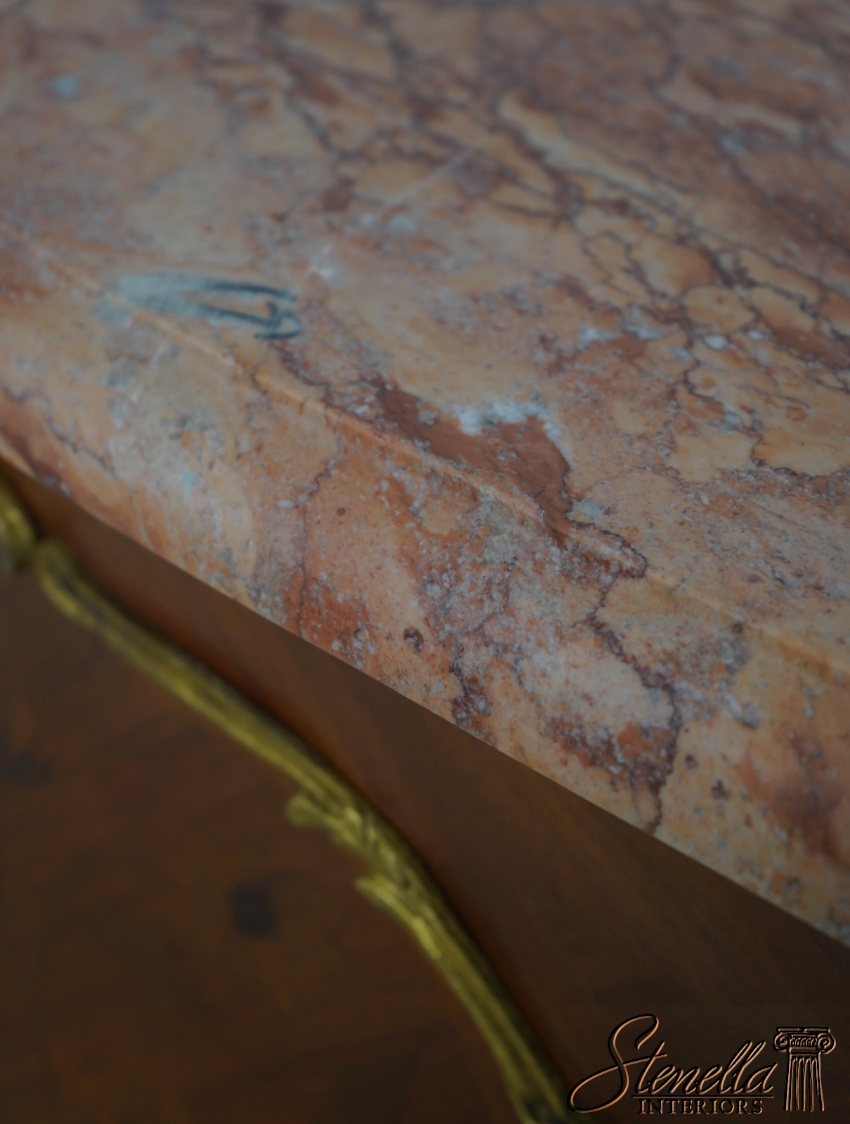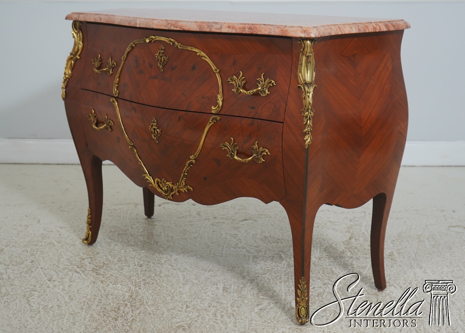 L72242: Vintage Louis XV Style Marquetry Bombe Marble Top Commode