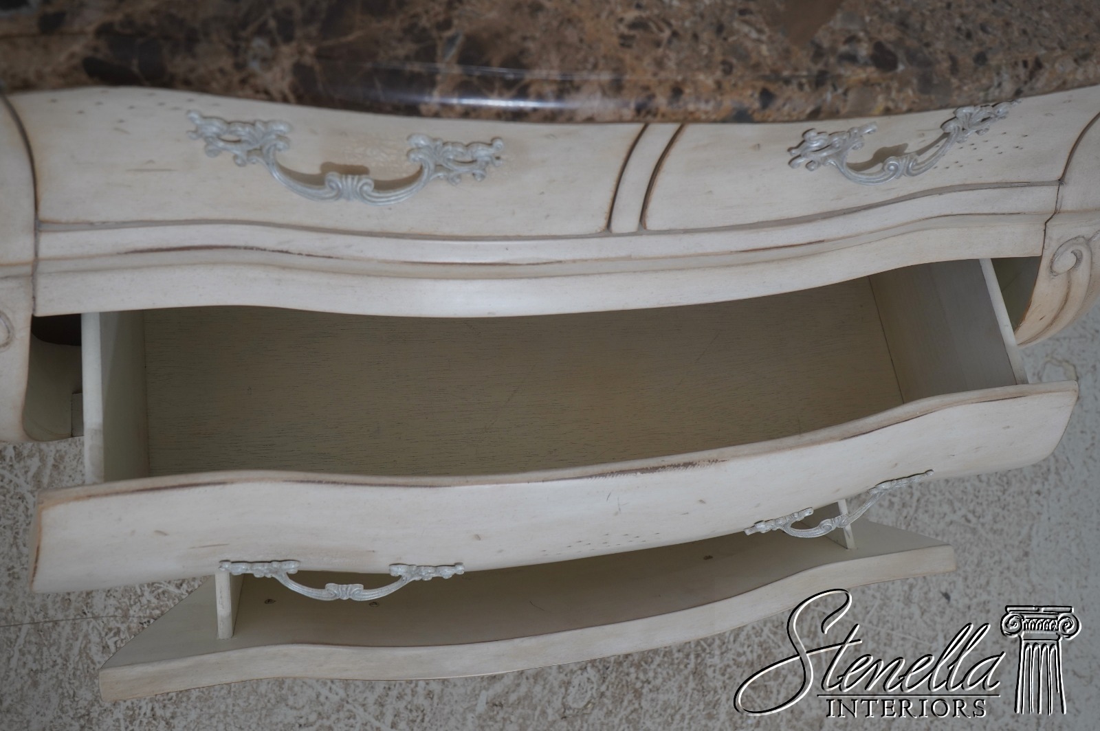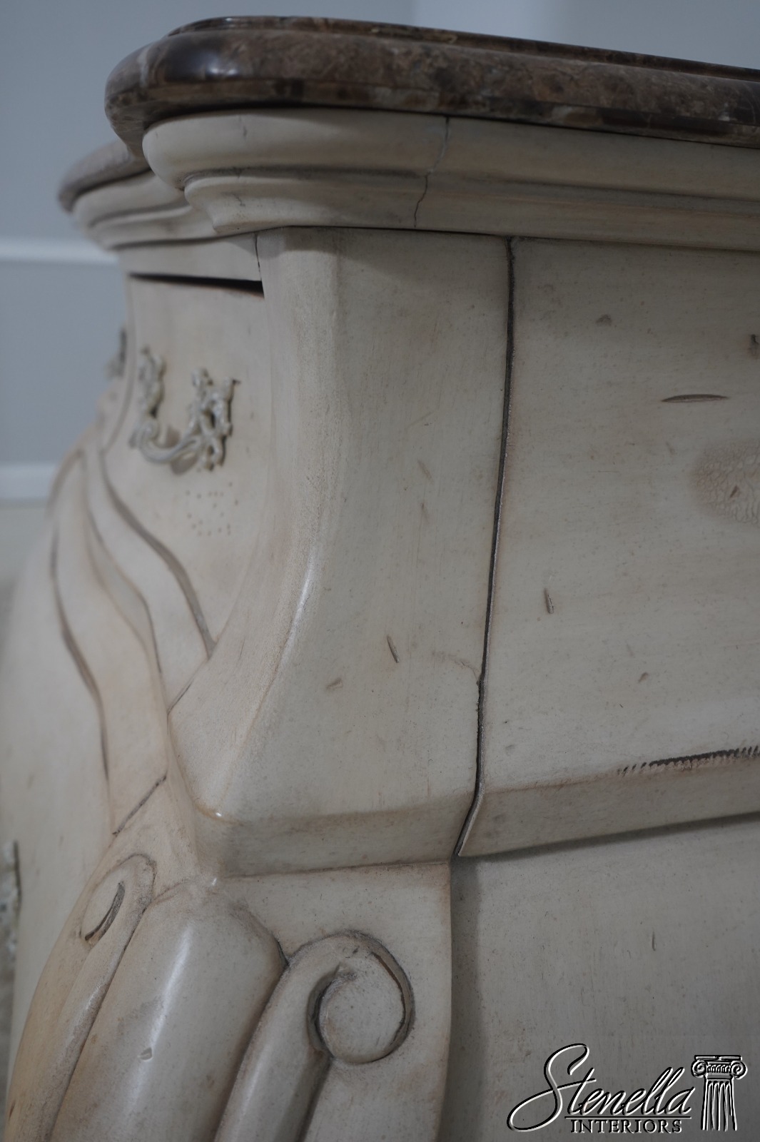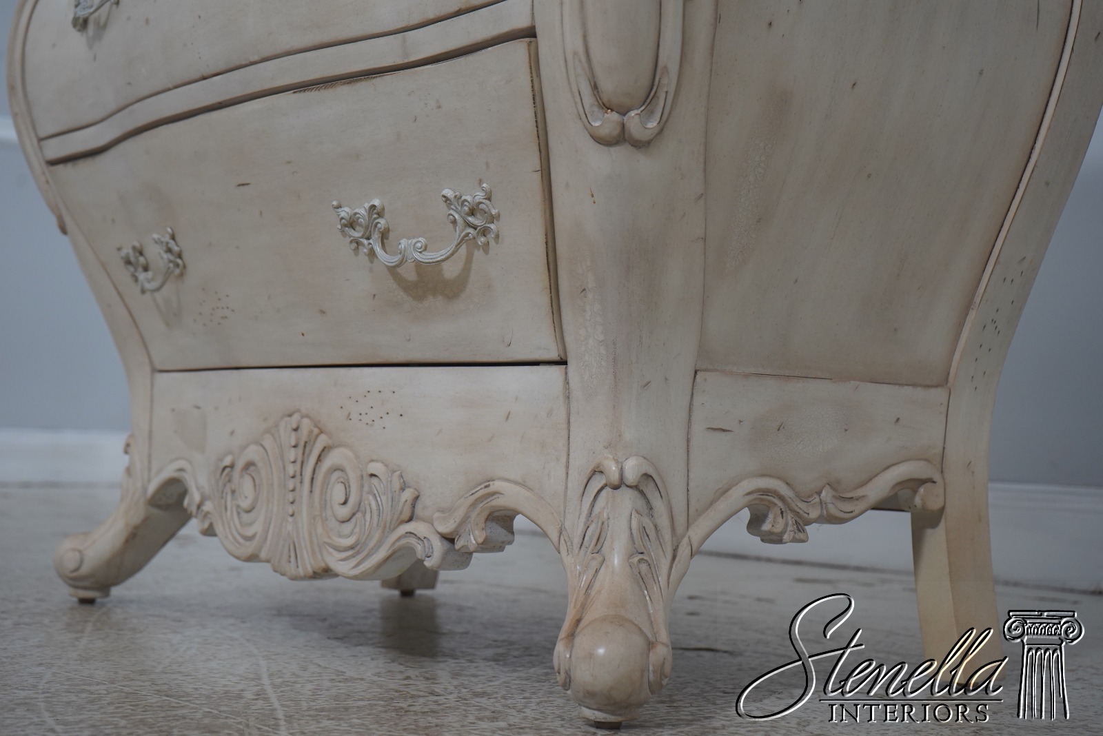 Details: Factory Distressed Italian Style Off White Finish Nice Carved Details