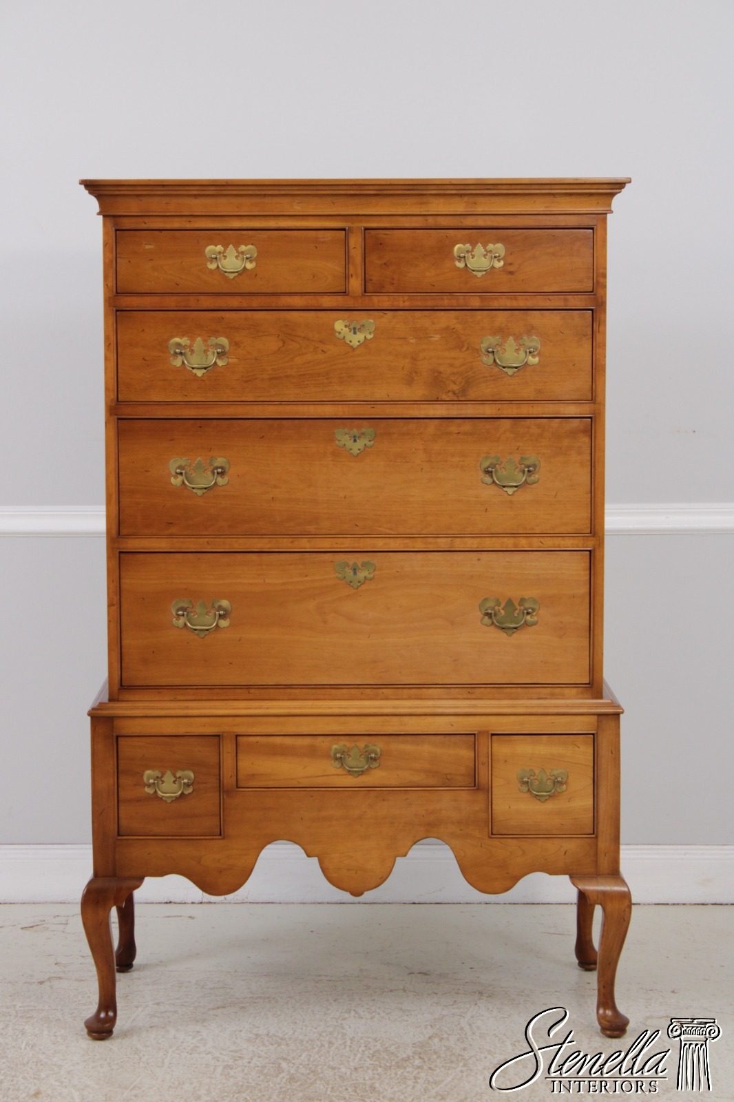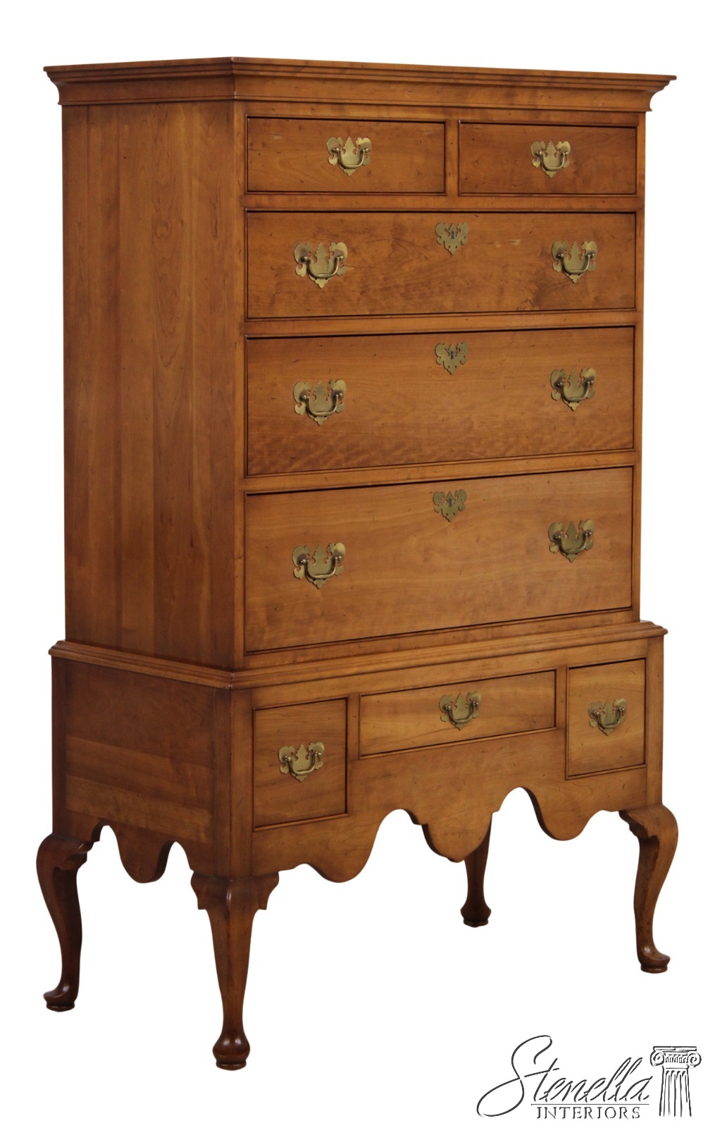 L72341: STICKLEY Cherry Queen Anne Flat Top Highboy Chest