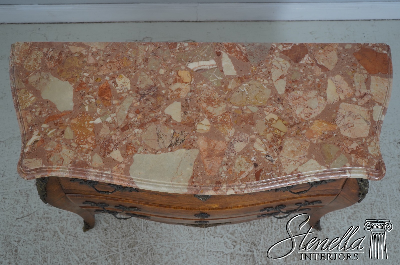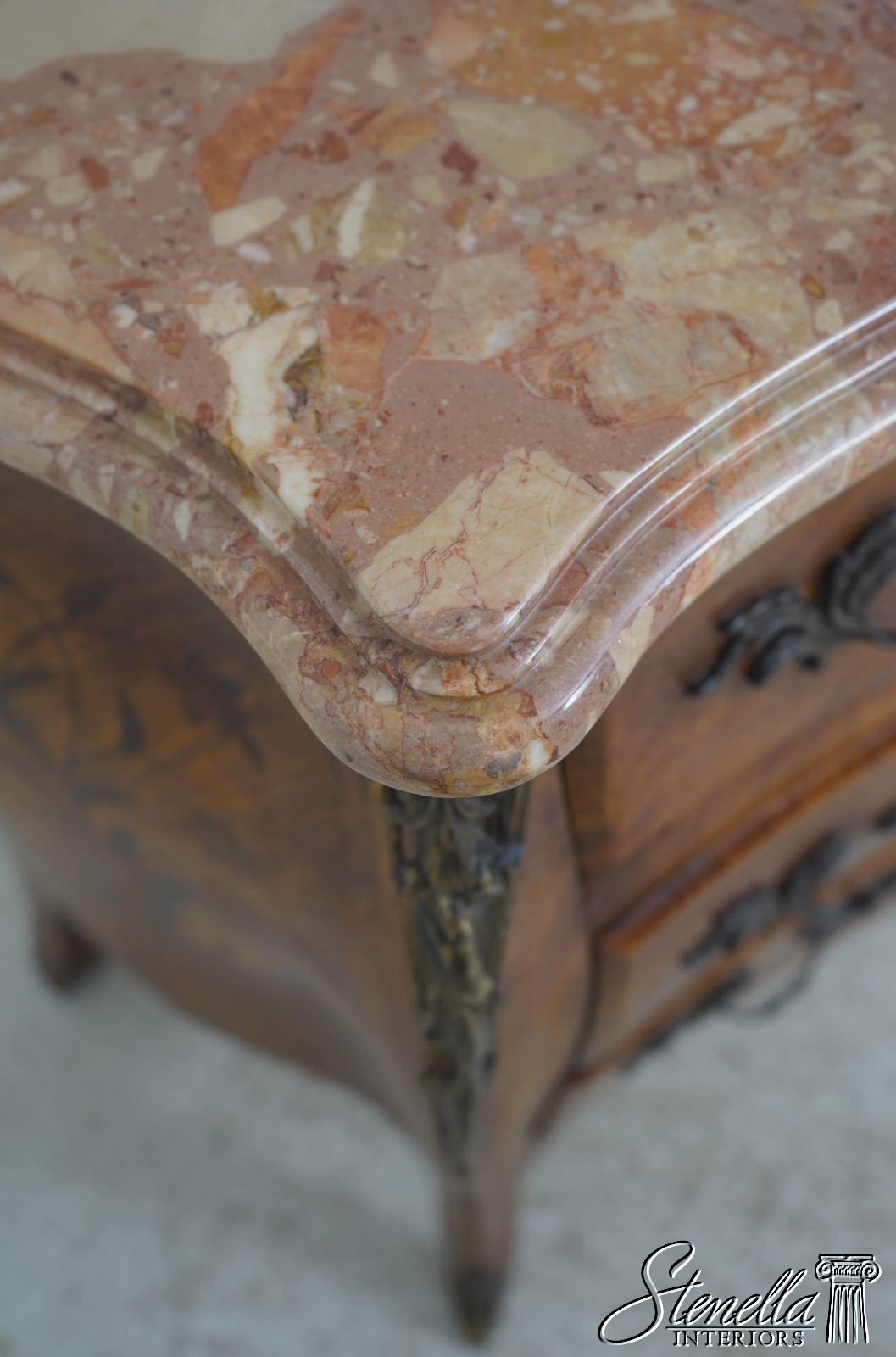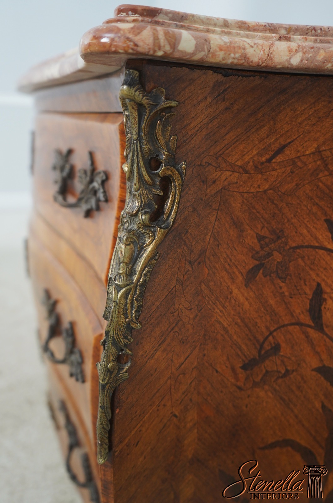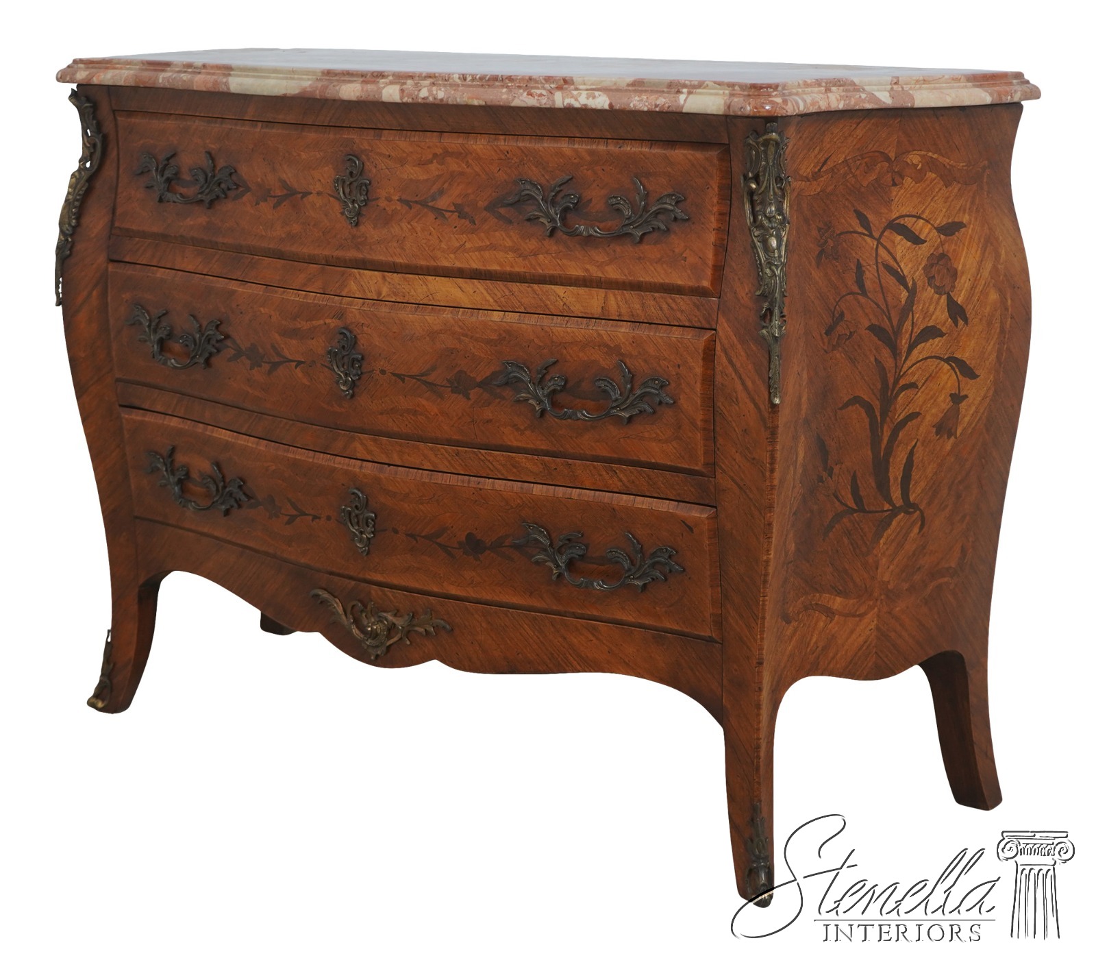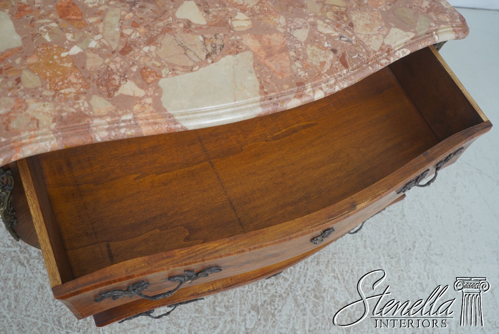 L72406: Vintage French Louis XV Style Bombe Marble Top Commode Chest