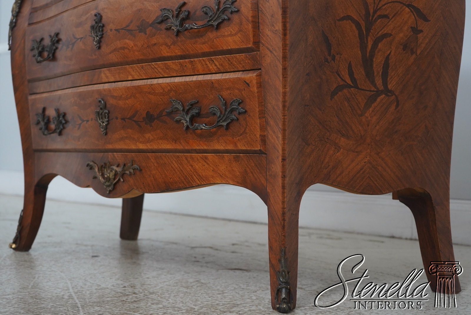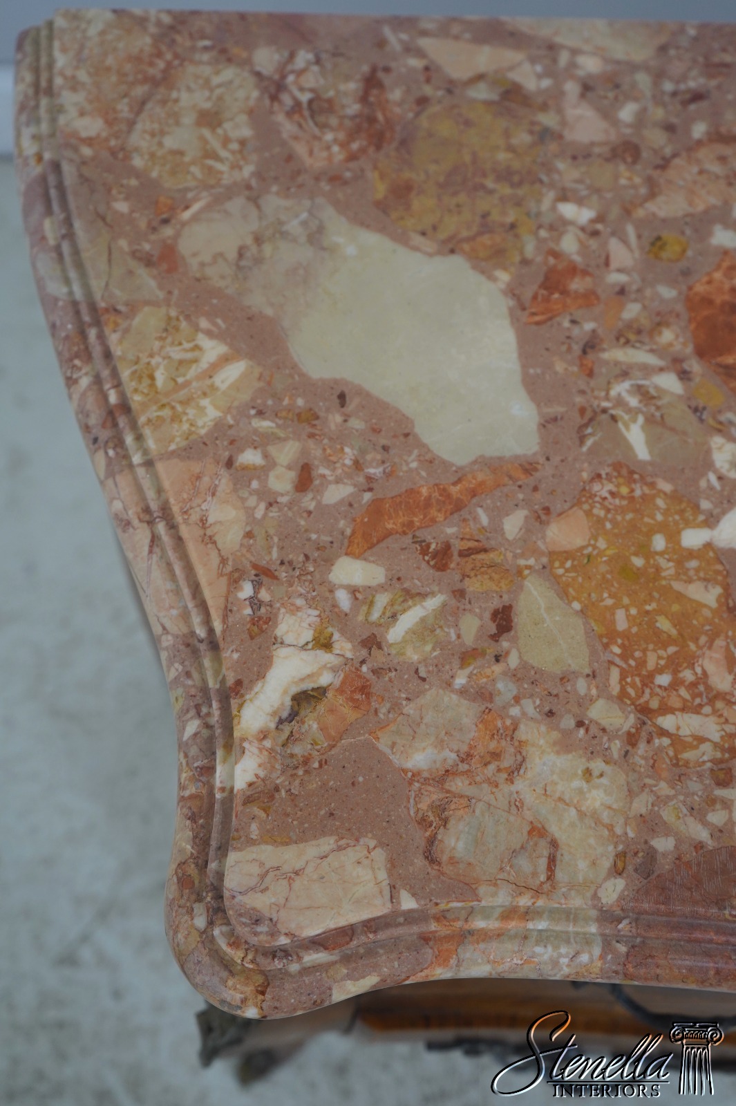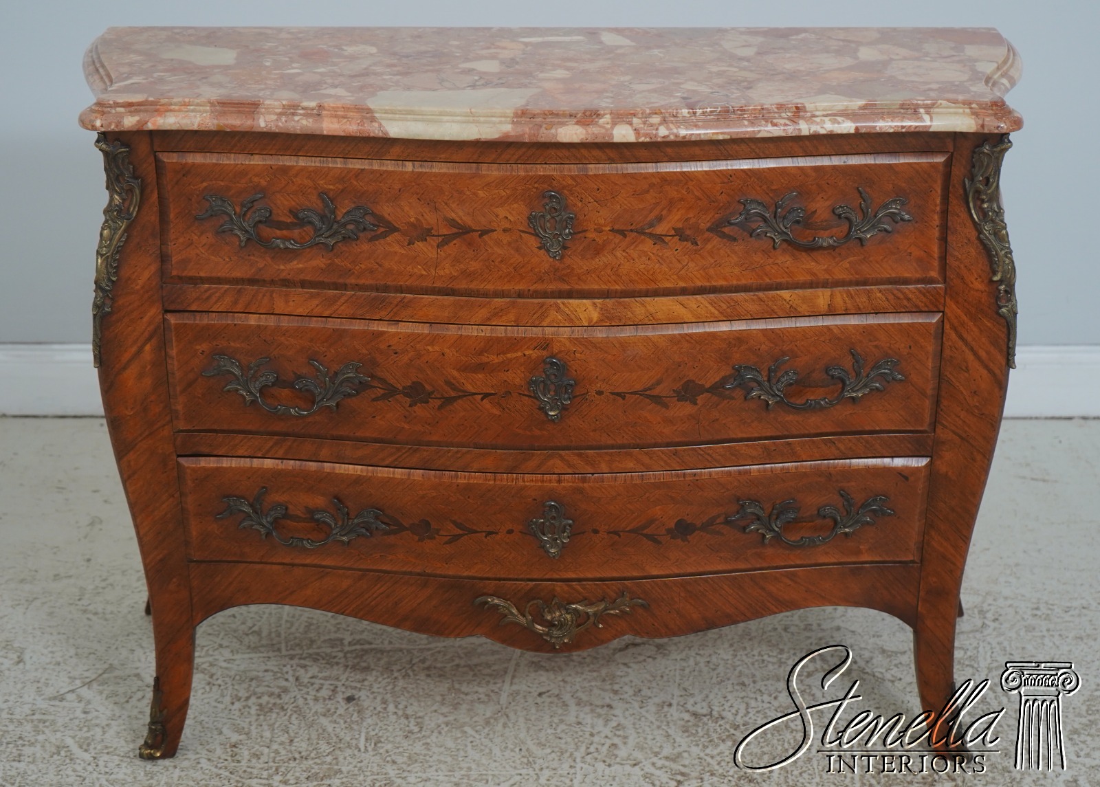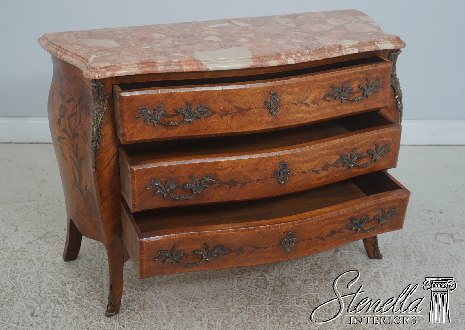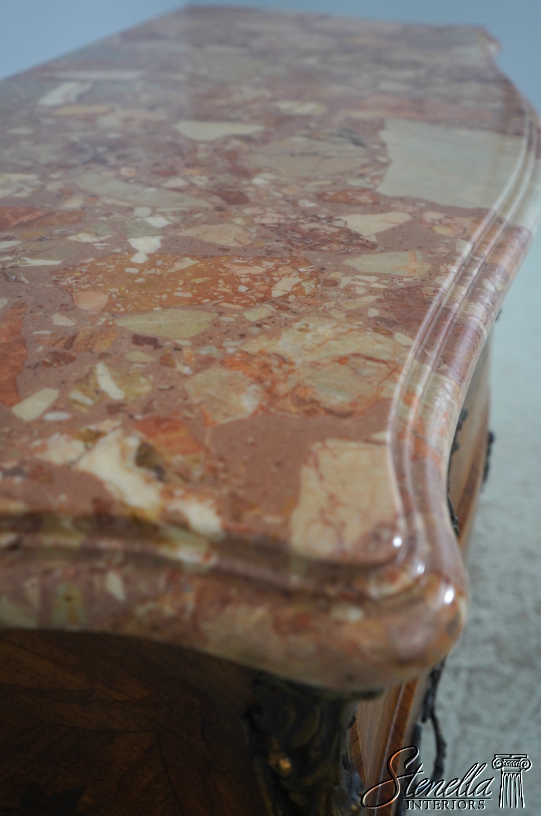 L72406: Vintage French Louis XV Style Bombe Marble Top Commode Chest