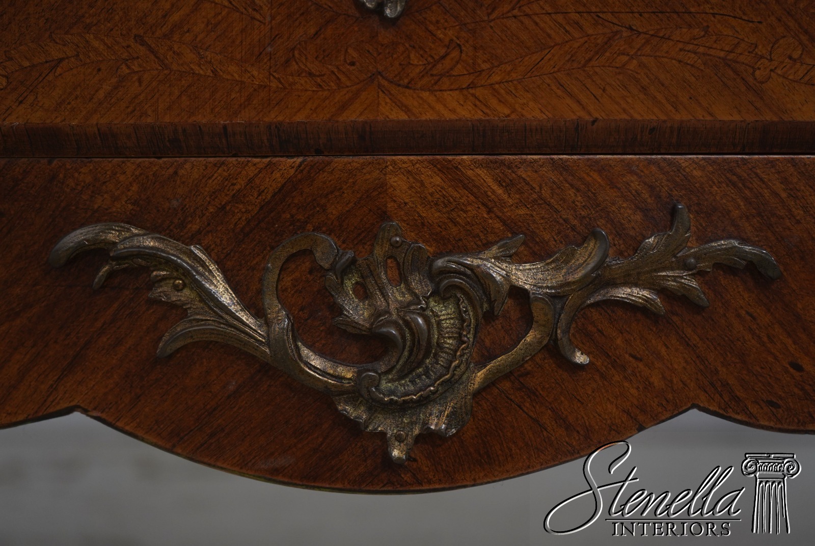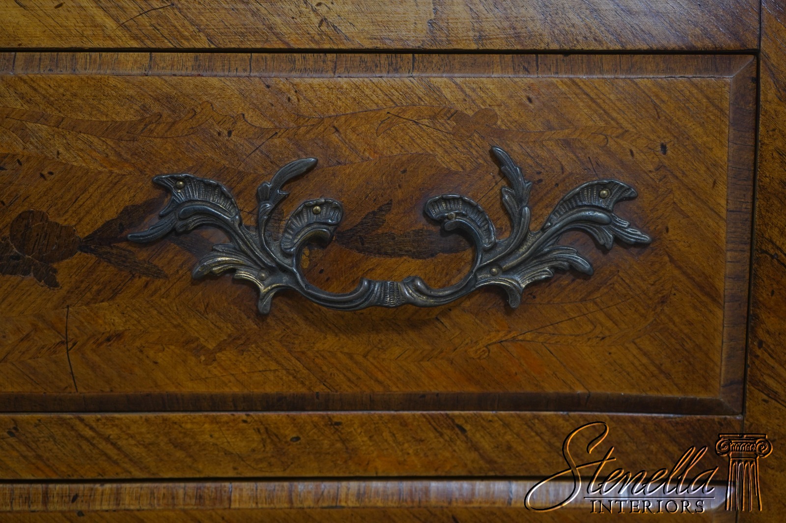 Details: Intentional Distressed Finish Walnut Dovetailed Drawer Construction High Quality Construction Nice Inlay Work Throughout Stunning Marble Top Faux Keyplates Solid Brass Hardware Marble Comes Off Bronze Mounted Ormolu Un-Marked As To Manufacture Offered @ Fraction Original Retail Cost