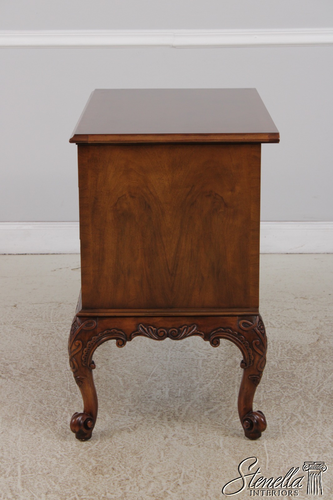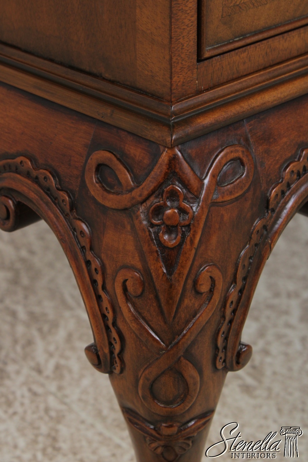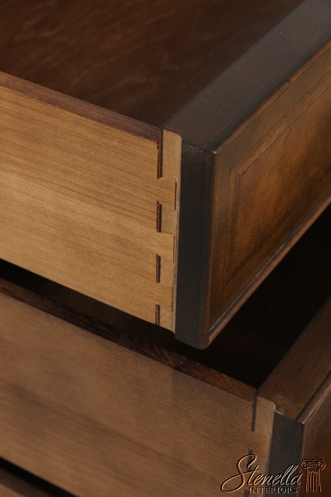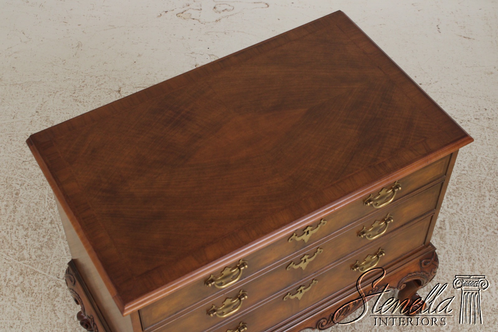 Details: Stately Homes Collection Fine Carved Details High Quality Construction Herringbone Inlaid Work Stunning Brown Walnut Finish Key Lock Drawers Offered @ Fraction Original Retail Cost