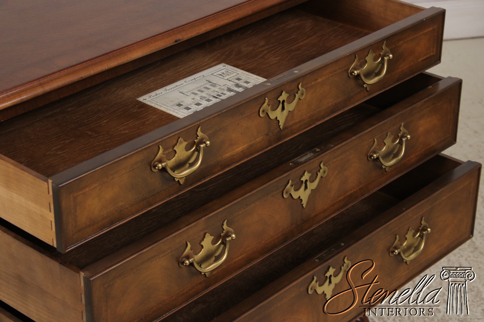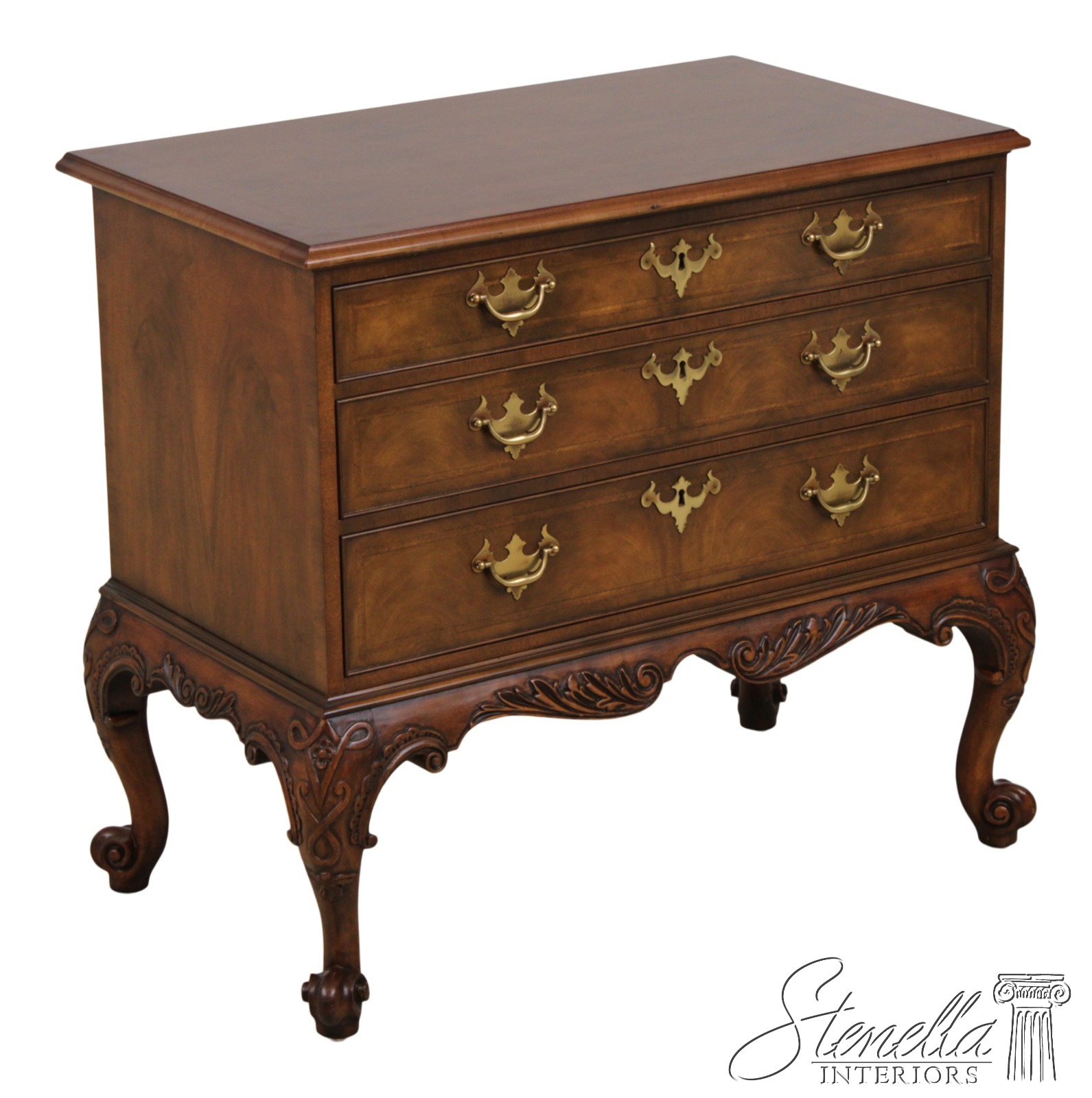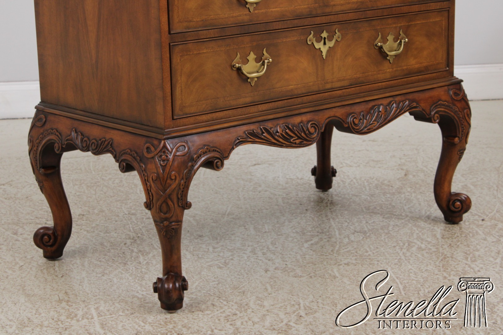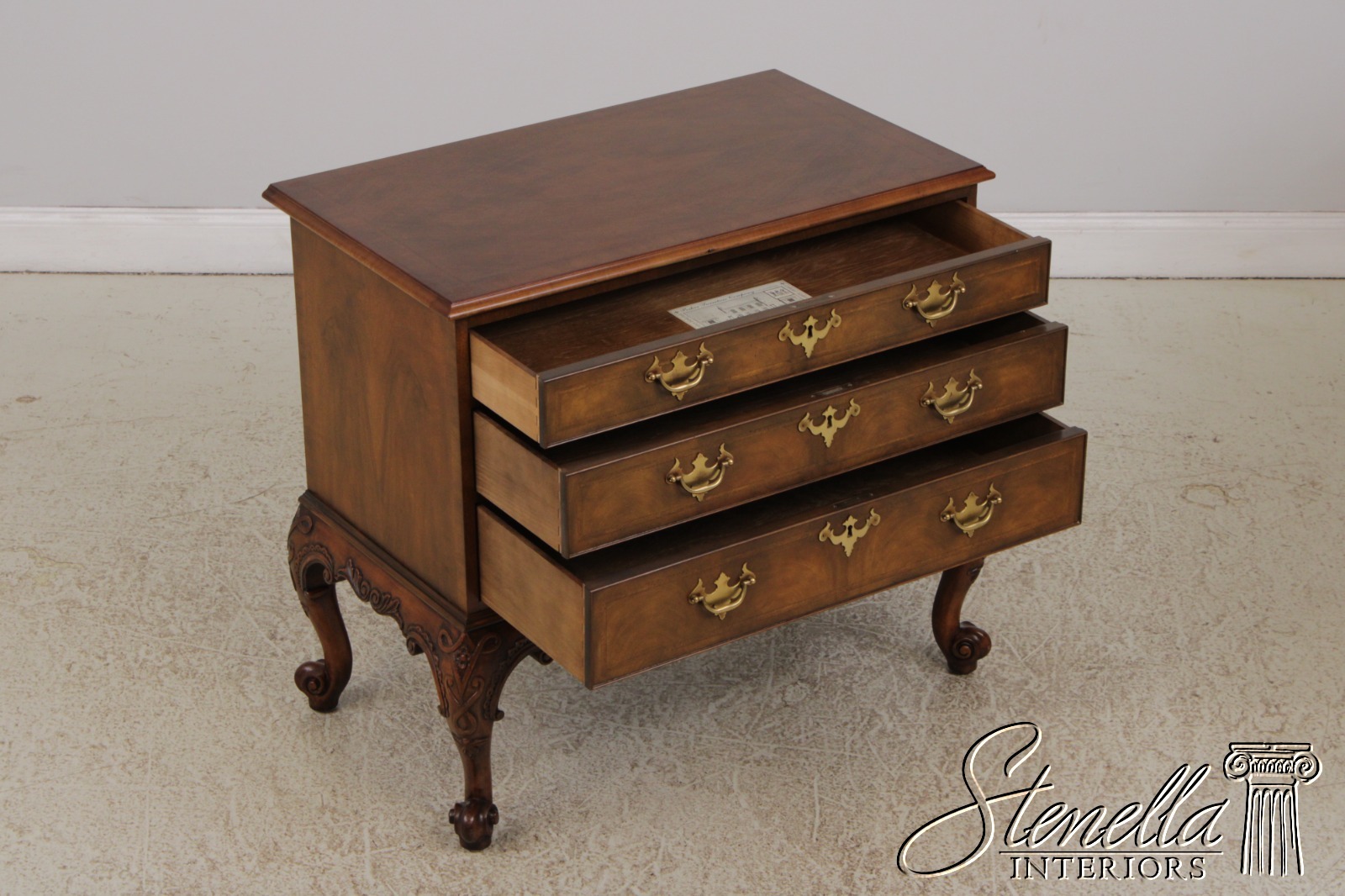 Details: Stately Homes Collection Fine Carved Details High Quality Construction Herringbone Inlaid Work Stunning Brown Walnut Finish Key Lock Drawers Offered @ Fraction Original Retail Cost