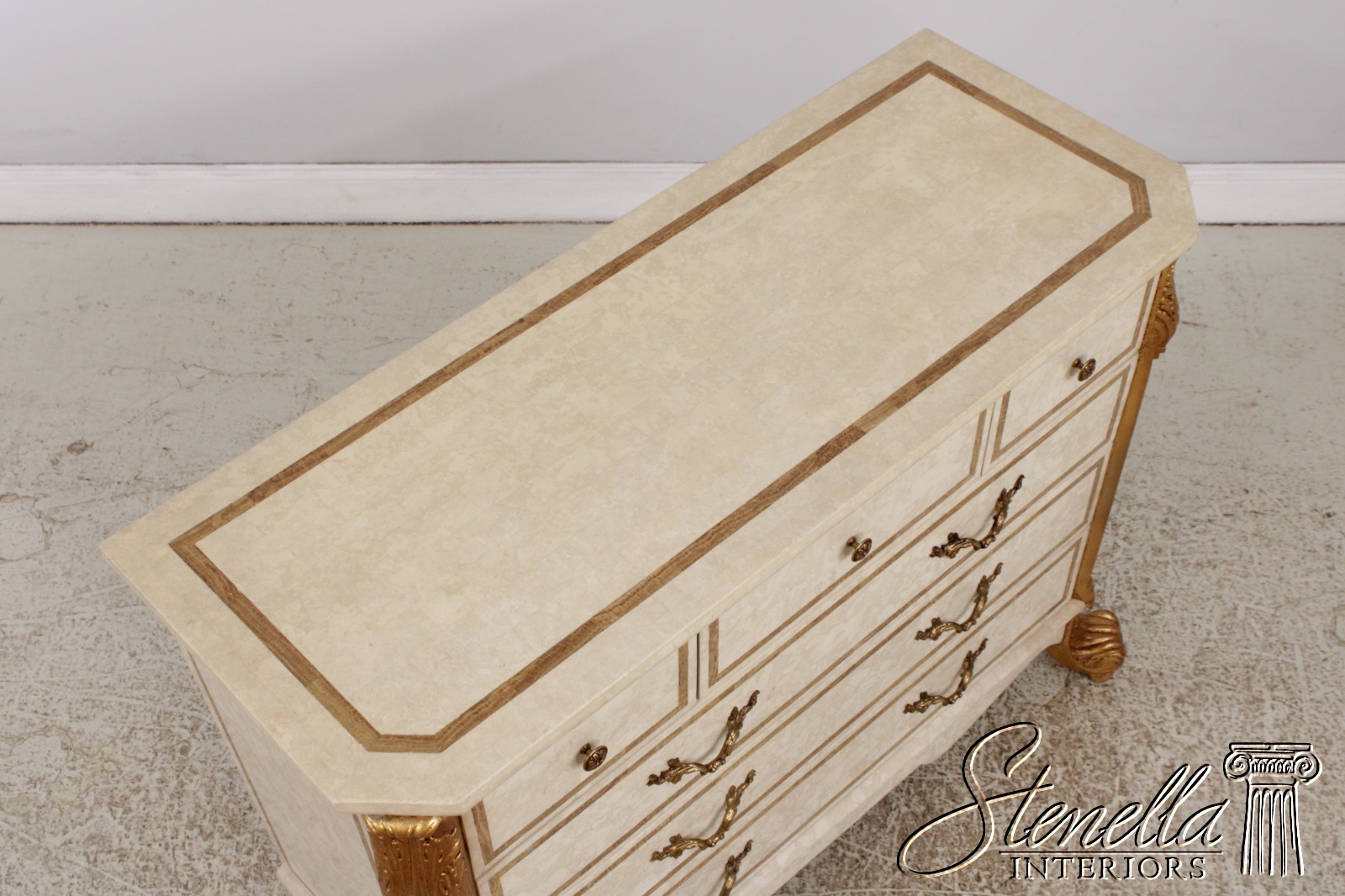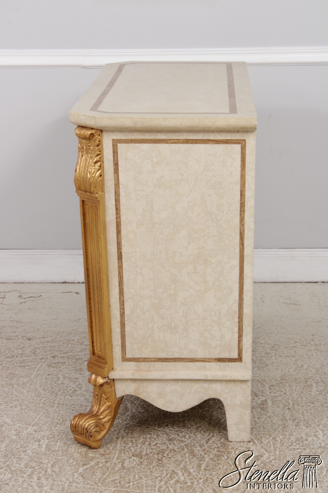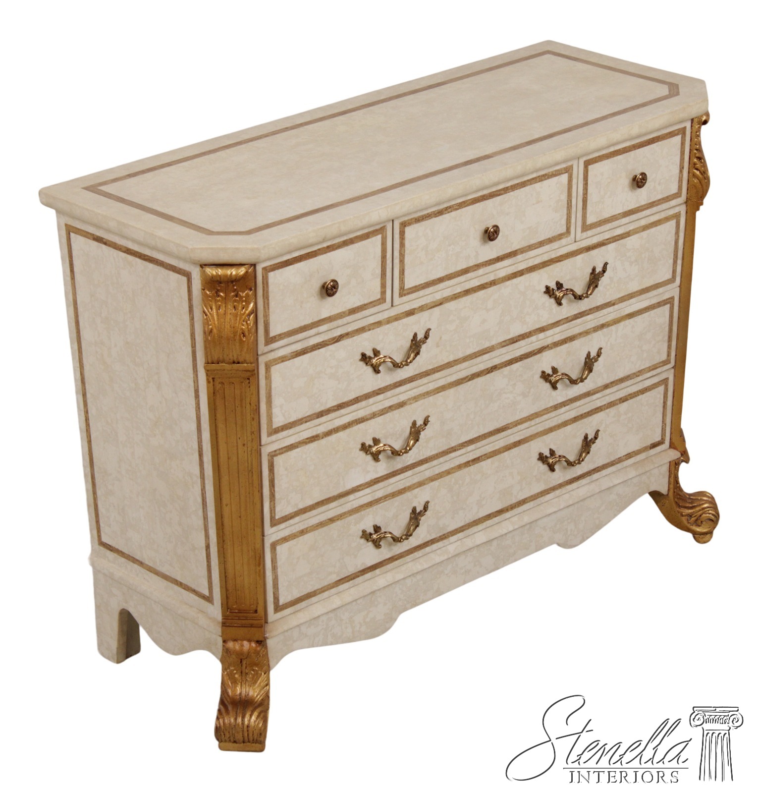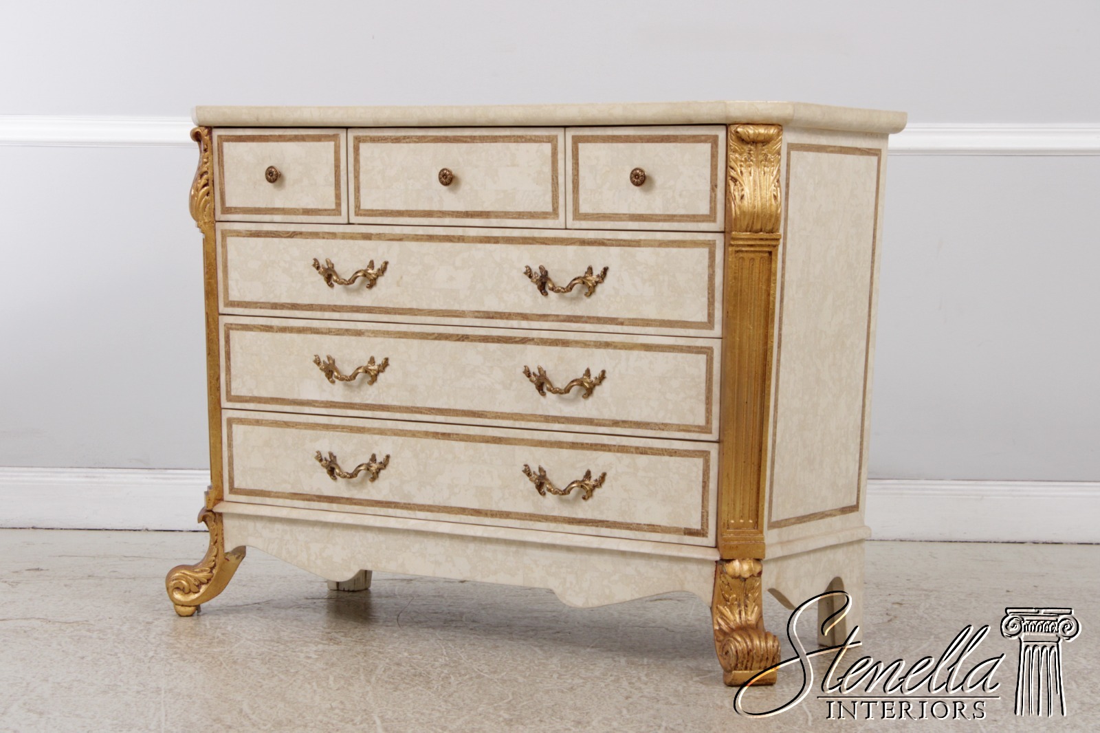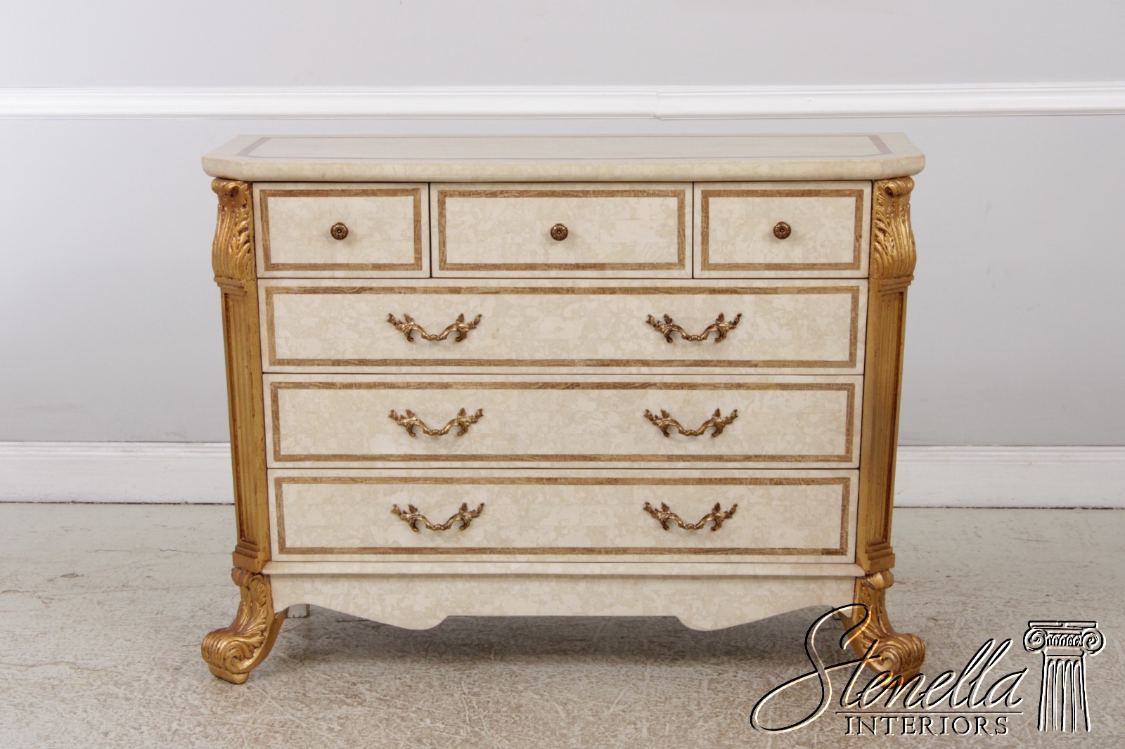 L72690: Neoclassical Tessallated Stone Top French Provincial Commode Dresser