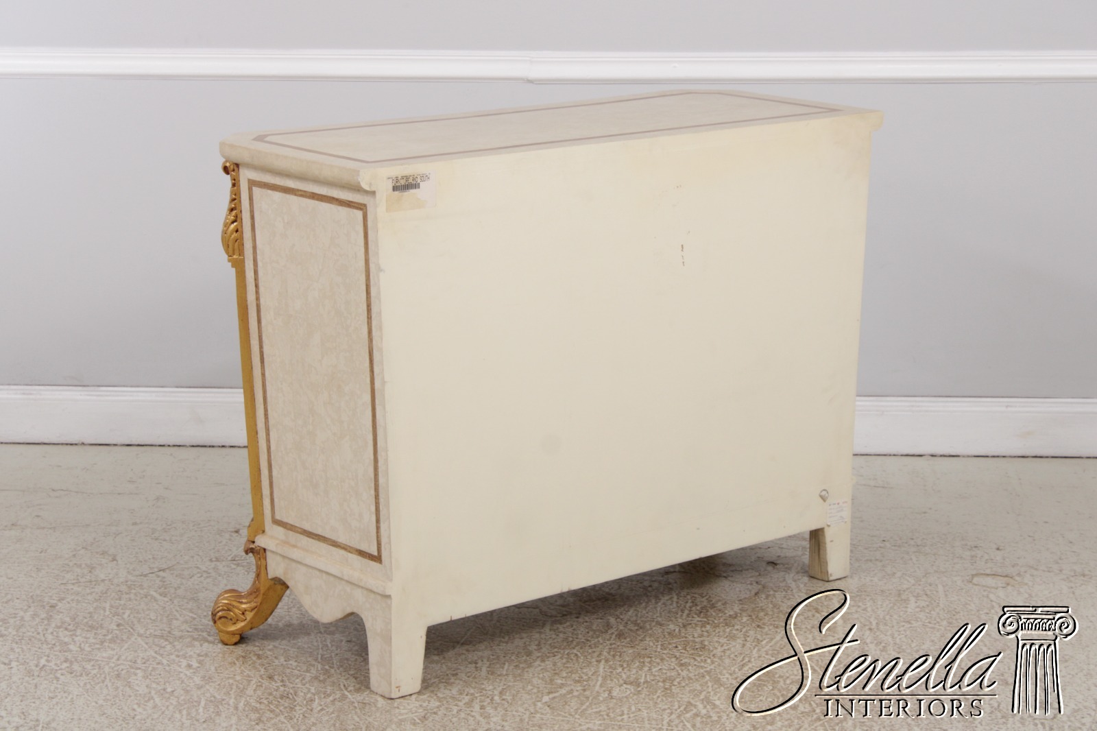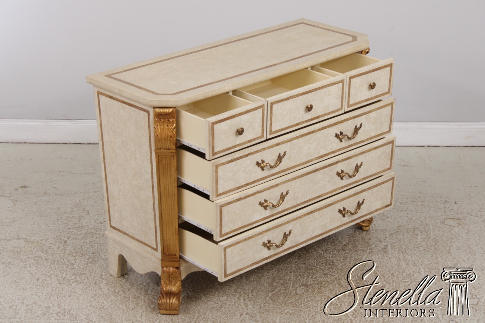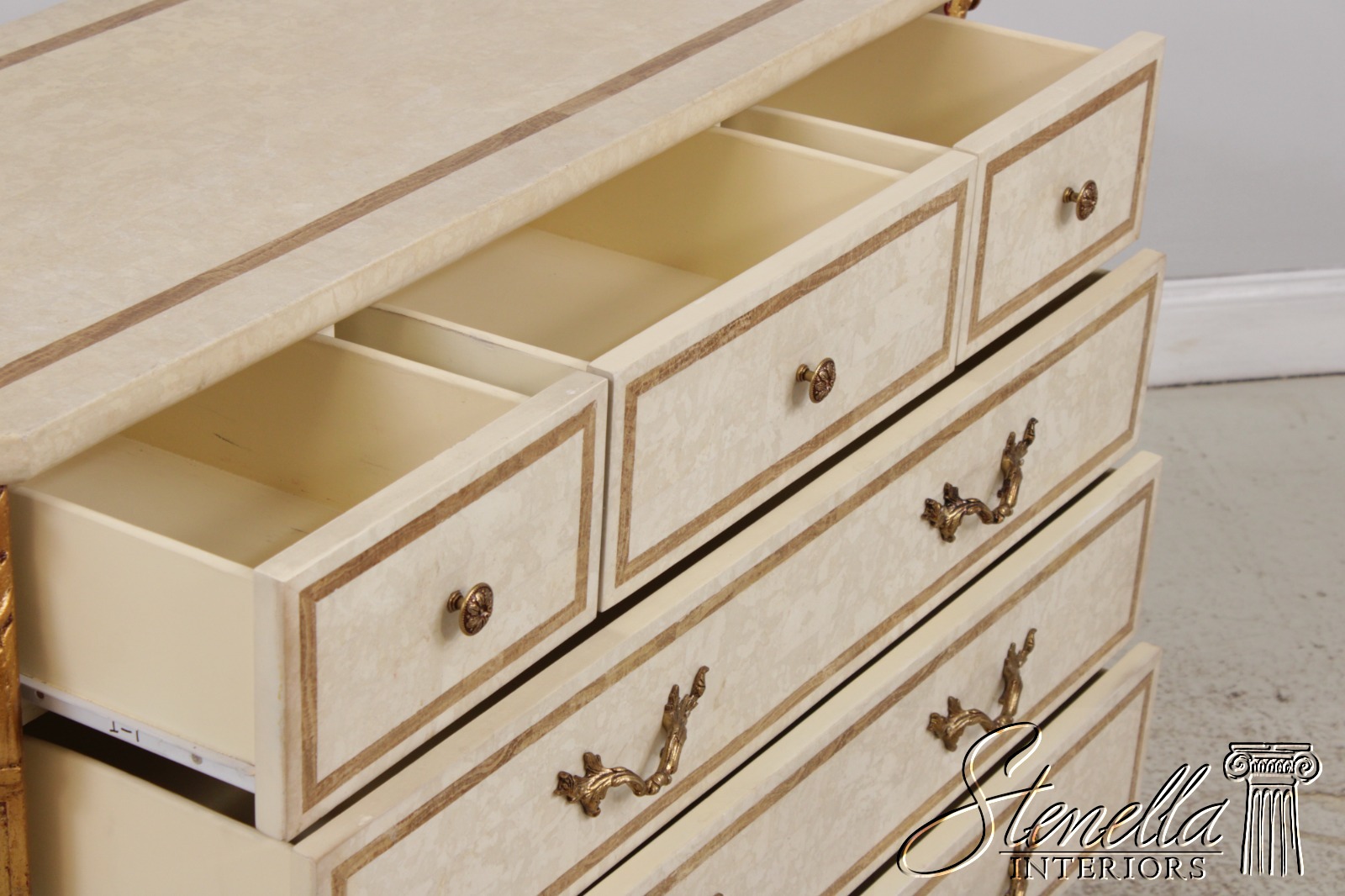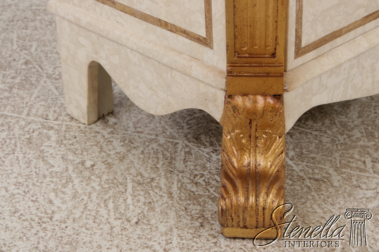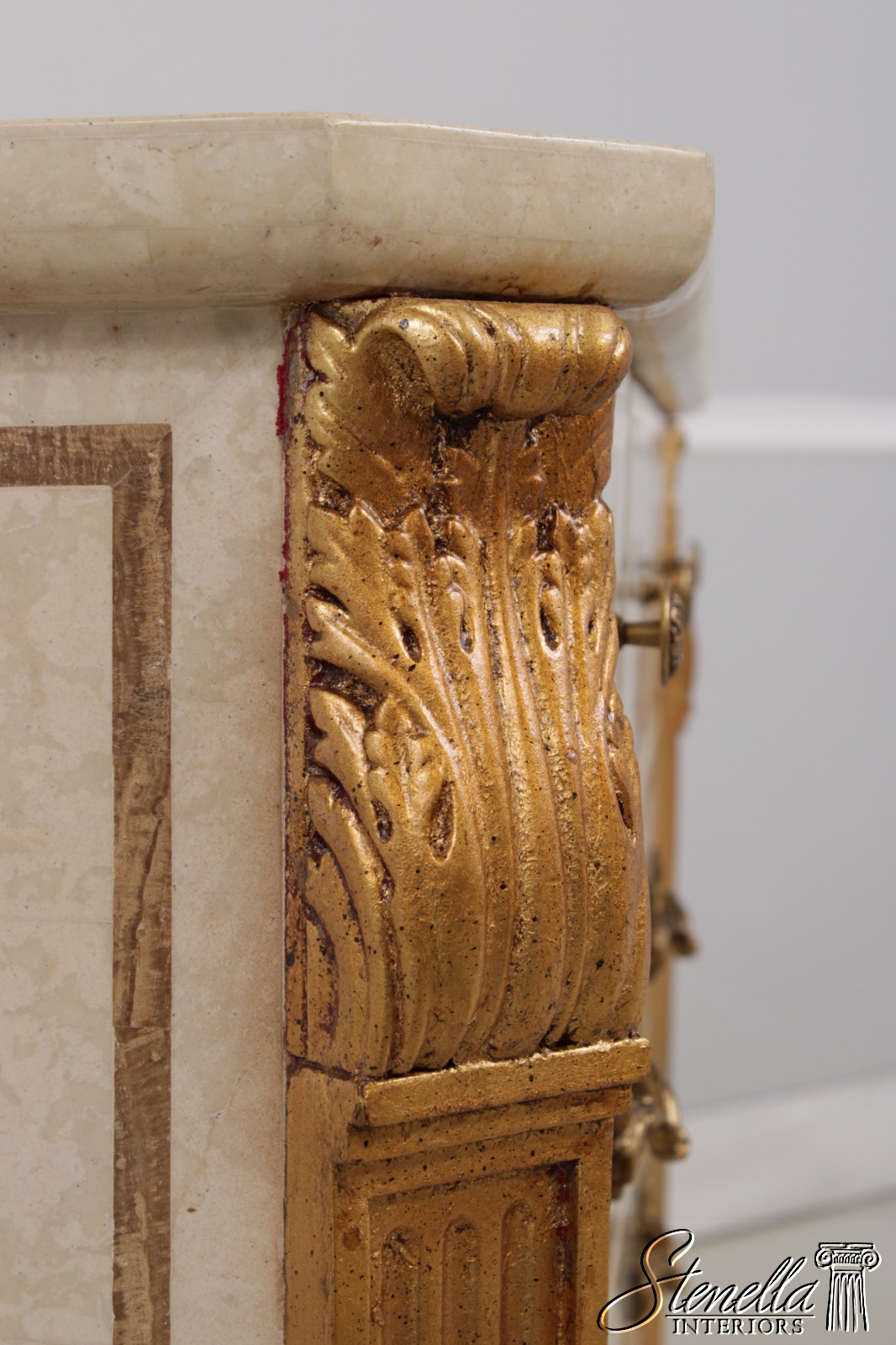 L72690: Neoclassical Tessallated Stone Top French Provincial Commode Dresser