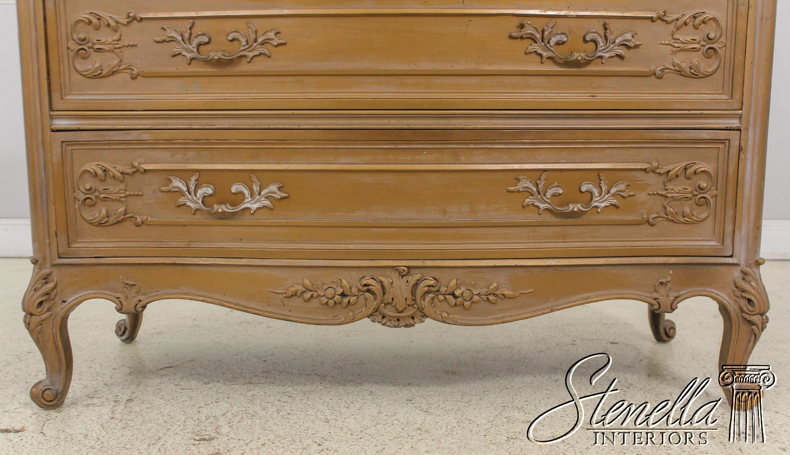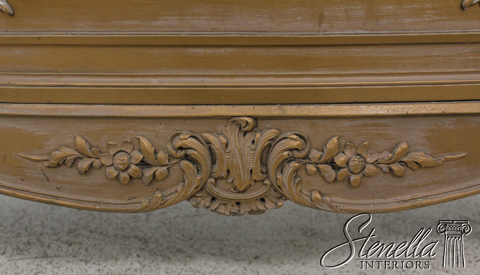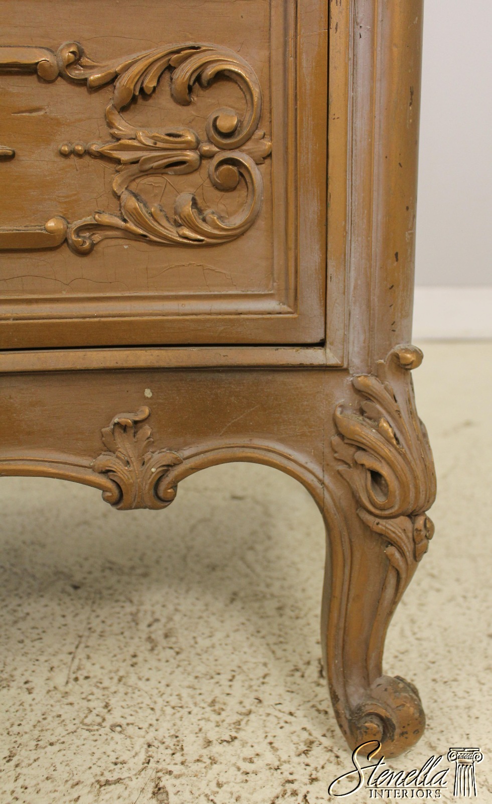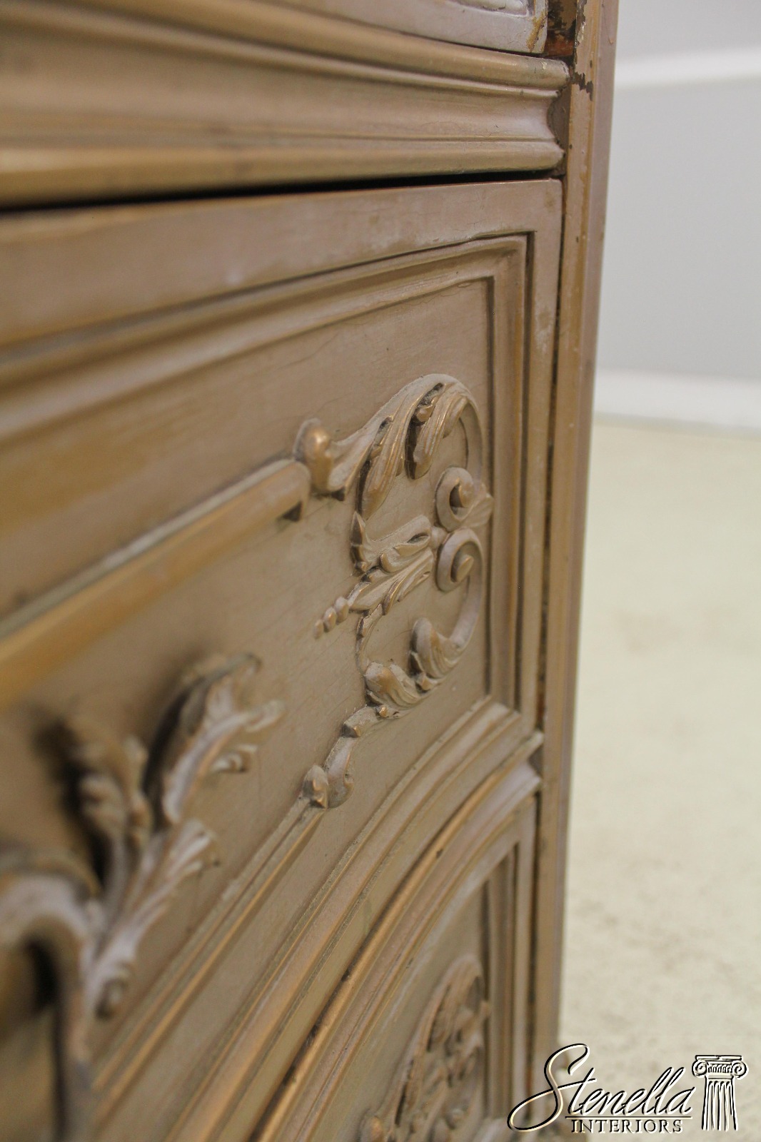 Details: Dovetailed Drawer Construction Fine Carved Details French Style Gorgeous Rose Color Marble Top w. Beveled Edge Gold Finish Antique Distressed Finish Nice Stylish Vintage Chest