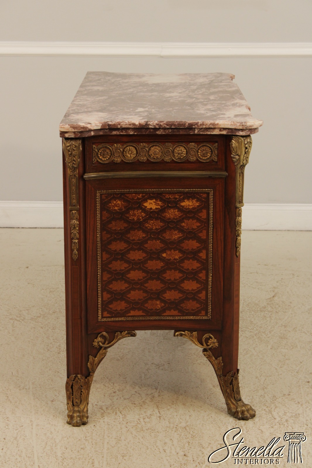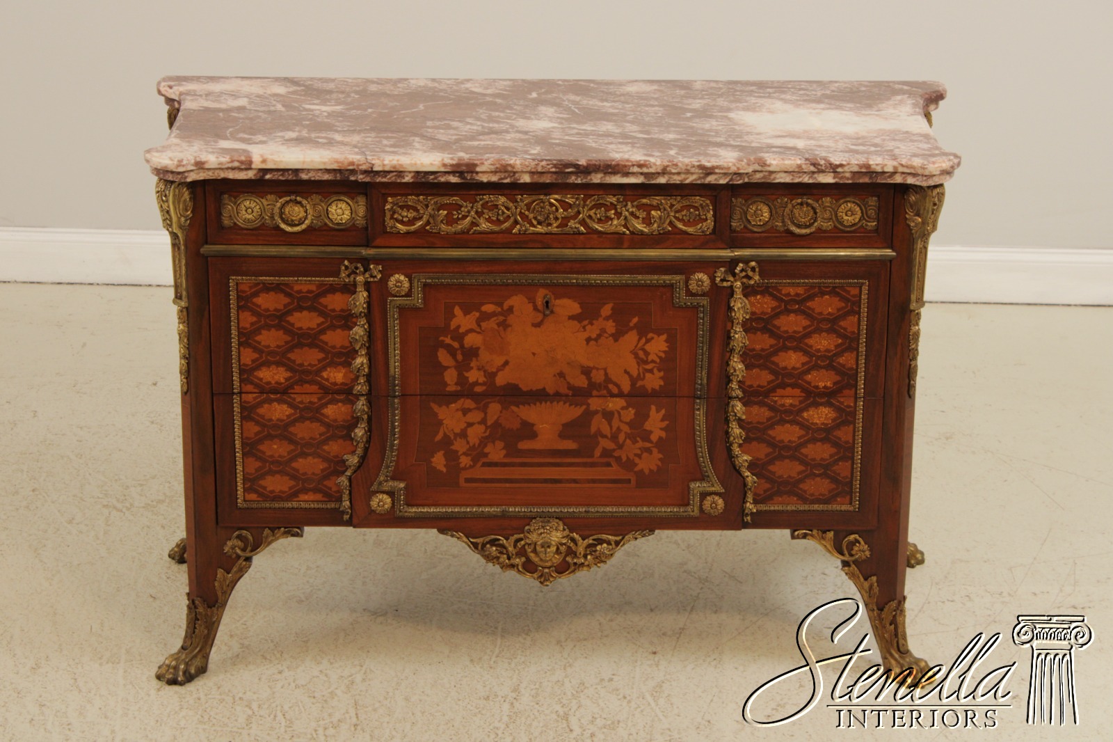 Details: Oak Secondary Drawer Construction Dovetailed Drawer Construction Stunning Marble Top Stunning Bronze Or Brass Ormolu Trimwork Ornate Paw Feet French Louis XV Style