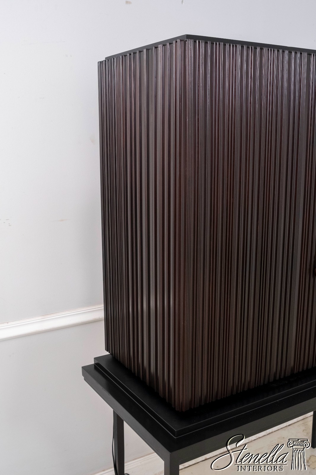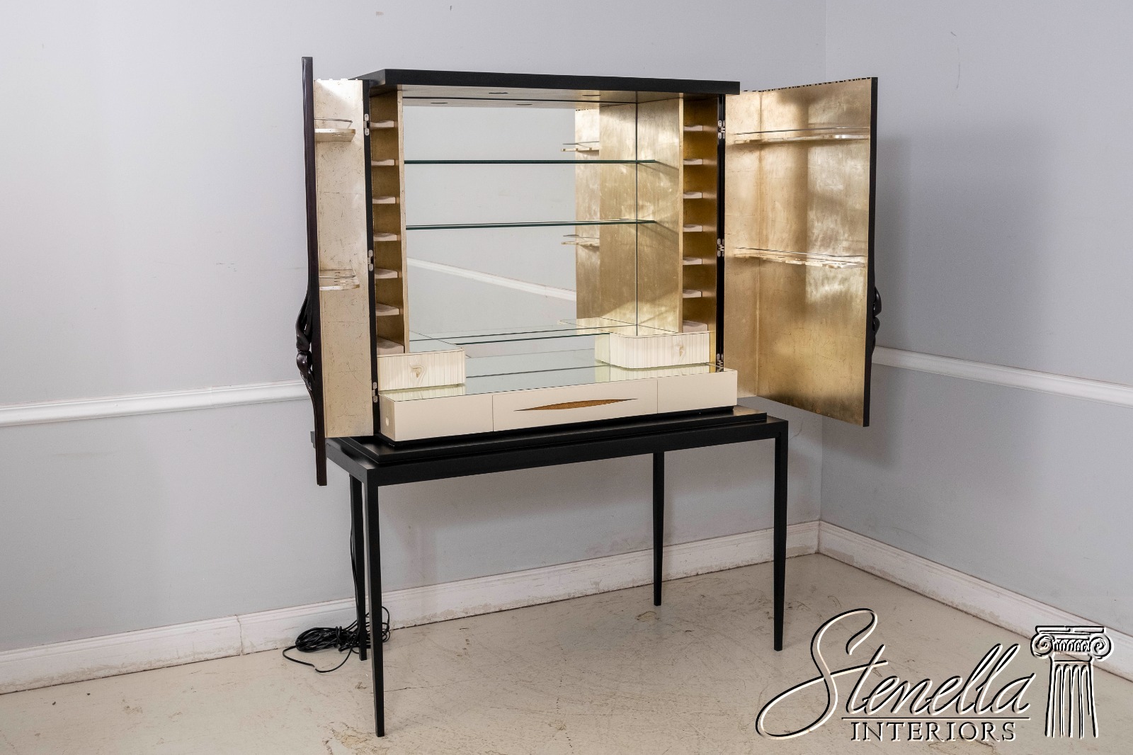 Details: Chez Harrods Collection 2 Piece Construction High Quality Construction Lighted Interior Reeded Frontage Exceptional Fine Details & Craftsmanship Bronze Finish Iron Base Christopher Guy Intricately Carved Handles Felt Lined Interior Dark Mahogany Finish top Offered @ Fraction Original Retail Cost - As Shown Over $23,000 New!