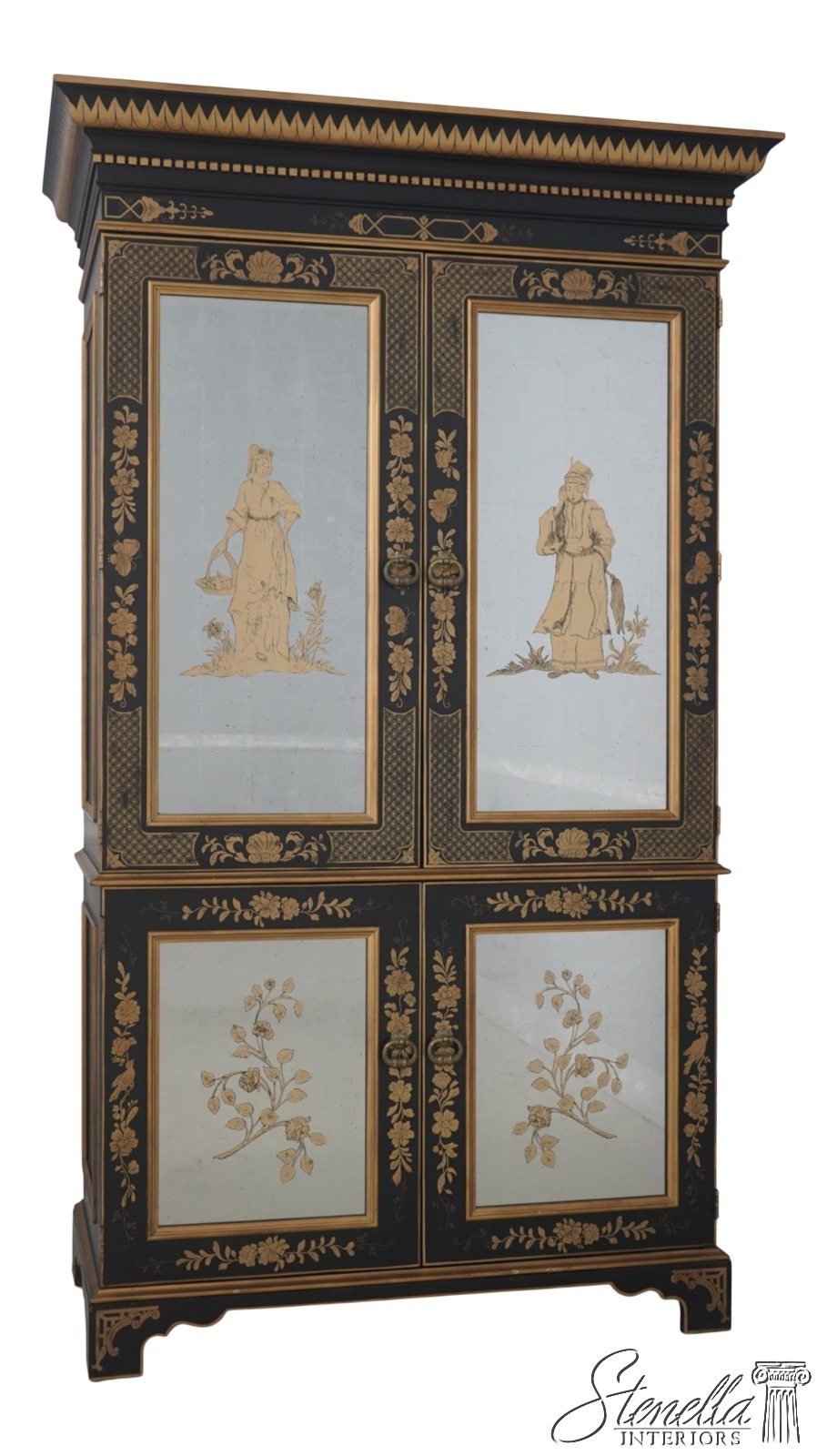 70937: EJ VICTOR Chinoiserie Eglomise Mirror Door Bar Cabinet