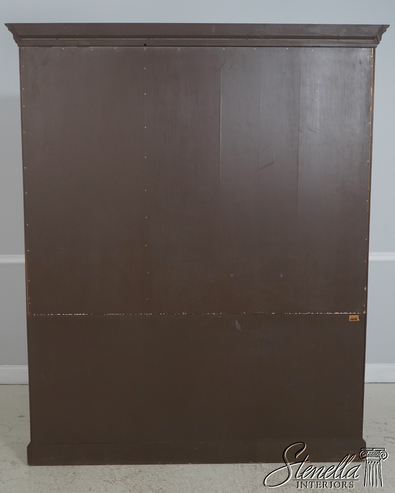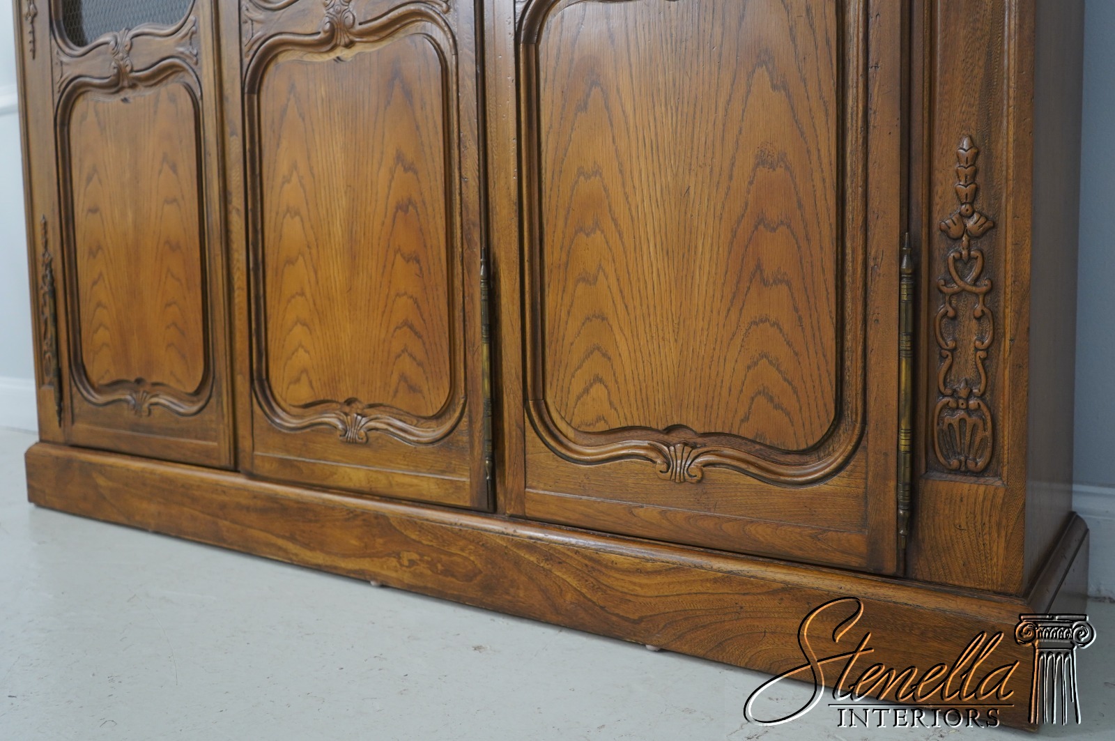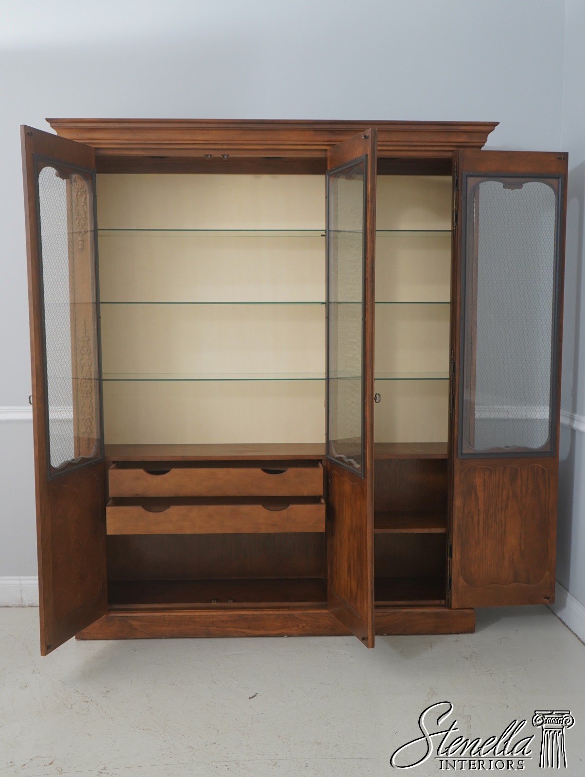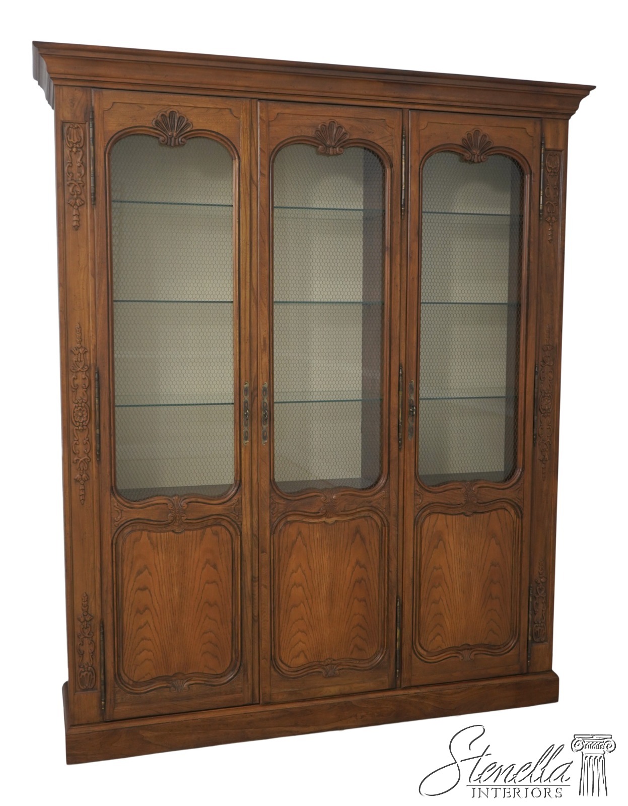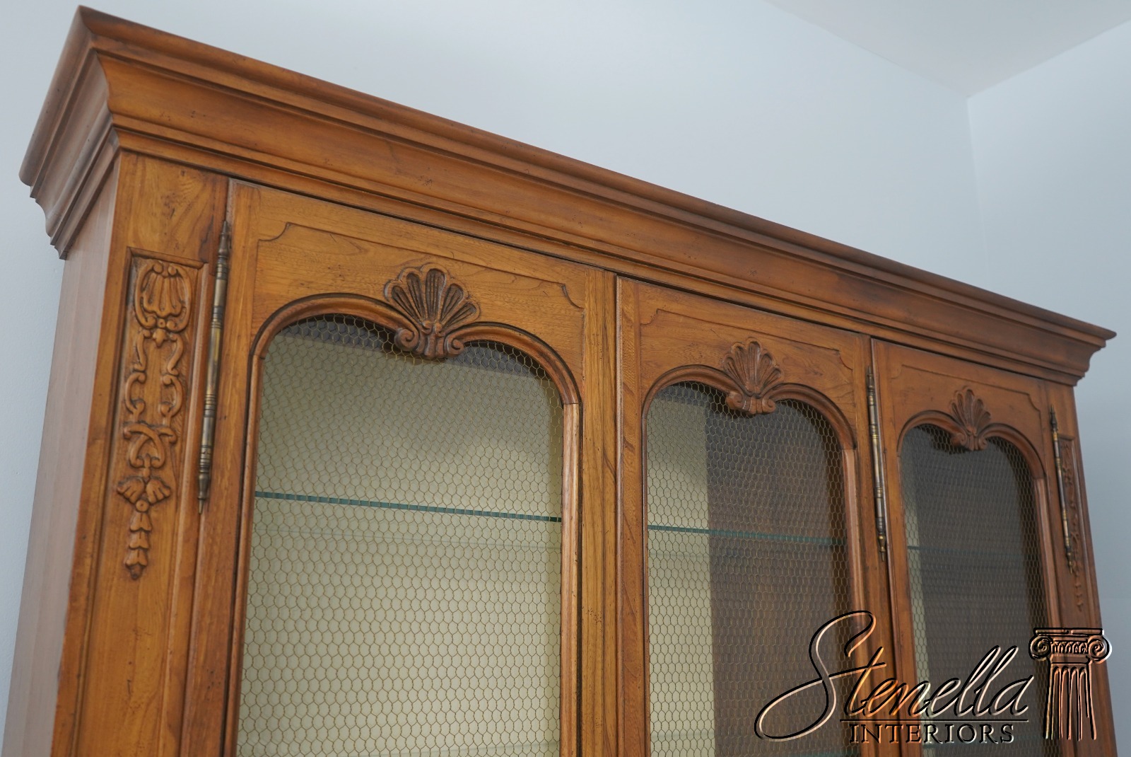 Details: Glass Adjustable Shelves Country French Style Dovetailed Drawer Construction Large Impressive Cabinet Lighted Interior Wire Mesh Doors Over Glass Felt Lined Silverware Drawer Paint Decorated Back Panel