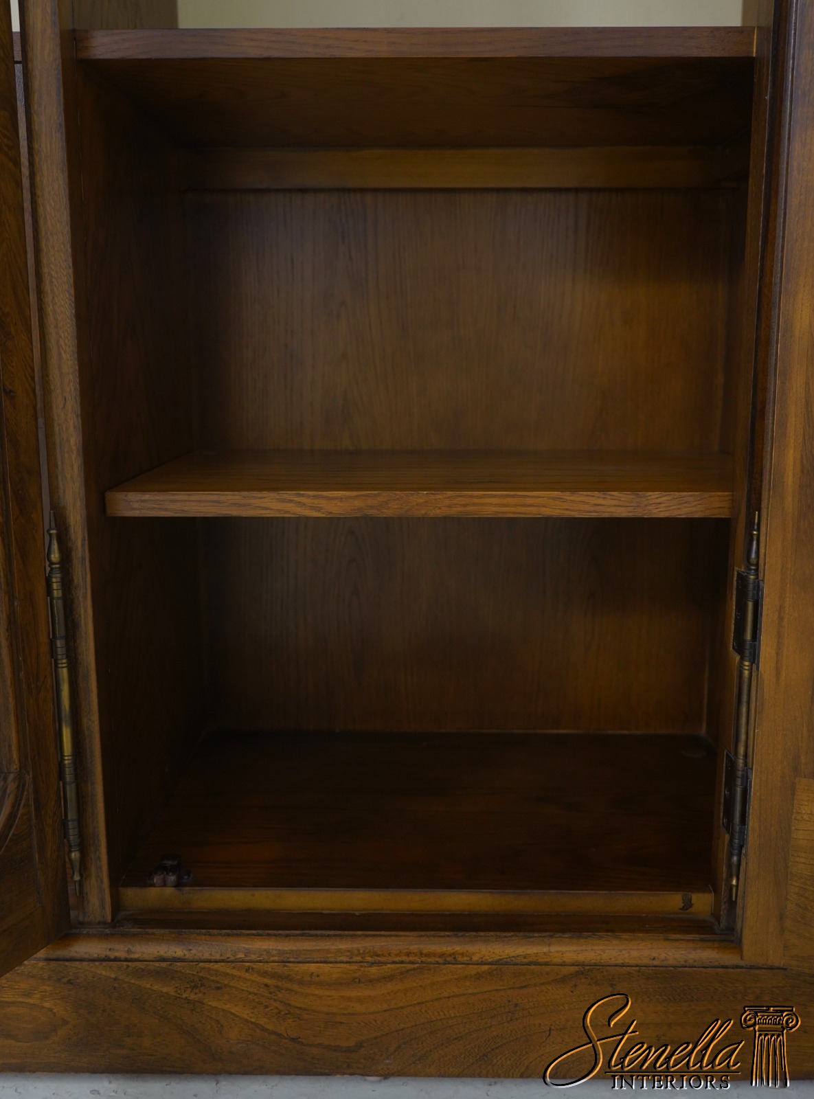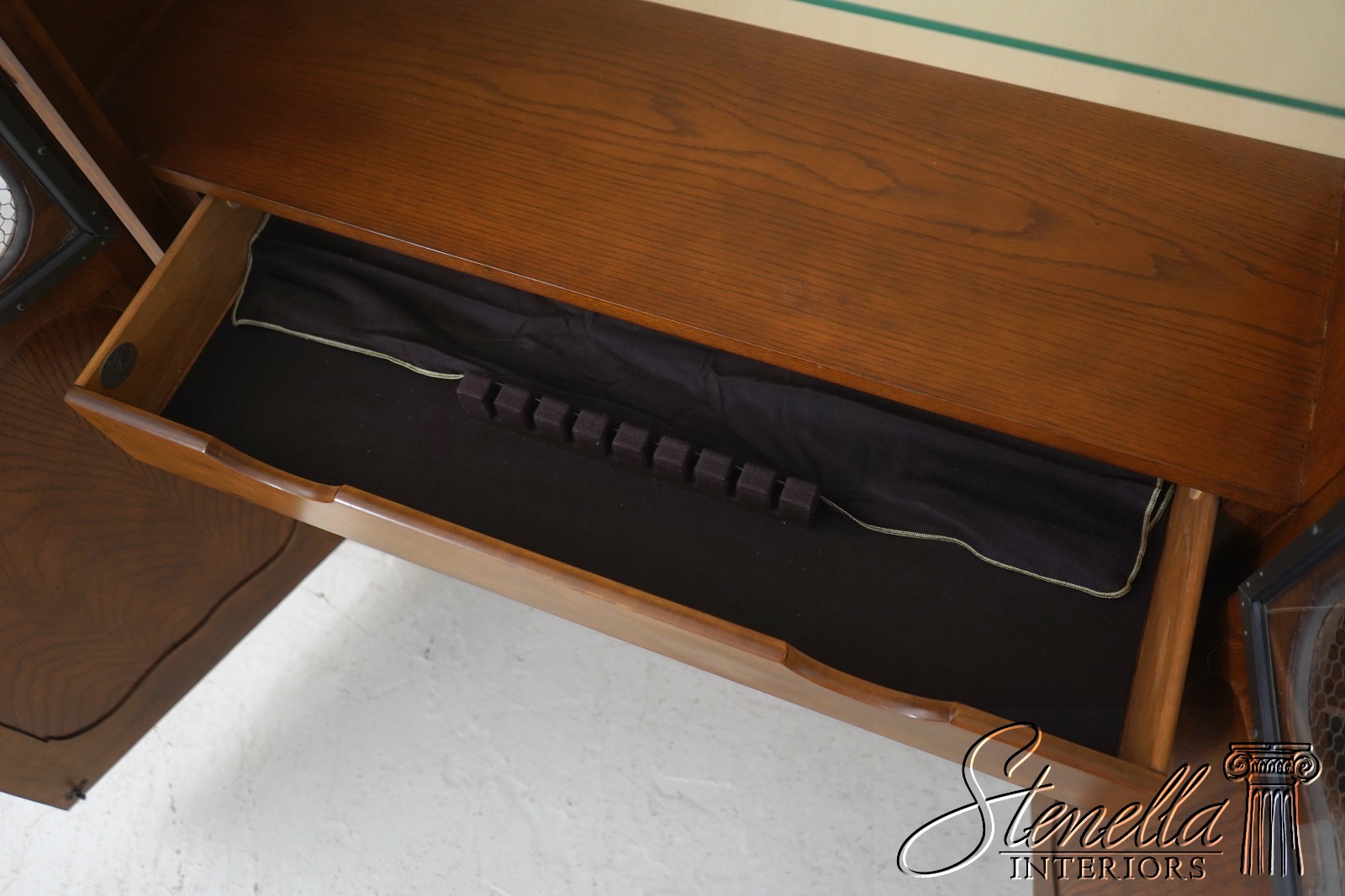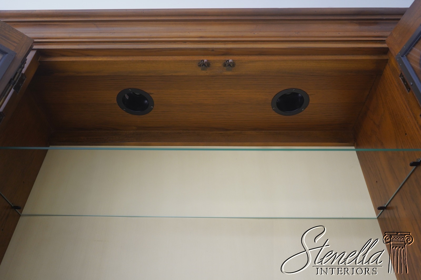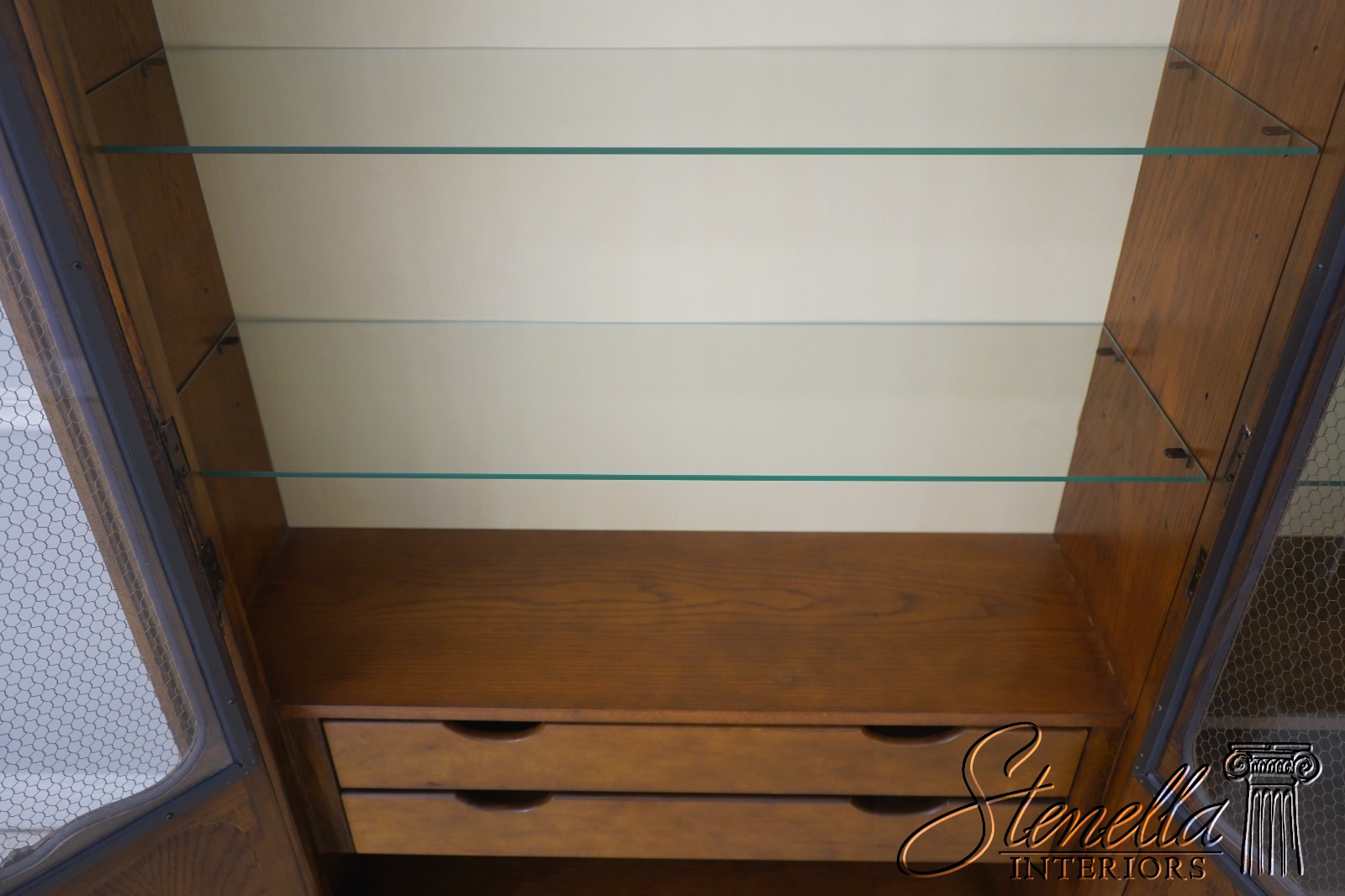 Details: Glass Adjustable Shelves Country French Style Dovetailed Drawer Construction Large Impressive Cabinet Lighted Interior Wire Mesh Doors Over Glass Felt Lined Silverware Drawer Paint Decorated Back Panel