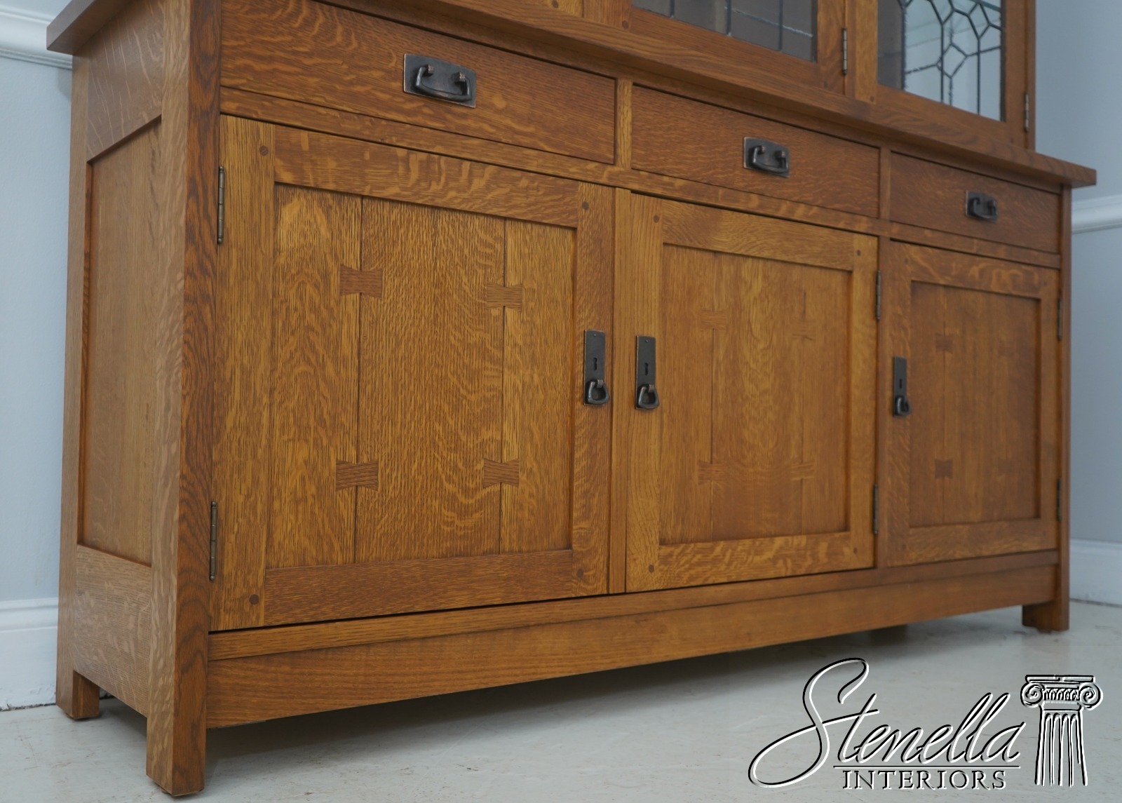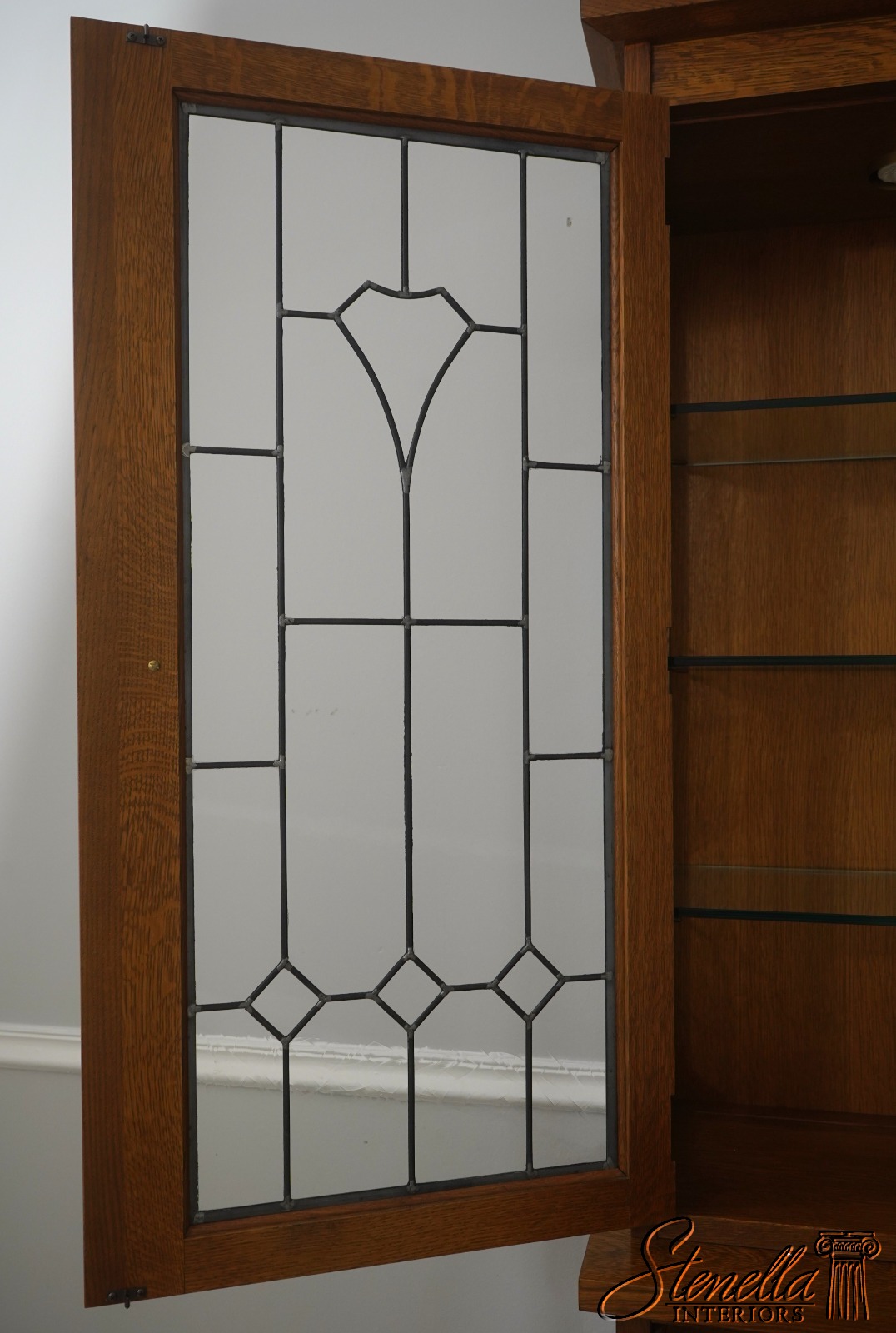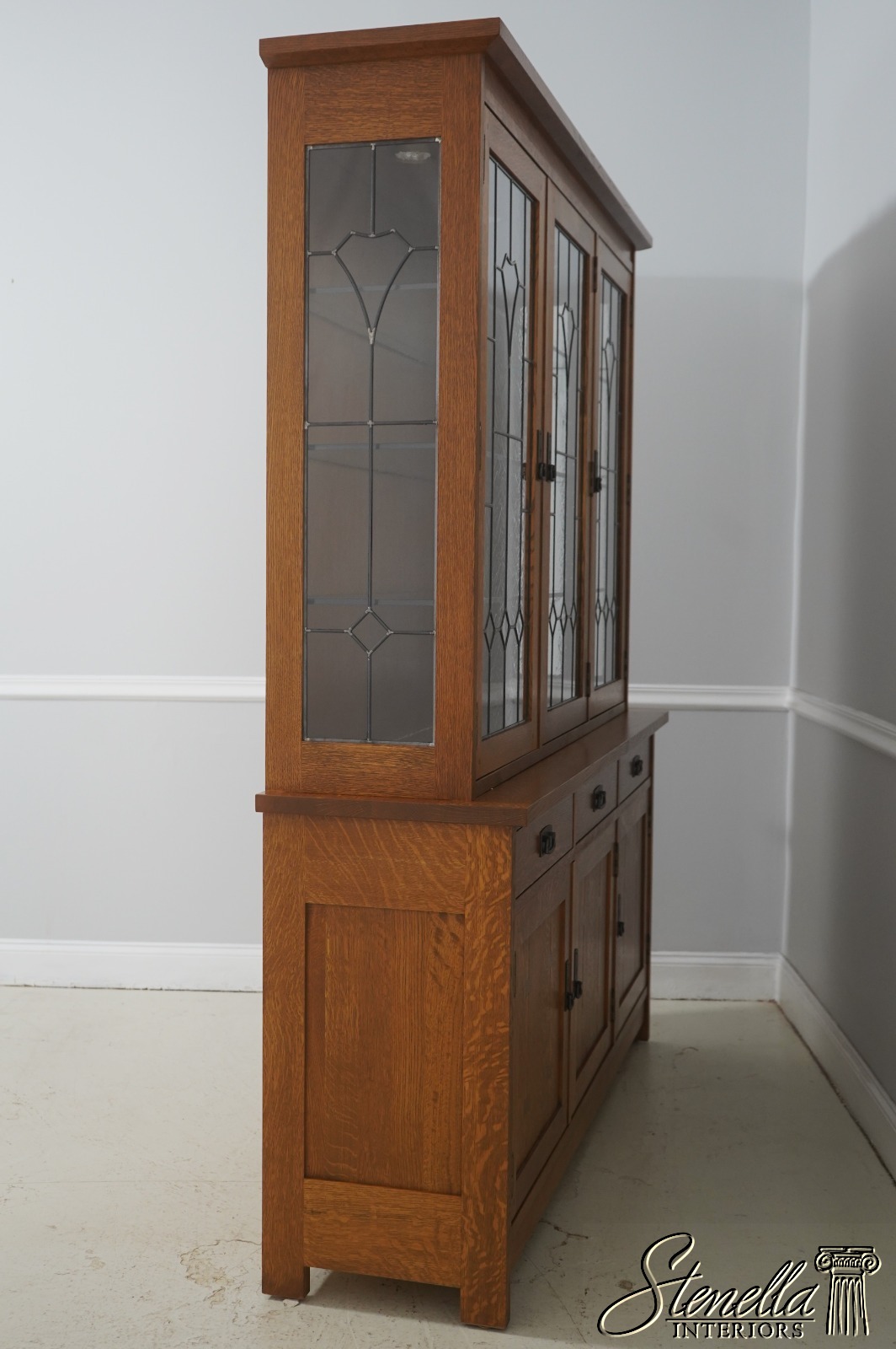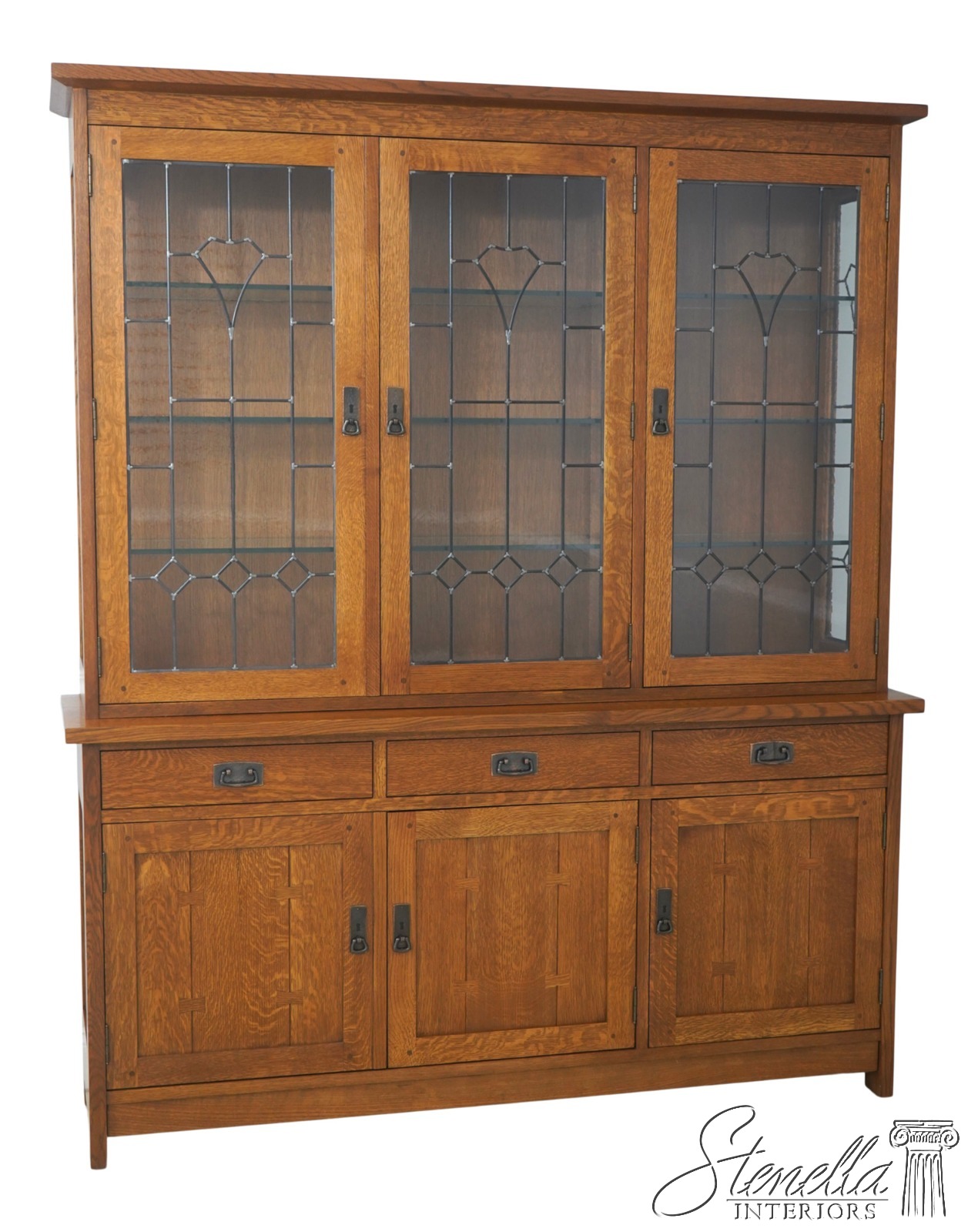 71538: STICKLEY Mission Oak Leaded Glass China Cabinet